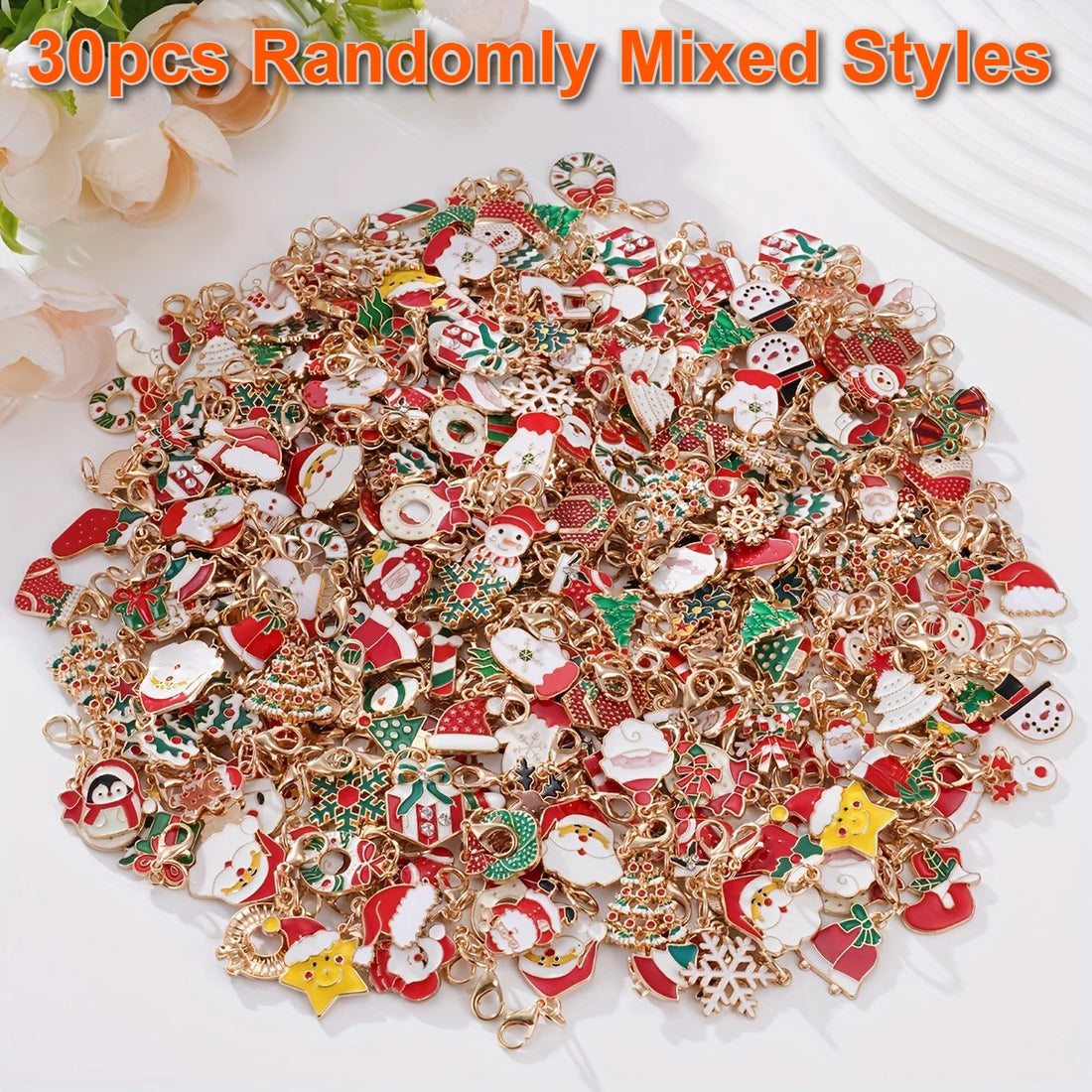 30pcs Random Mixed Christmas Keychains - Santa, Tree, Reindeer & Snowflake Bag Decorations, Festive Accessories & Party Favors