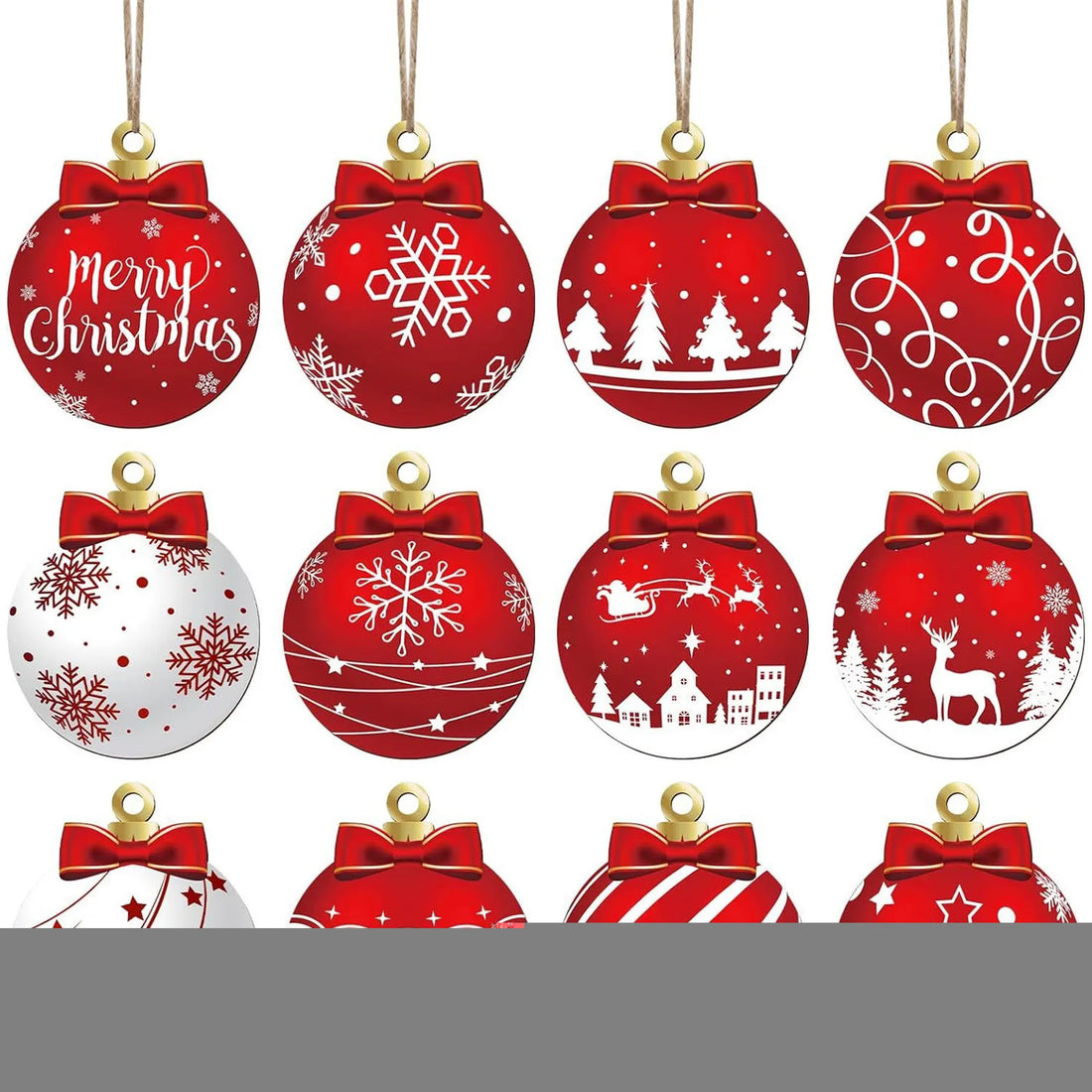 12PCS Wooden Christmas Tree Ornaments Set 2D Wood Christmas Tree Hanging Kits Home Party Holiday Wooden Ornaments For Crafts