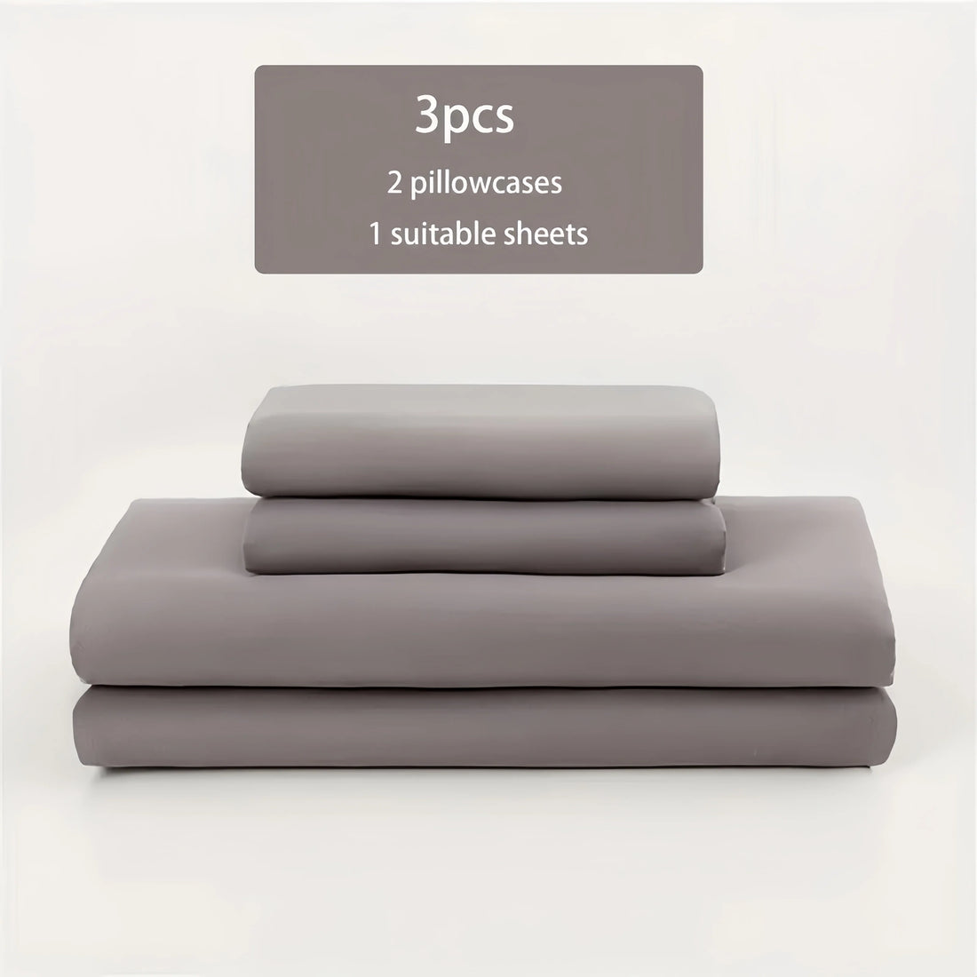 bed sheet 3pcs brushed thick solid color bed sheet pillowcase set. Four season universal skin friendly soft bed sheet pillowcase three pie