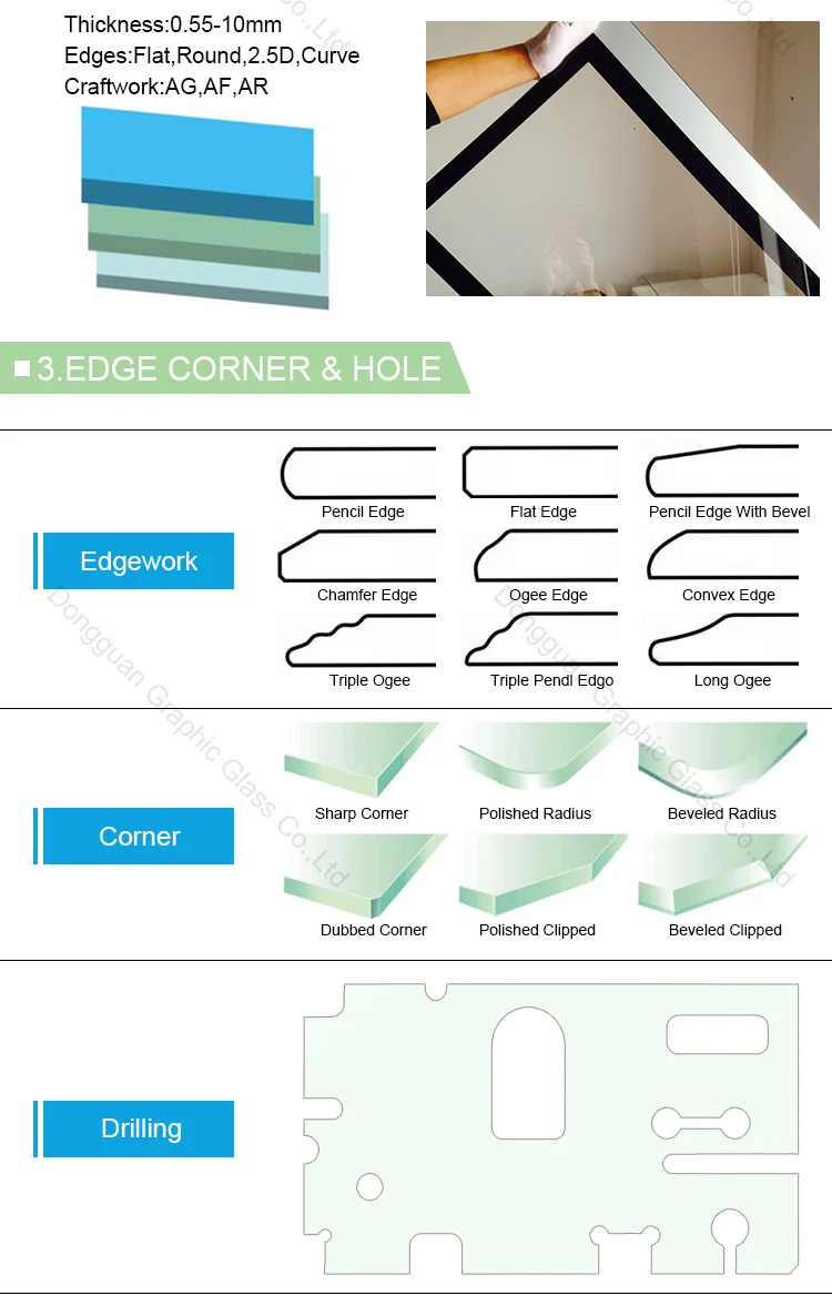 lcd screen glass is made of high quality electronic-grade glass transparent materials processing, according to customer R & D drawings for custom processing, generally requires steel processing .Lcd glasses can existence of a strong compressive stress, external shocks.