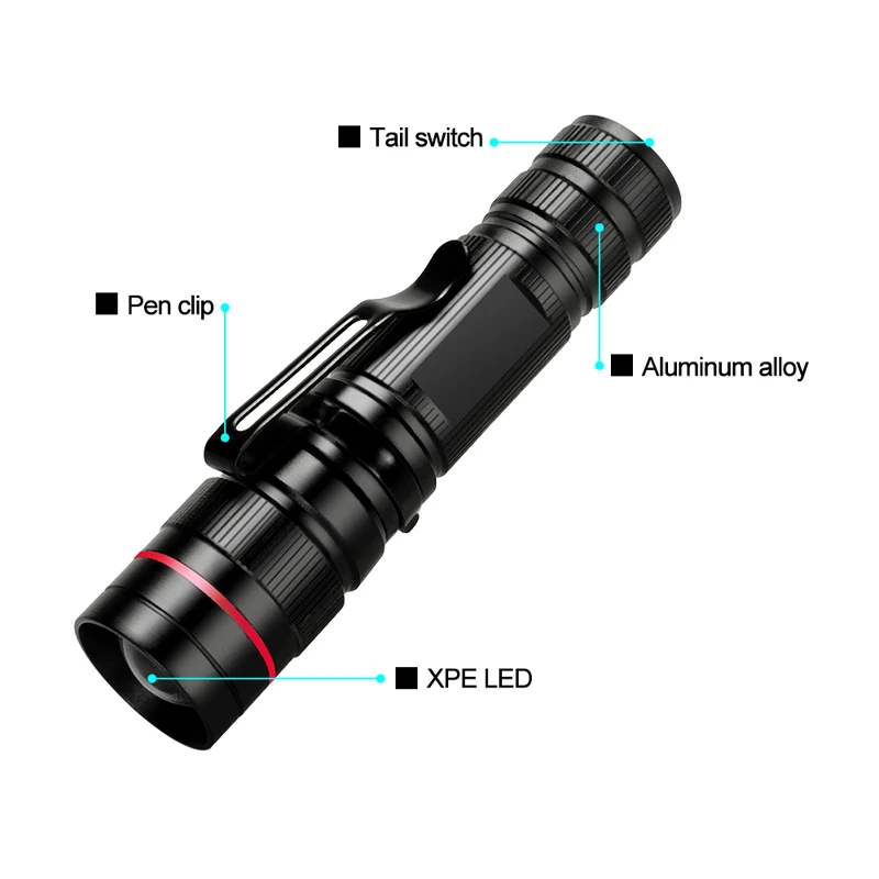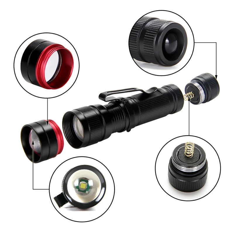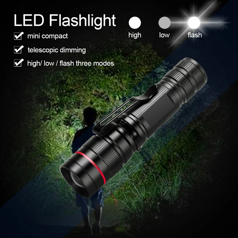 Mini-1101 XPE Q5 Flashlight Torch Mini Flashlight Zoomable Flashlights Portable EDC Torch Small Zoom Linterna 3-MODE (AA/14500)