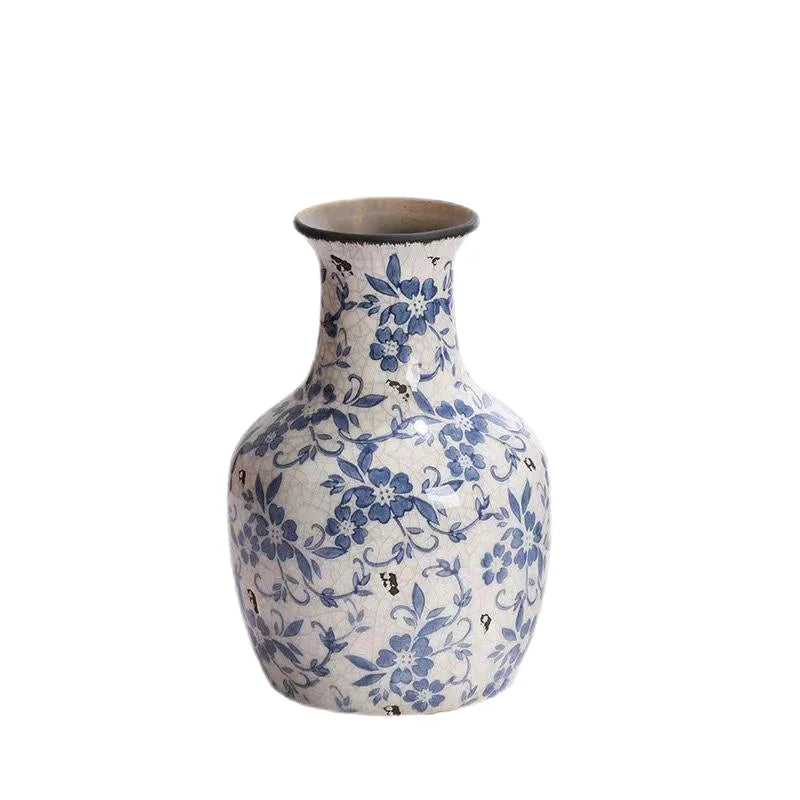 Blue and White Porcelain Vase for Flower Arrangement - Chinese Classical Ceramics with American Retro Style