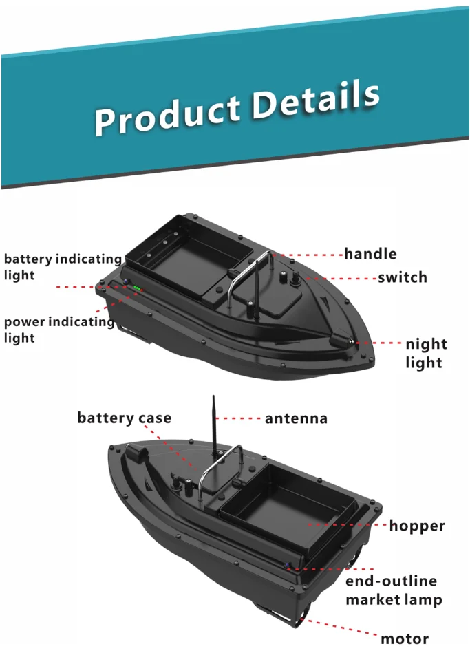 Carp fishing and entertainment rc bait boat with two hull intelligent remote control nesting ship black orange bait boat