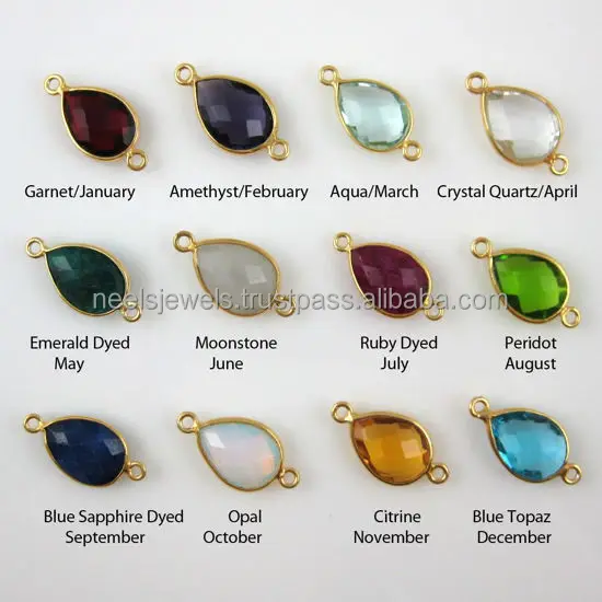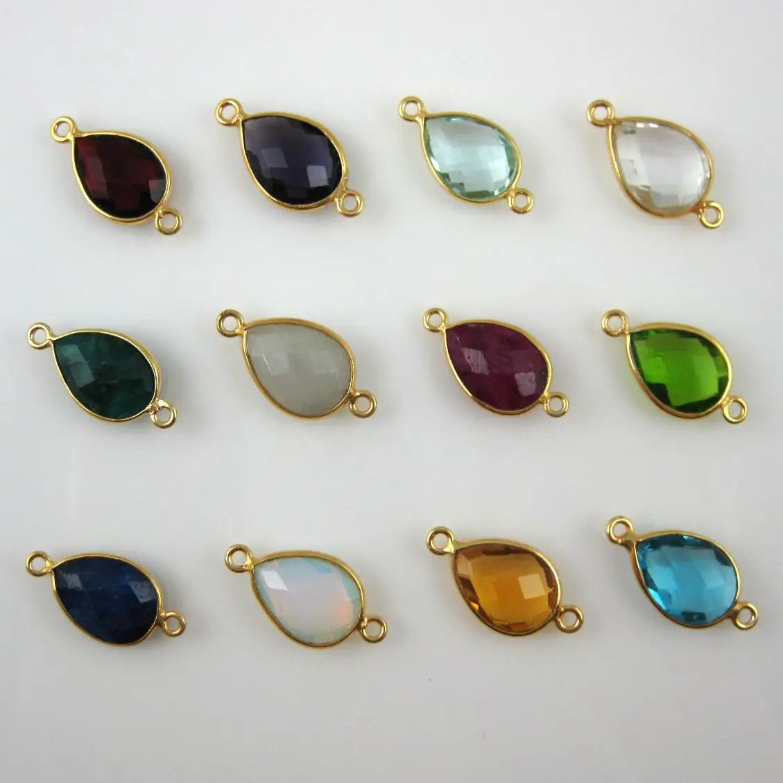 Gold Plated 12 Month Birthstone Charm Pear Shape 10x14MM Jewelry Finds Handmade Bezel Gemstone Charm Jewelry Accessories