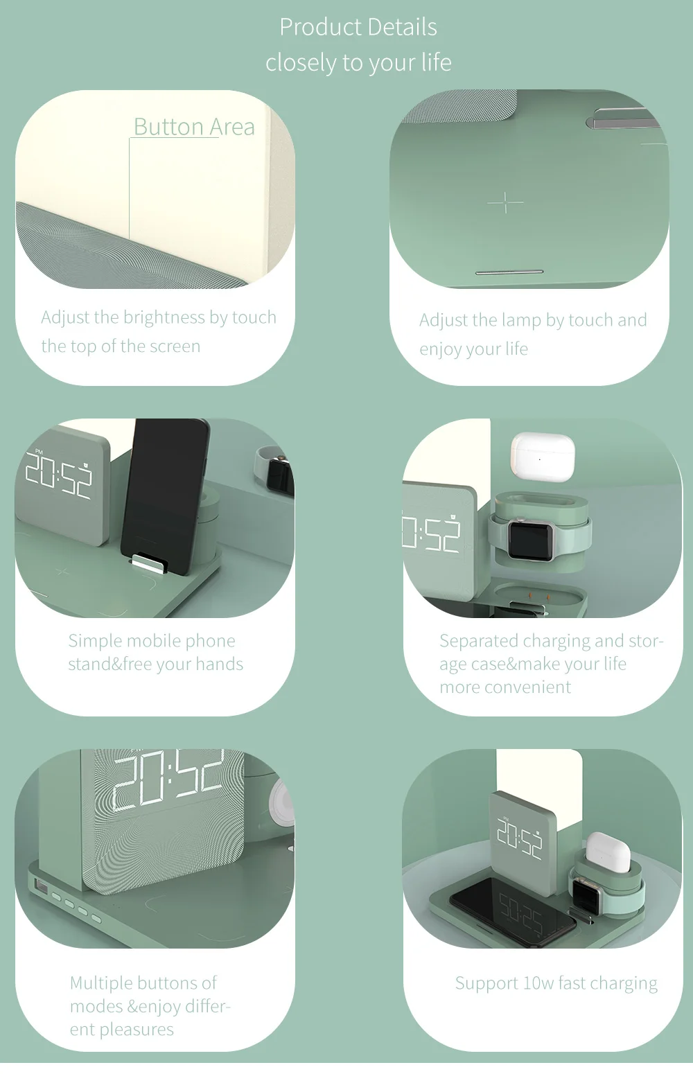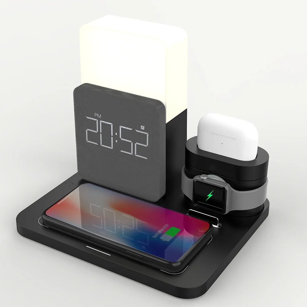 Best Selling Products Wholesale Custom LED Digital Alarm Clock 3 in 1 Fast Wireless Charger Mobile Phone Charger Light