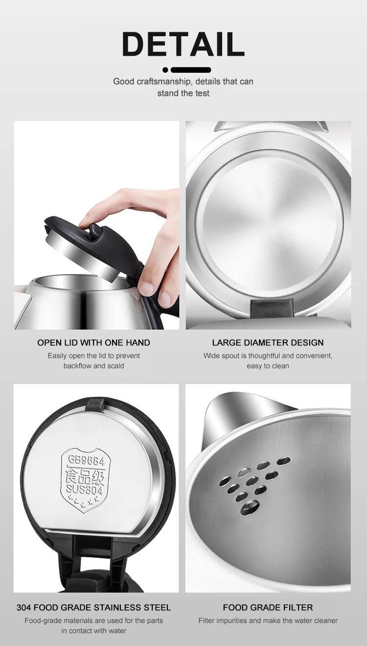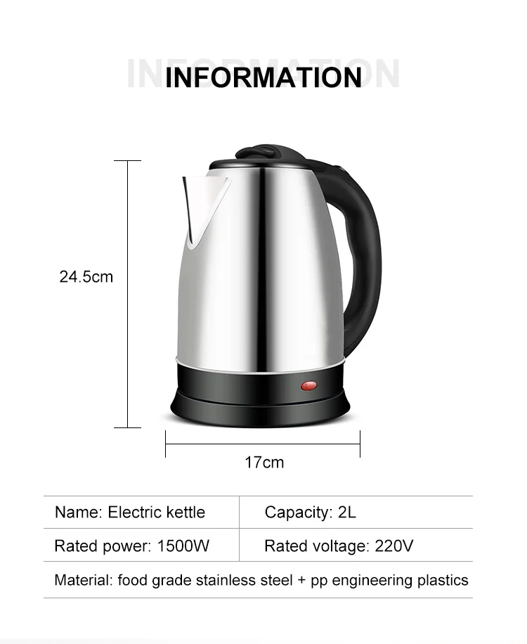 Home Hotel Use Fast Boiling 2.0L Promotional Water Heating Pot Stainless Steel Electric Kettle