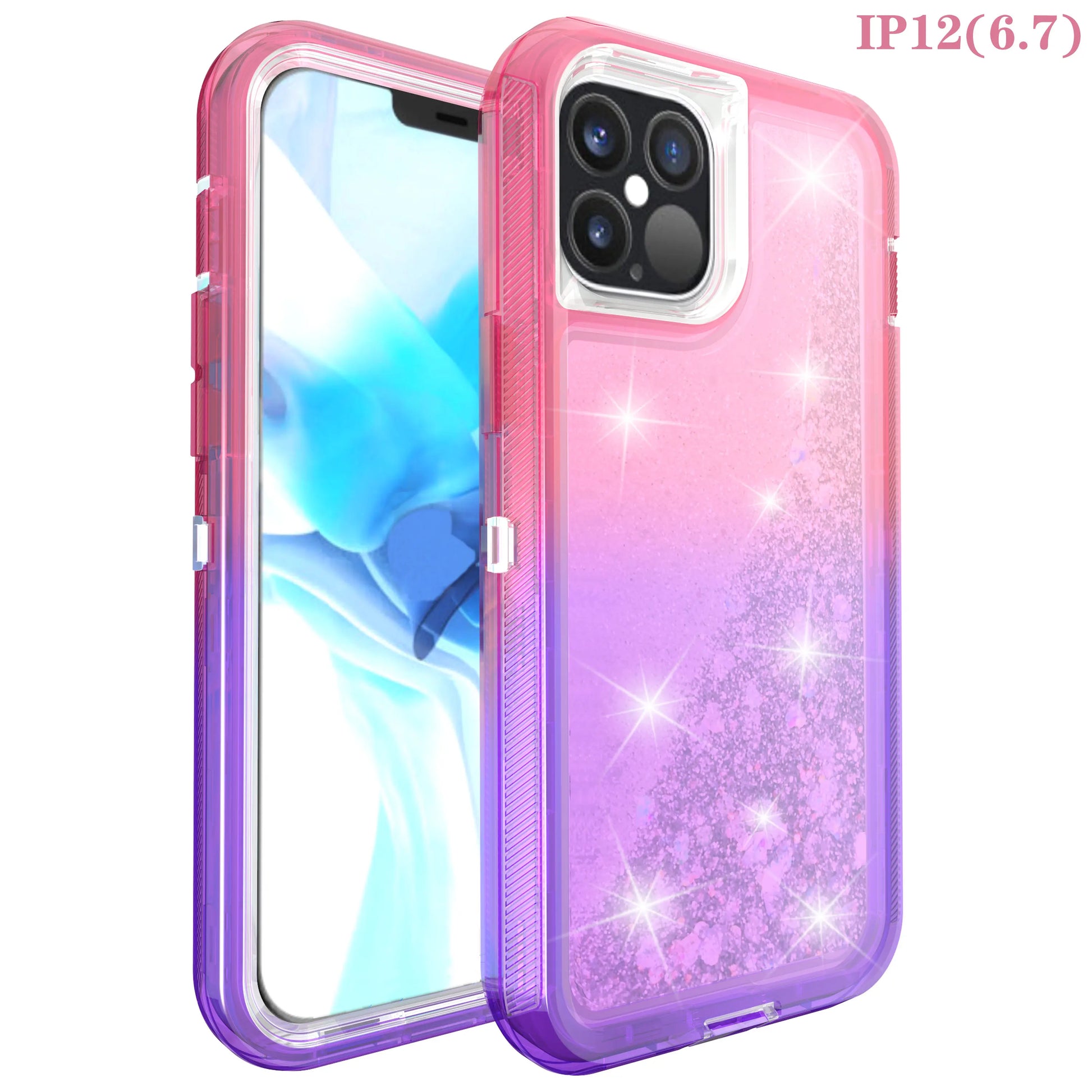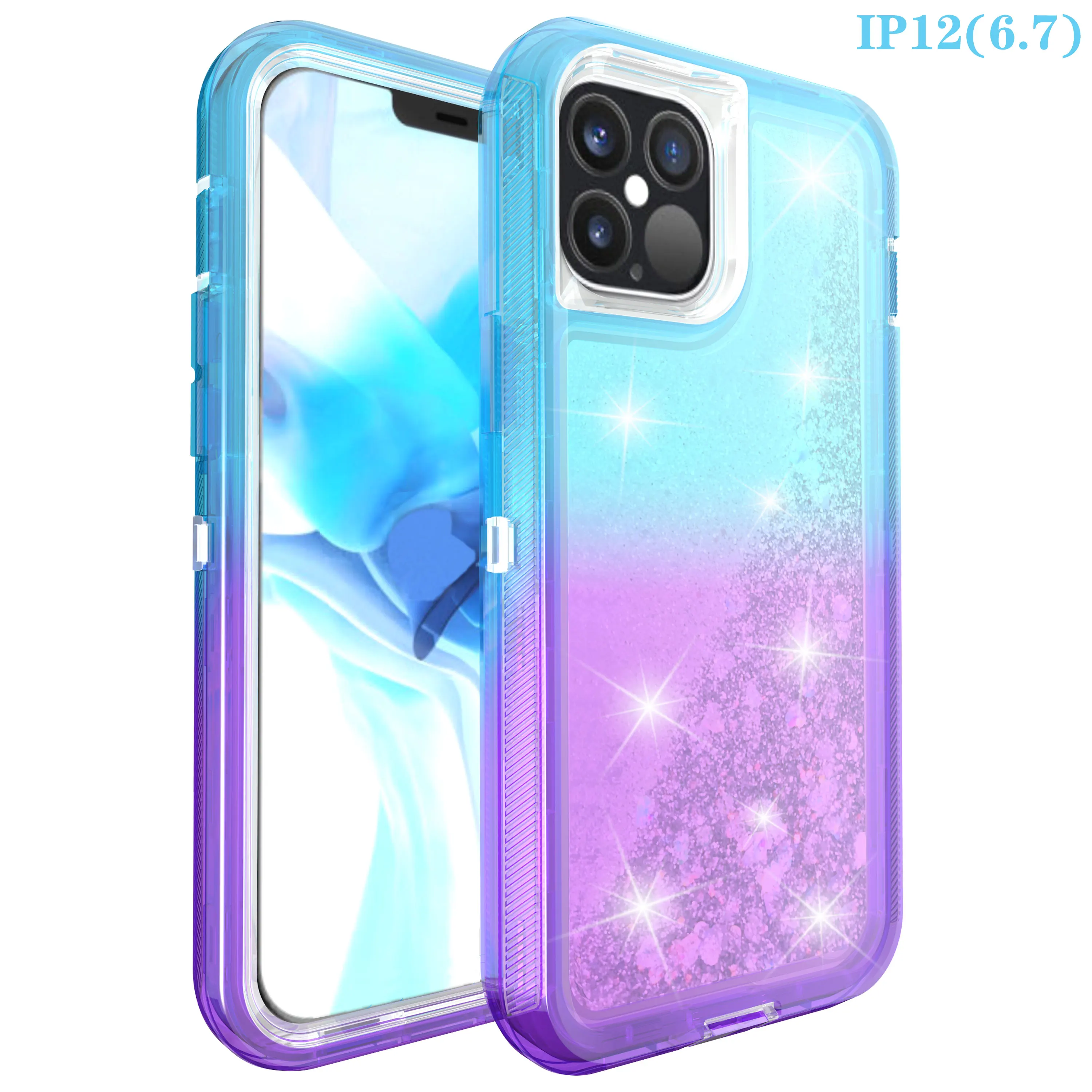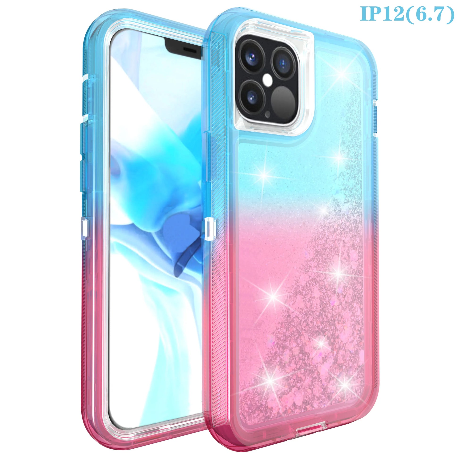 gradient color glitter full body 3 layer case for iphone 14 pro max Front pc frame phone case for iphone 678 plus 13 12 xs xr 11