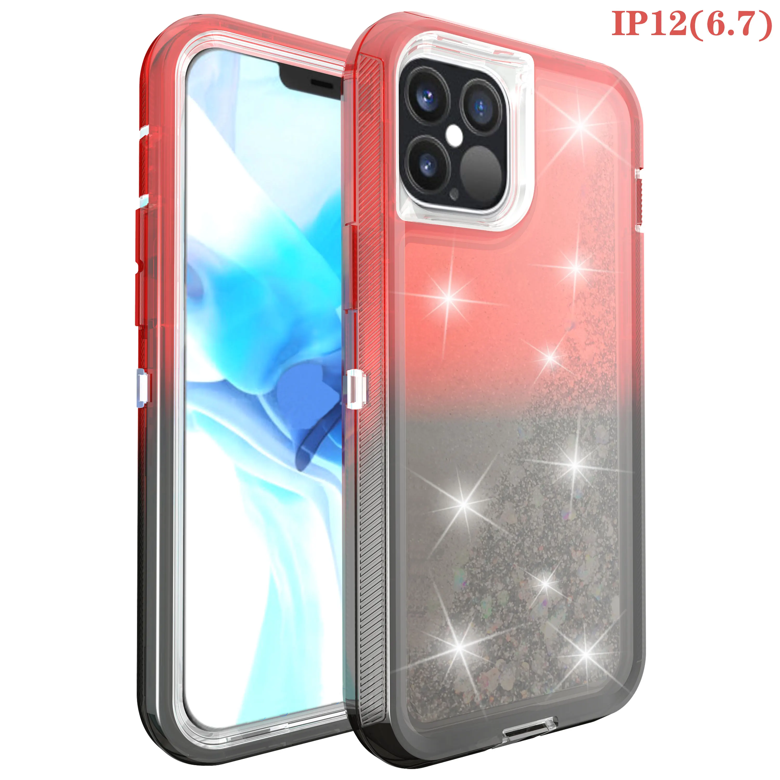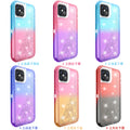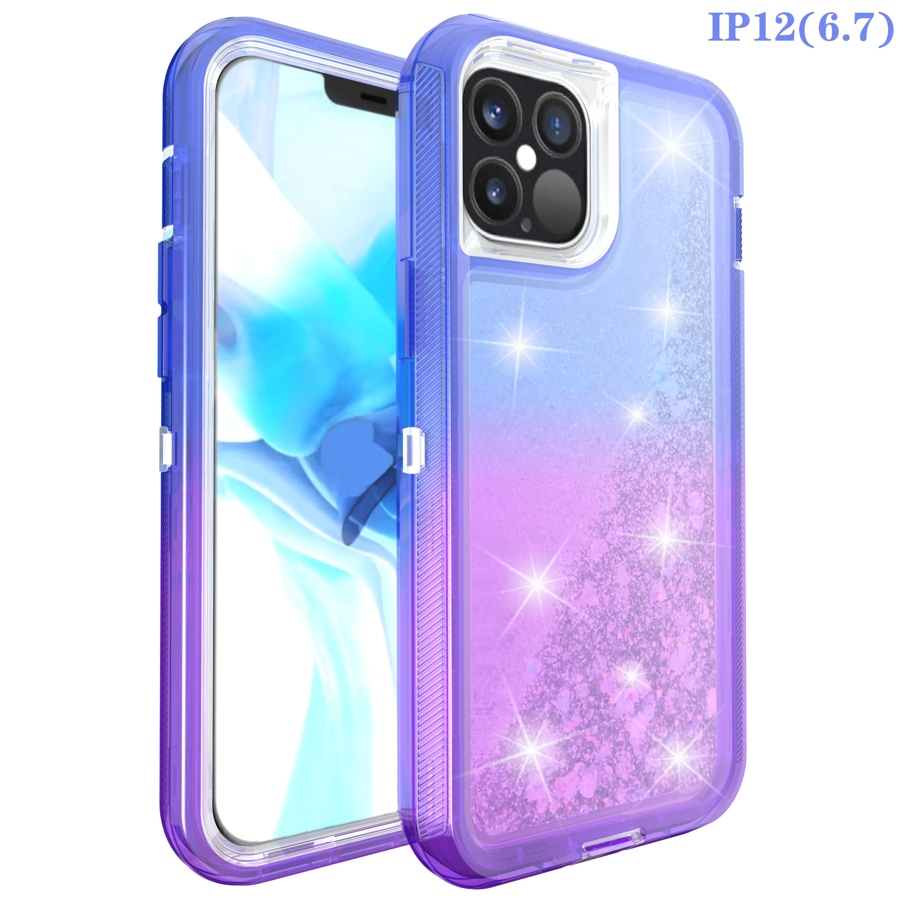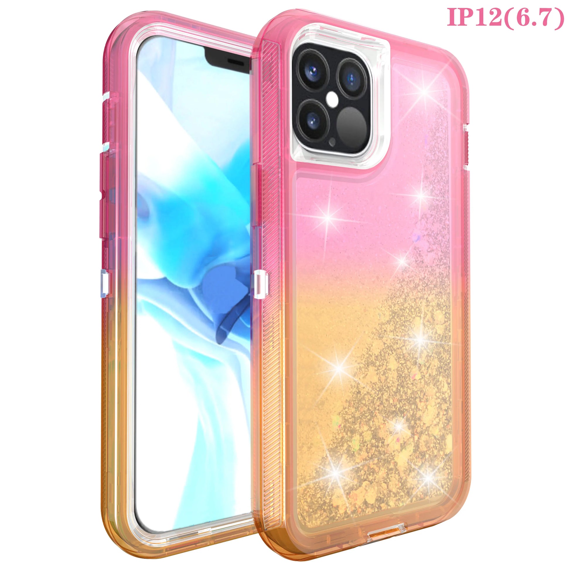 gradient color glitter full body 3 layer case for iphone 14 pro max Front pc frame phone case for iphone 678 plus 13 12 xs xr 11