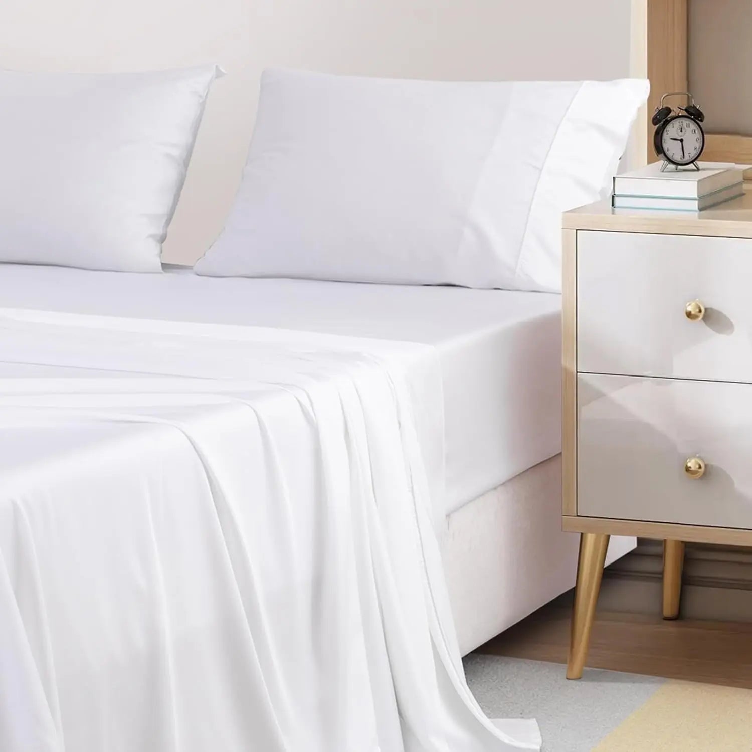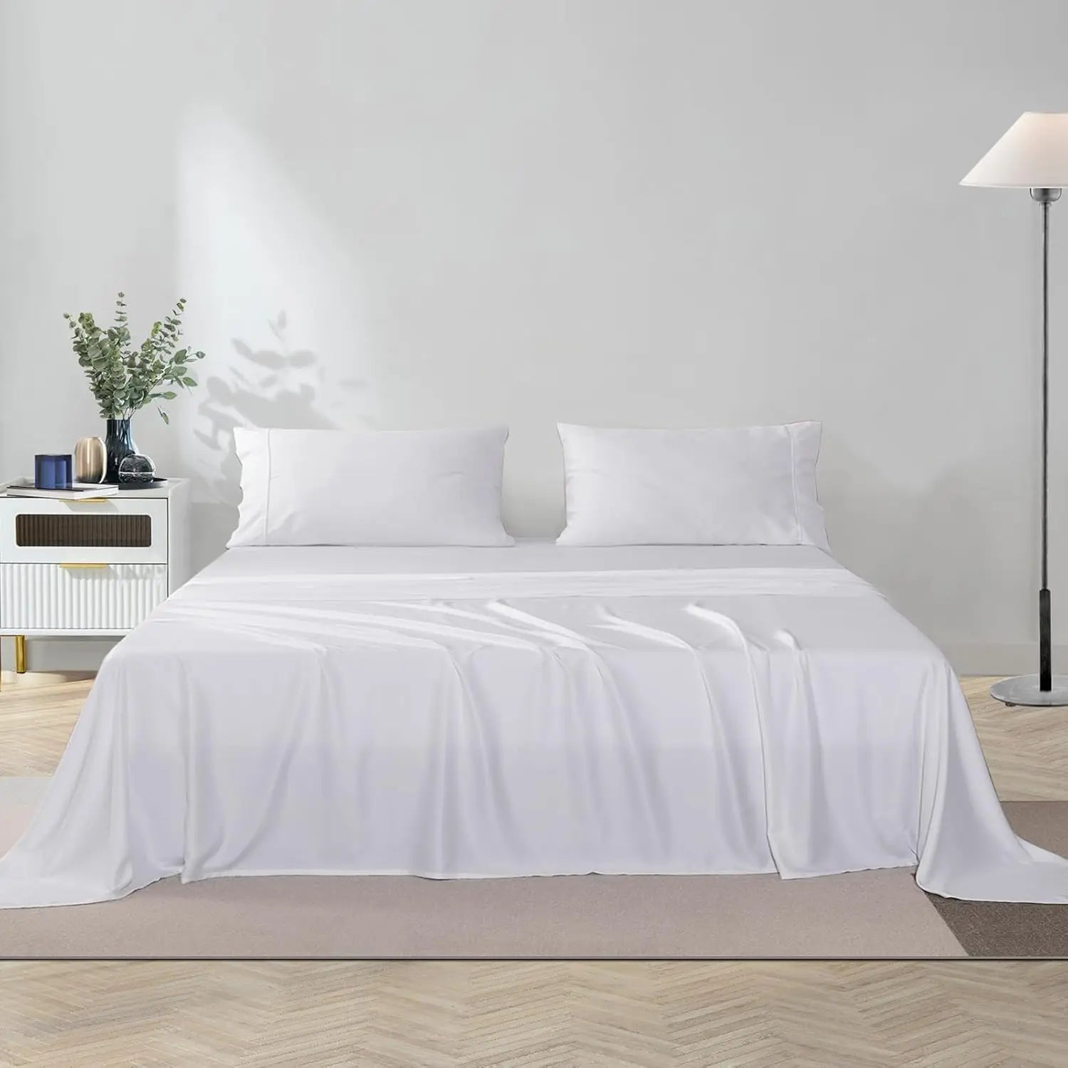 OEKO TEX 300TC 100% bamboo viscose bed sheet SET king size white &silver color 4pcs