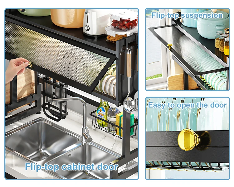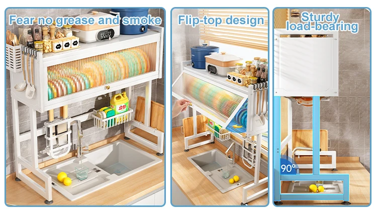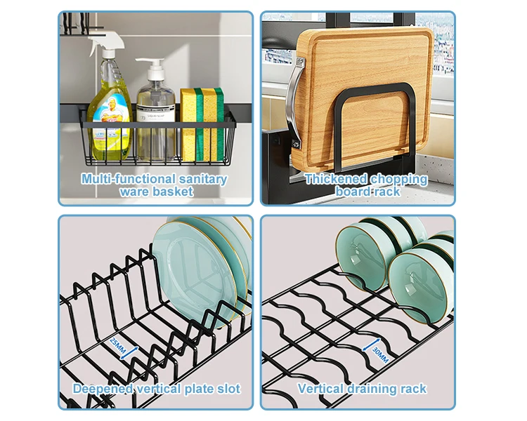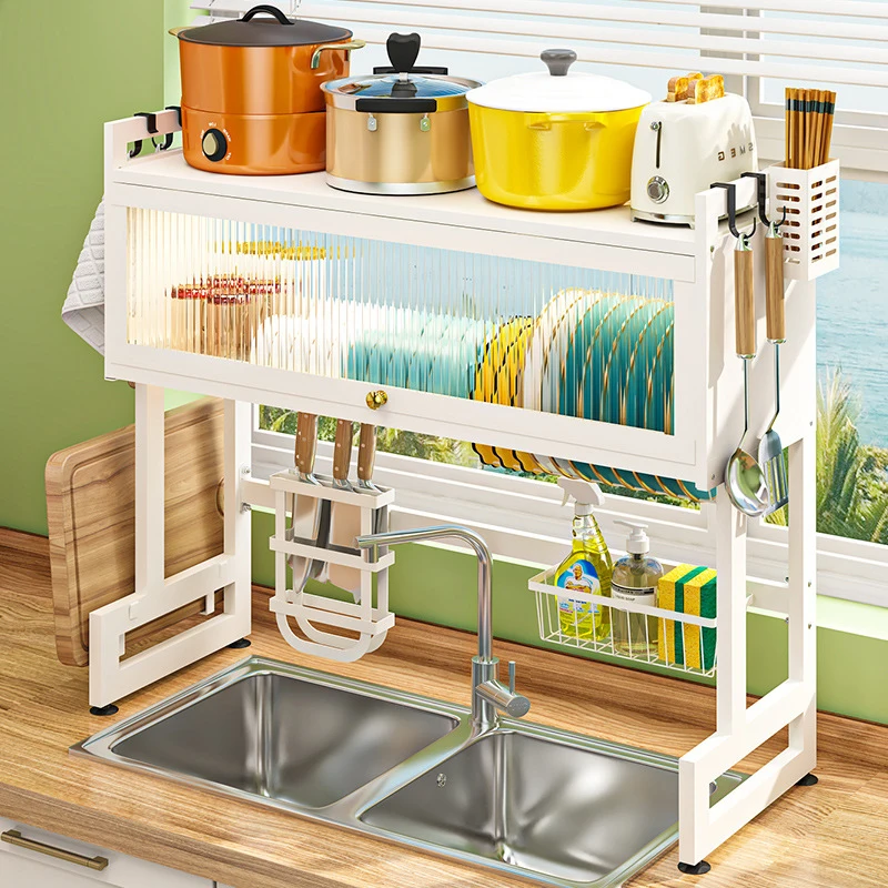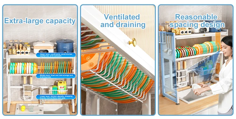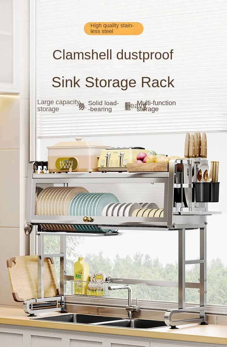 Over the Sink Dish Drying Rack for Kitchen With Cover Rack Organizer Drain Board Dish Rack