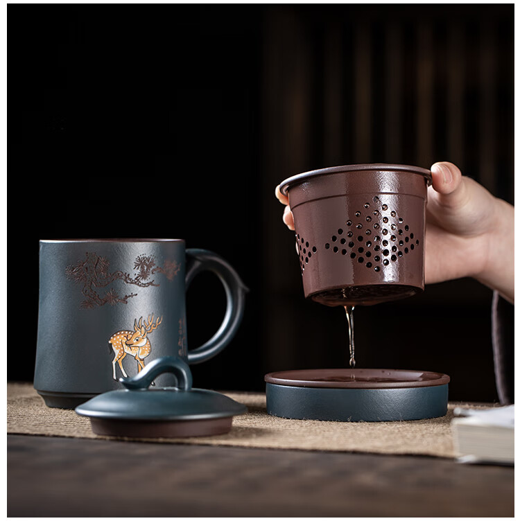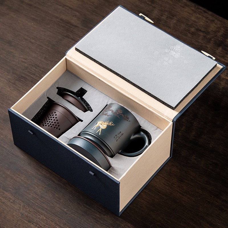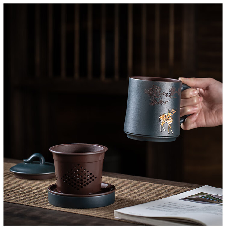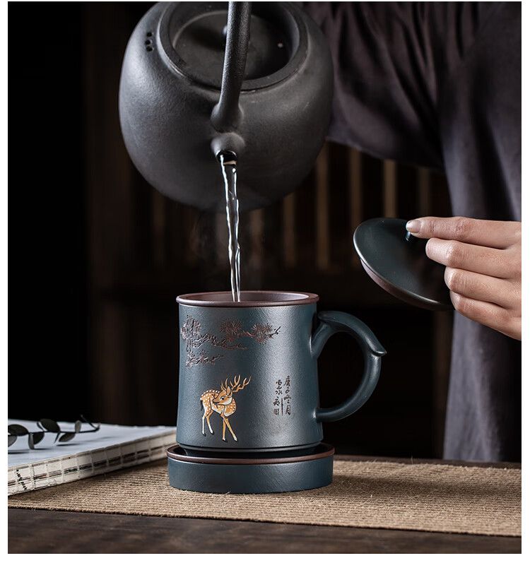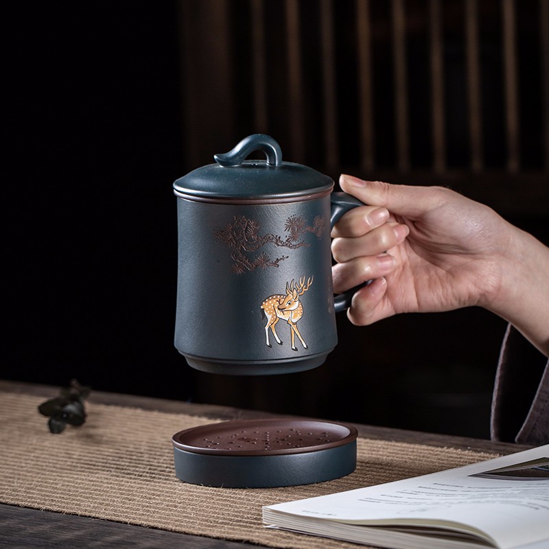 Gold inlaid jade purple clay cup, handmade tea cup, Kung Fu tea set, tea making, office cup, free gift, high-end Songlu cup