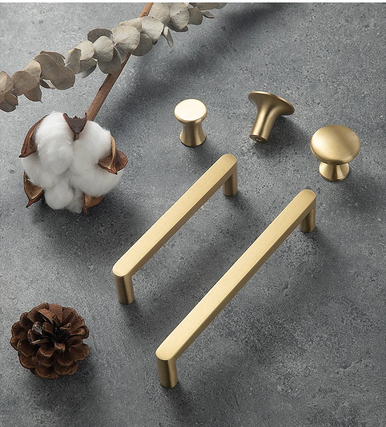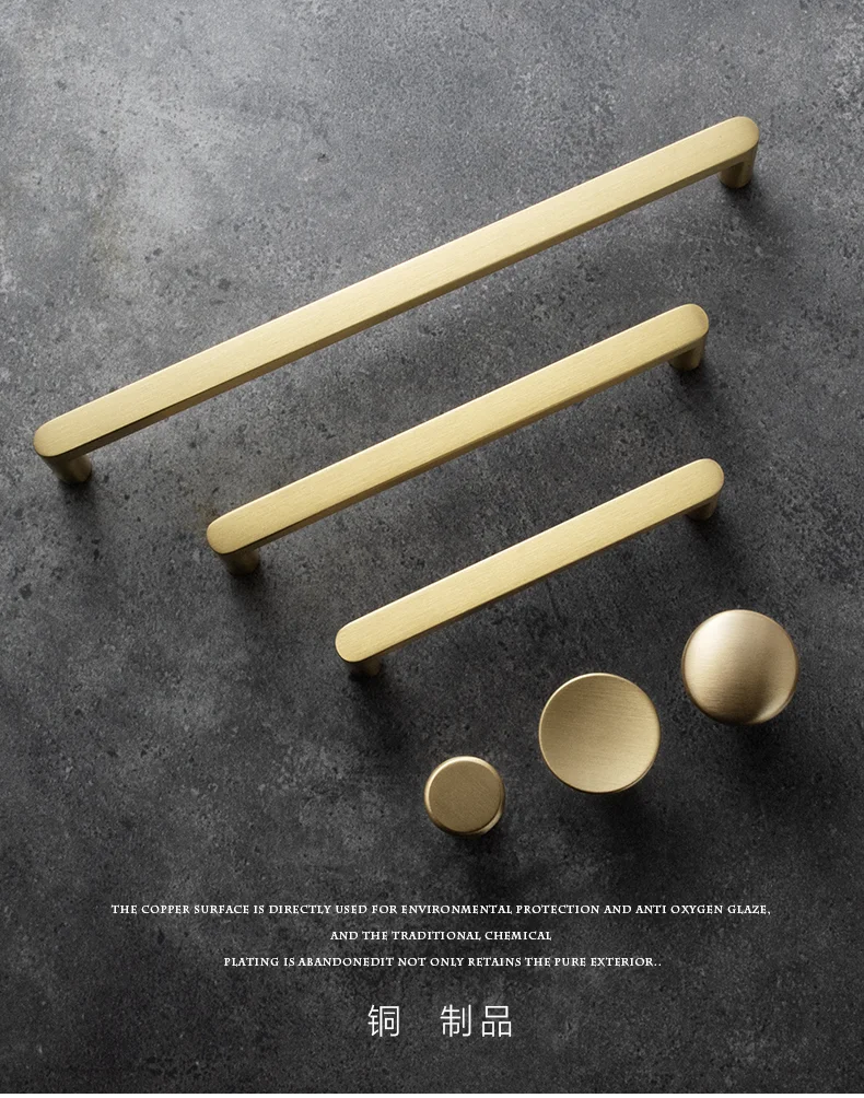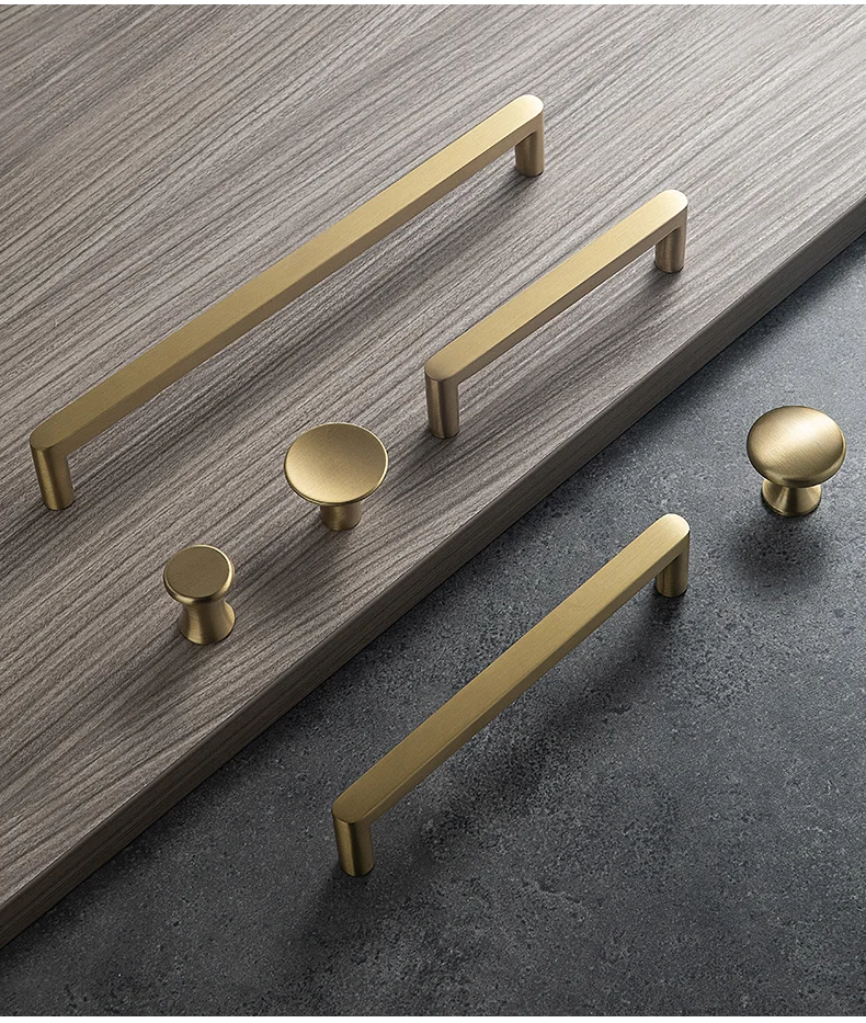 MECANS Modern Gold Knob Pure Copper Kitchen Cabinet Handles Cupboard Door Pulls Drawer Knobs Brass Furniture Handle Hardware
