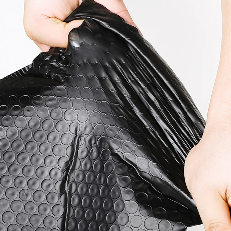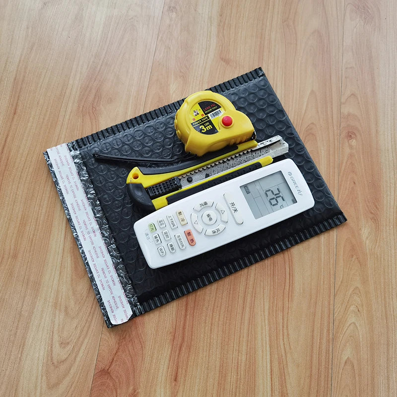 Product use: Bubble film envelope bag, black thick self-adhesive co extruded film, bubble bag, bubble envelope, express bag, waterproof and shockproof bag for clothing, shoes and hats packaging, gift packaging bag. Thickened materials can ensure the safety of items during transportation.