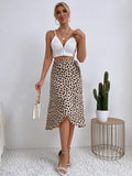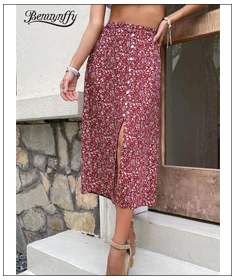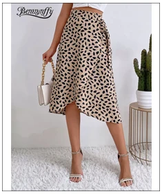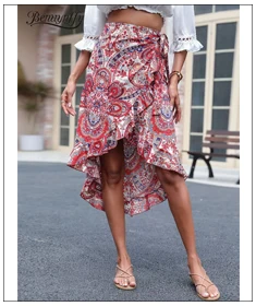 Benuynffy Boho Women Casual Print Tie Side Wrap Skirt Elegant High Waist Female Summer Asymmetrical Knee Length A-Line Skirts