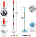 Spin Mop Bucket Sets 360° Spinning Floor Cleaning System with 3 Microfiber Replacement Heads, Extended Handle Household Item
