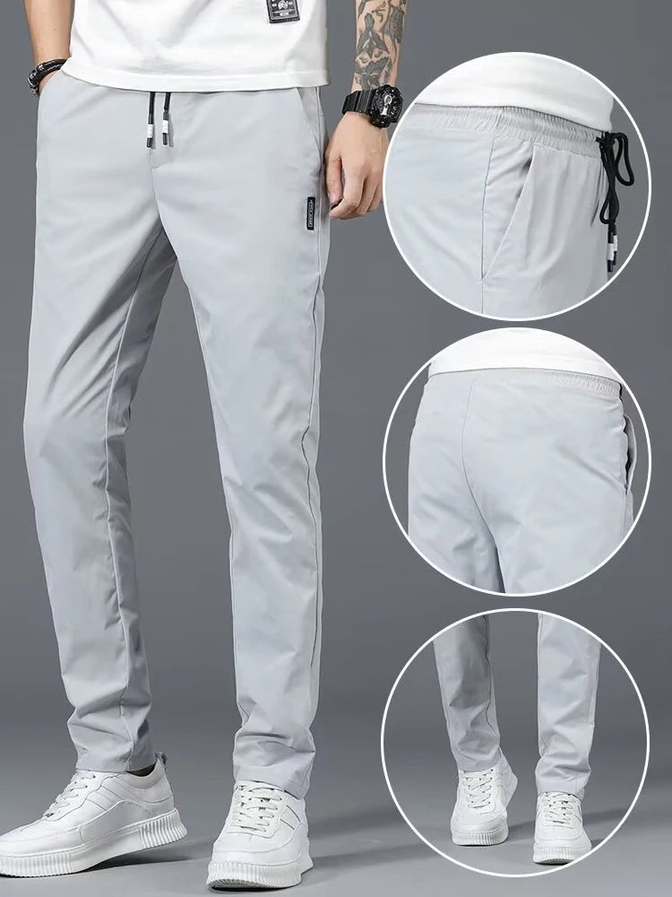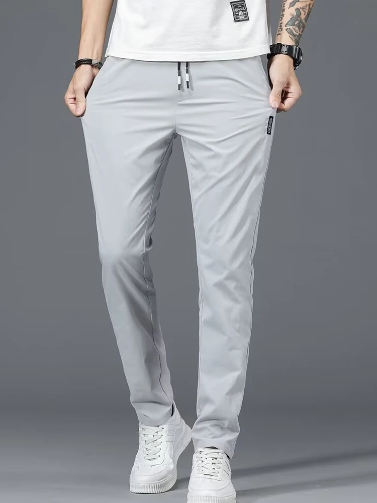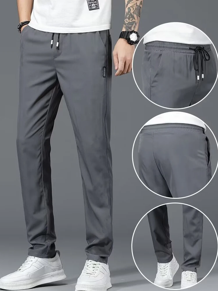 High end ice silk pants for men in summer, thin style, quick drying, large size, long pants for men in sports, casual
