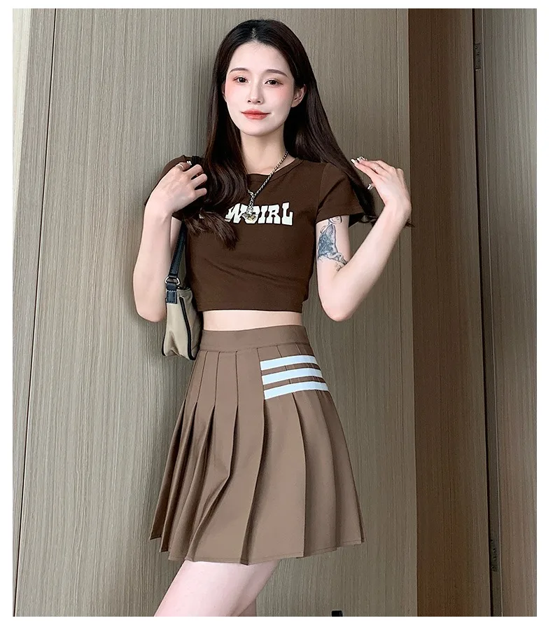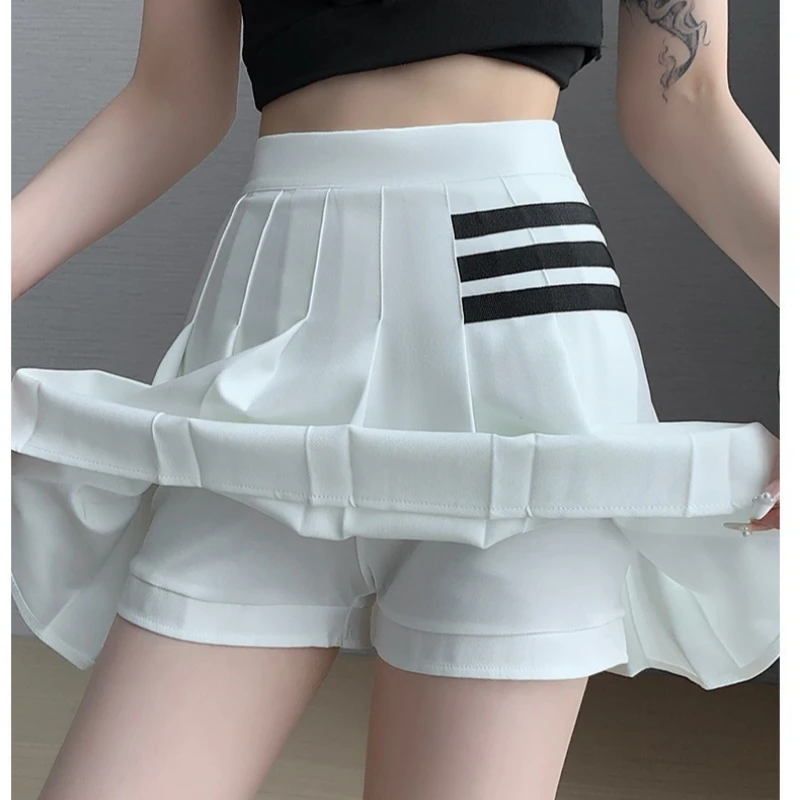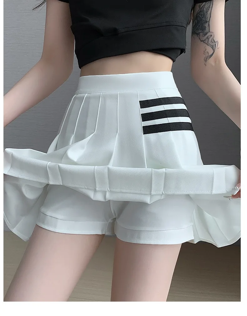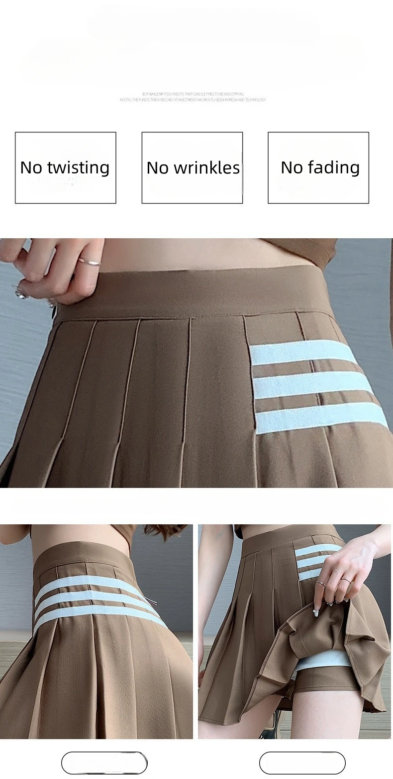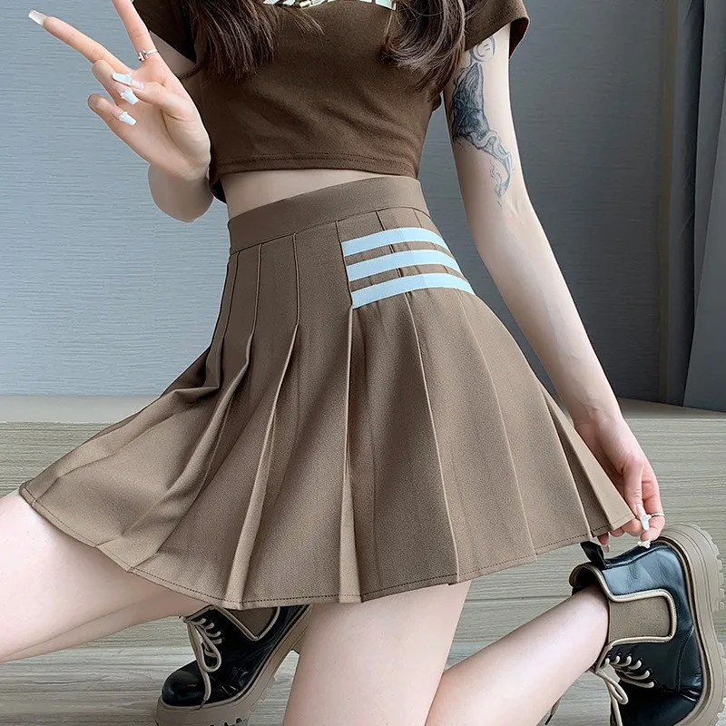 Women's Skirt With Shorts Summer Black Pleated Skirt For Girls Brown A Line High Waist Y2k Mini saias Spring Korea Style Clothes