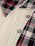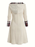 Knitted hooded dress plaid print stitching fake buckle high waist long sleeve A-line dress female
