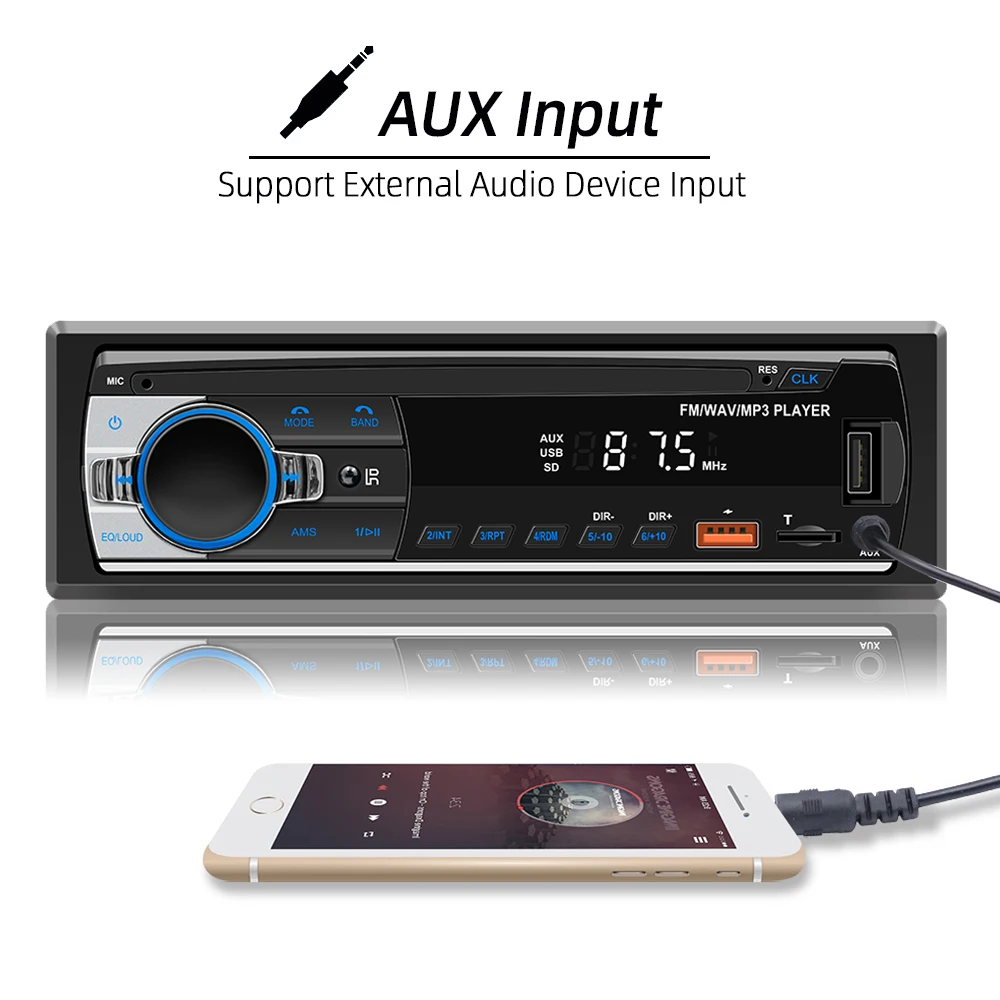 - Front AUX audio input, MP3 / MP4 / MP5 or other playback are available through the machine.