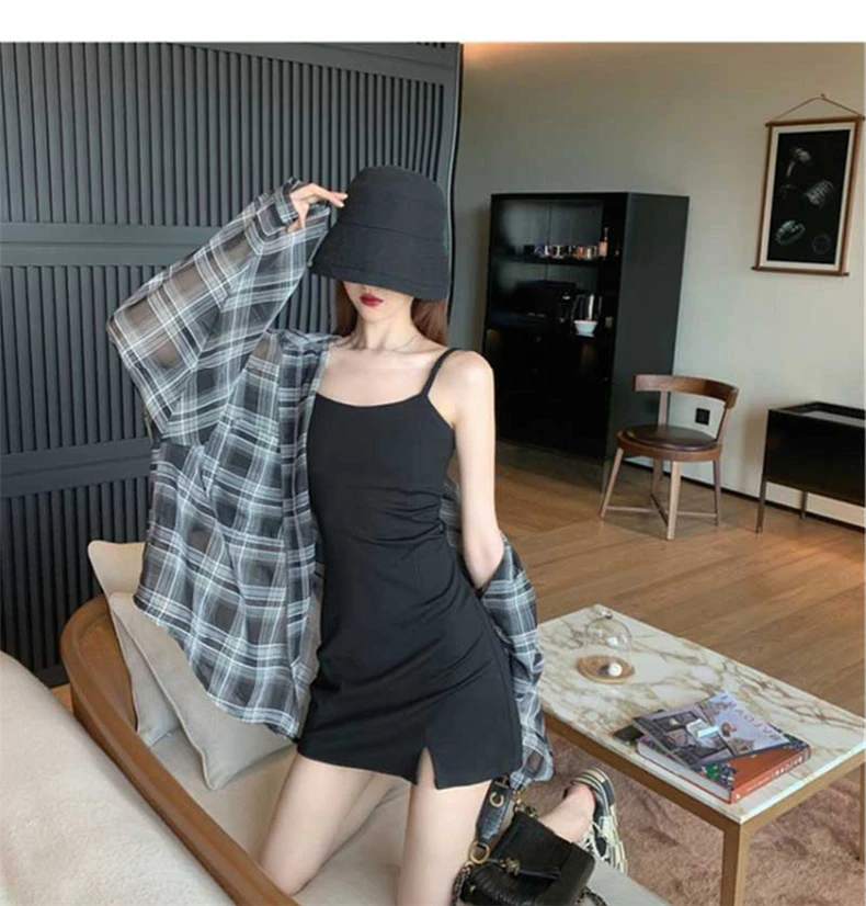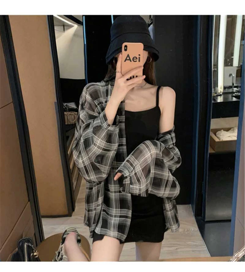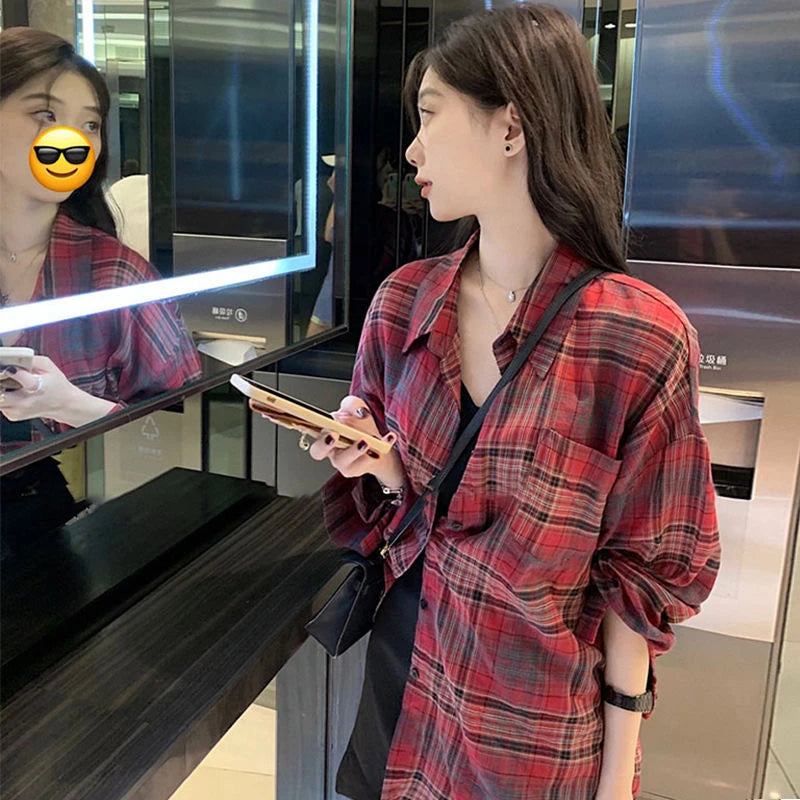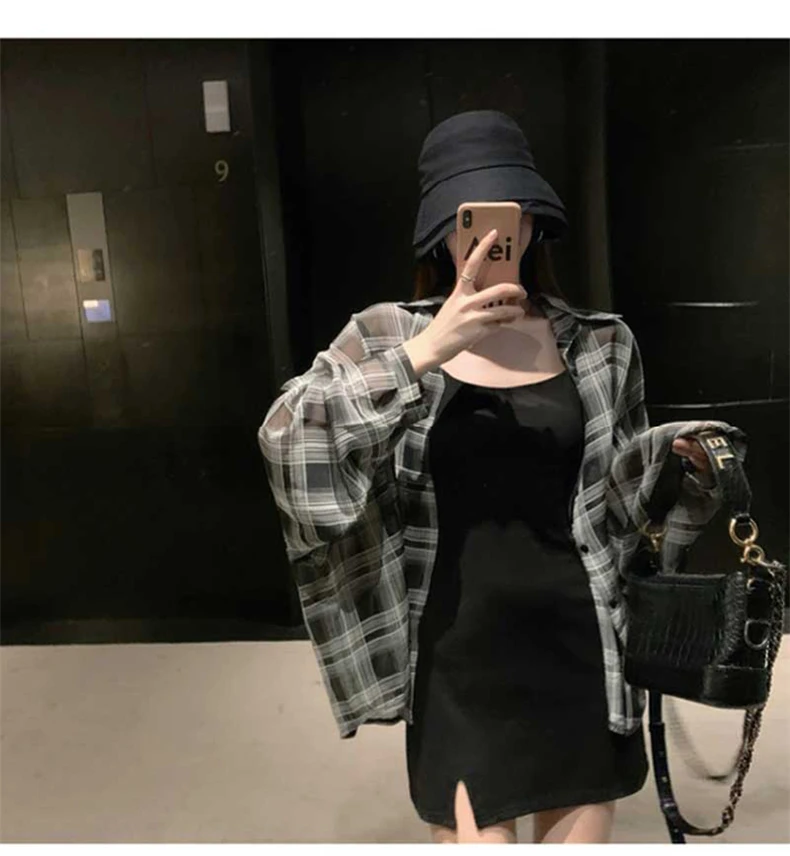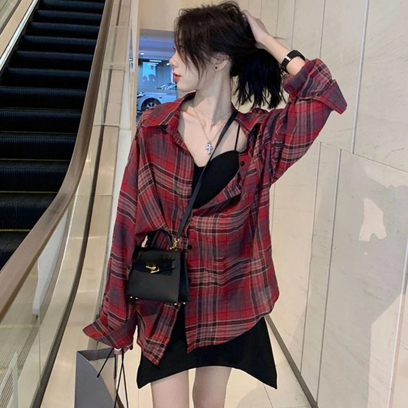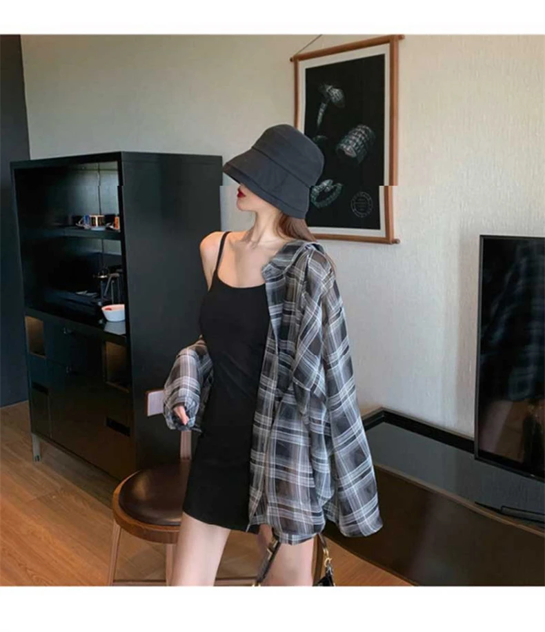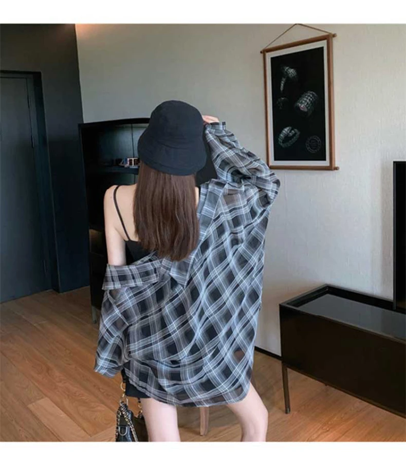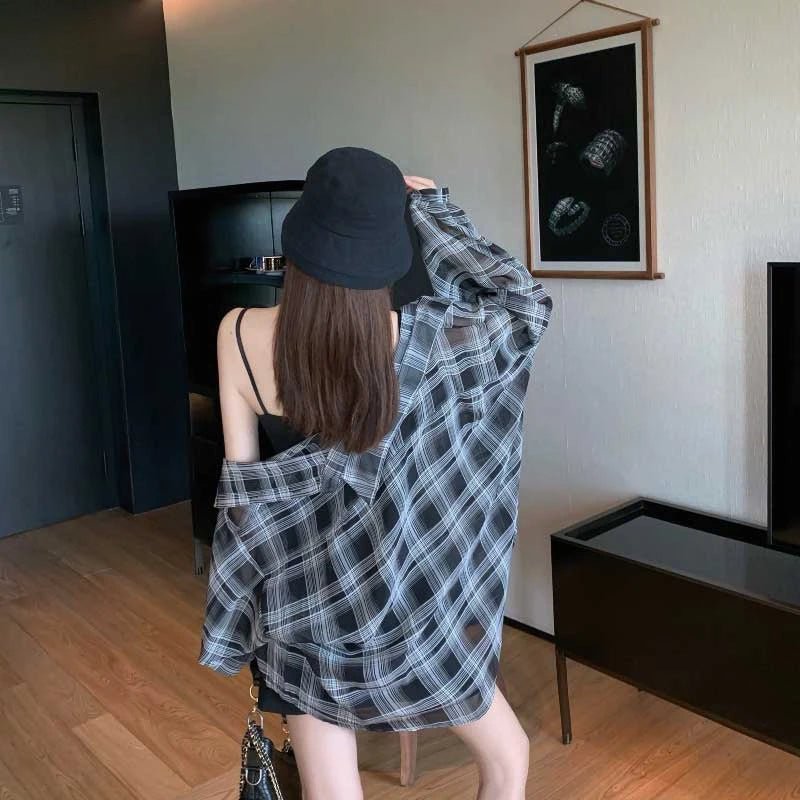 2024 Summer Autumn New Women's Shirt Thin Casual Street Style Shirt Outer Top Checkered Shirt Cardigan Coat for Women