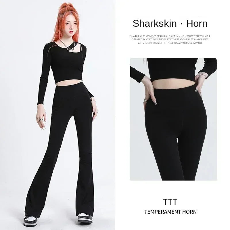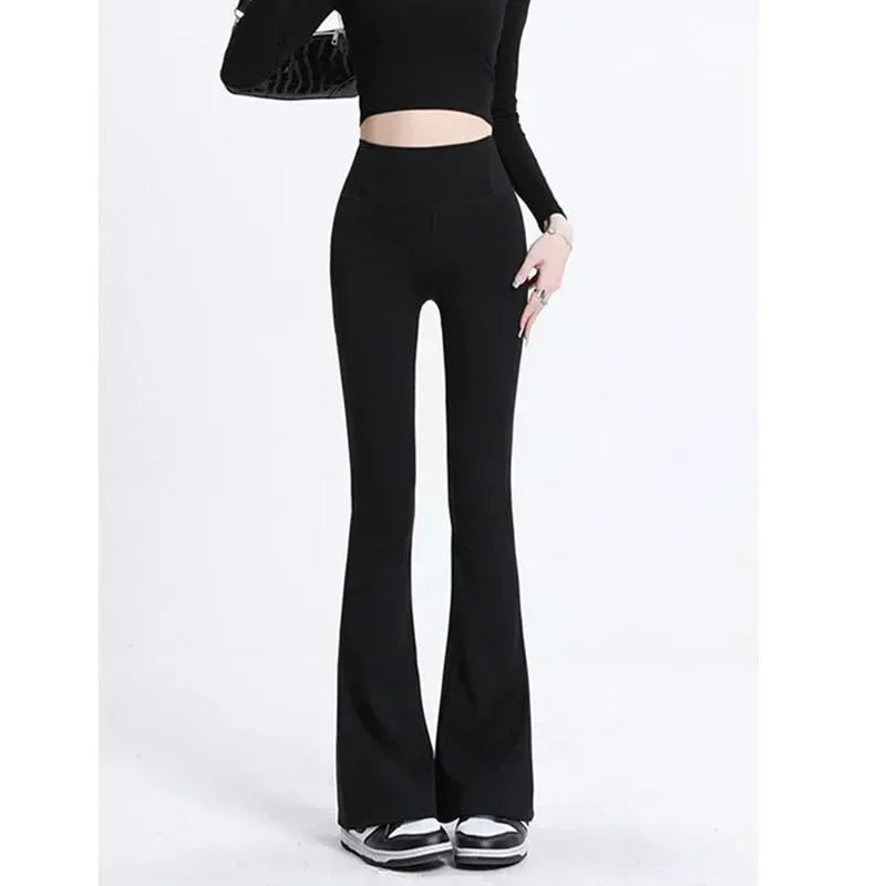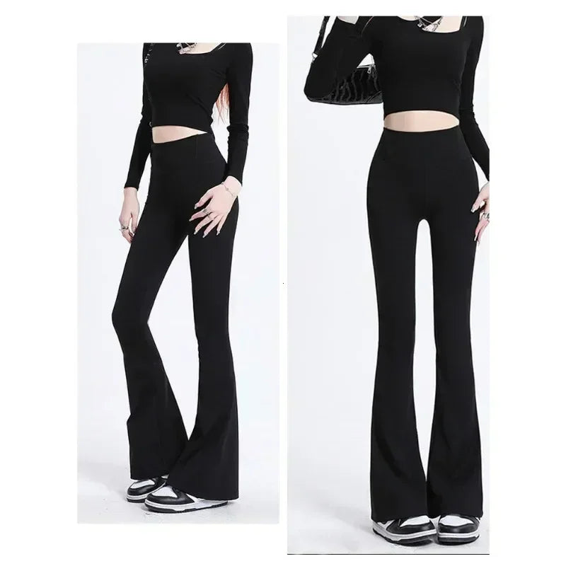 Women's Sexy Slim Pants Ribbed Solid Color Pants High Waisted Flared Pants Showing Longer Legs All-match Sports LongPants