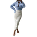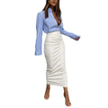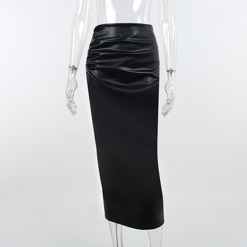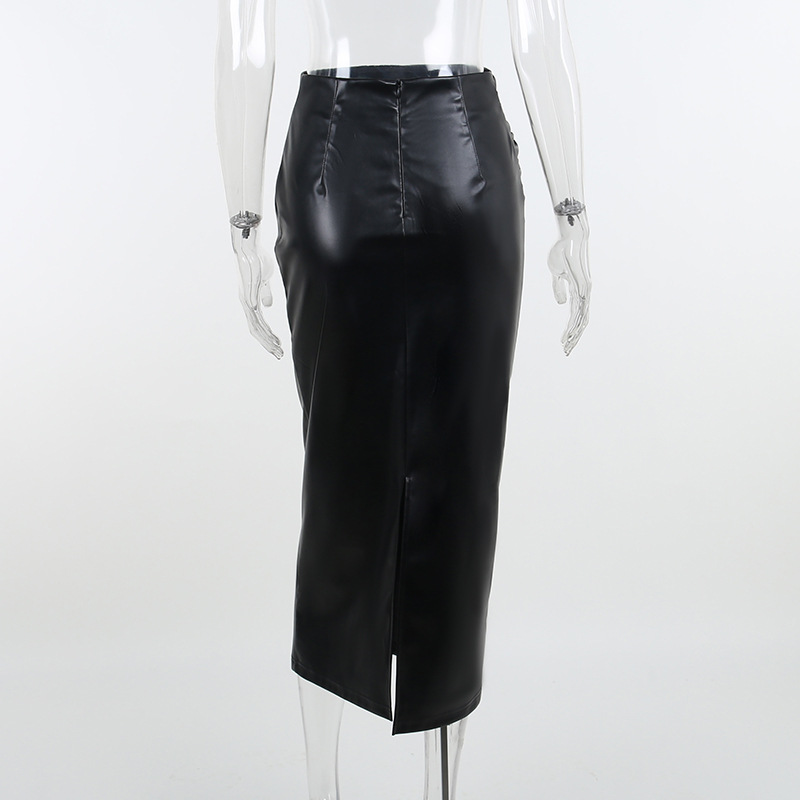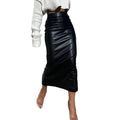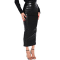 Fashion Autumn Sexy High Waist Bodycon Skirt Women Slim-fit Solid Color Slit PU Leather Long Skirt Black/White