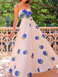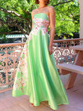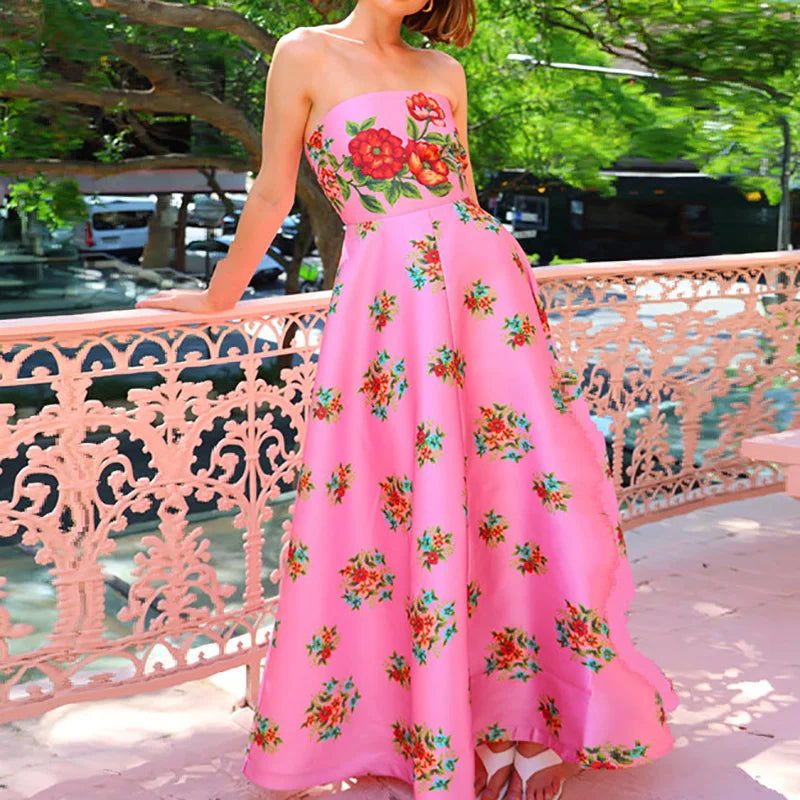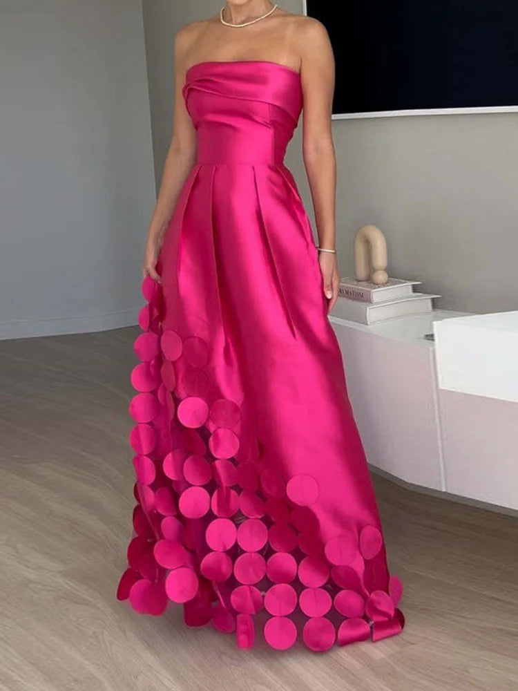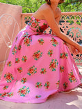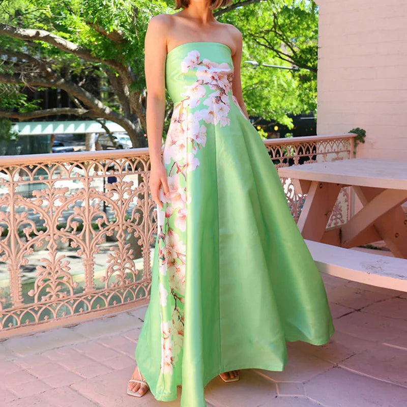 Strapless Slim Fit Patchwork Holiday Dress, Women Summer Sexy Backless Sleeveless Maxi Party Dress, 2025 Elegant Ladies Dress