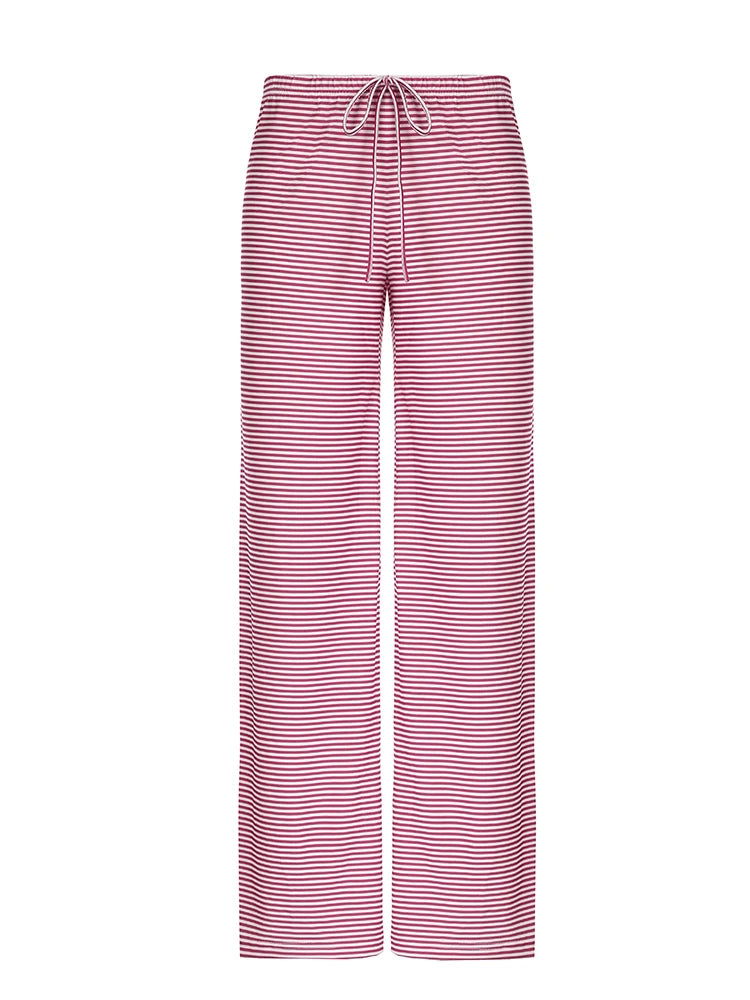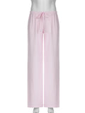 Rockmore Fashion Low Waist Pants Women 2024 Fall Casual Streetwear Y2K Striped Print Wide Leg Trouser Baggy Female Straight Pant
