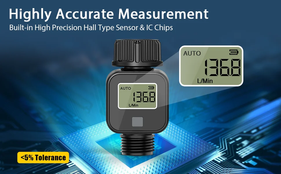 The WiFi water timer has built-in high-precision hall type sensor & IC chip to achieve measurement accuracy reaches 0.1 gallon, measurement tolerance <5%. Great to measure how much water is being used and prevent over-watering.