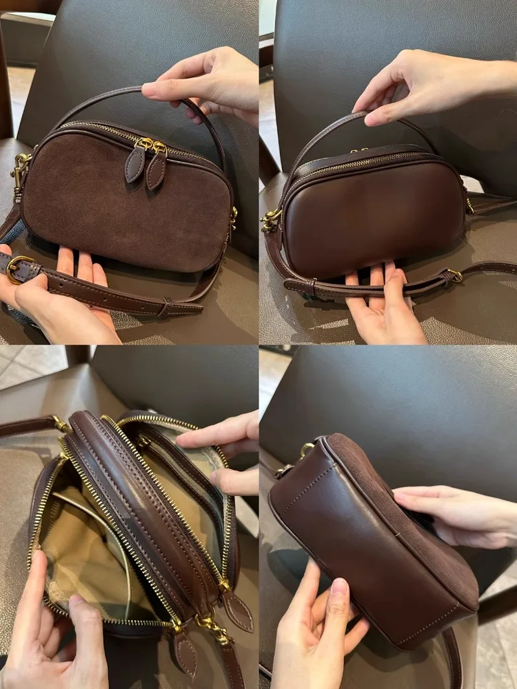 1.Cowhide Genuine Leather Material,Crafted from premium cowhide, this shoulder bag offers durability and a luxurious feel.