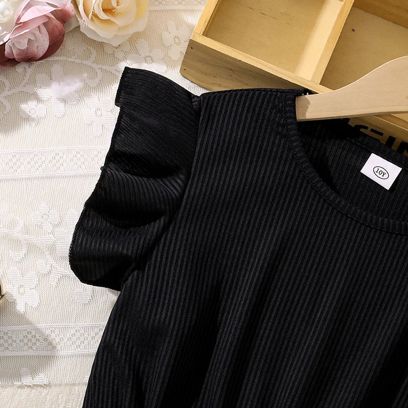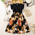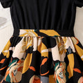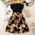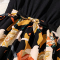 Girls Dress Black Knitted Belted Patchwork Printed Dress Vintage Style Trendy Tween Girls Dress Daily Outgoing Baptism Clothes