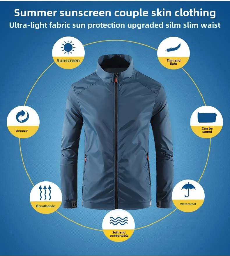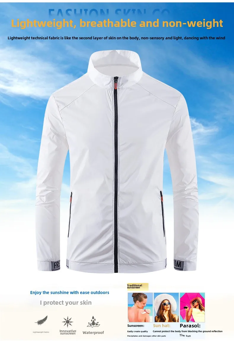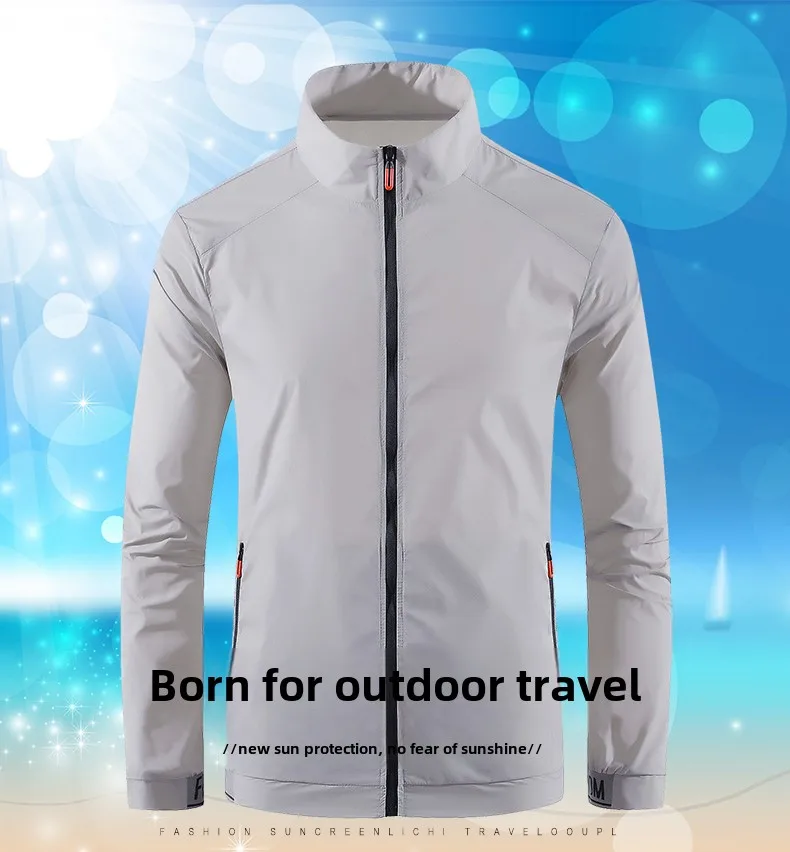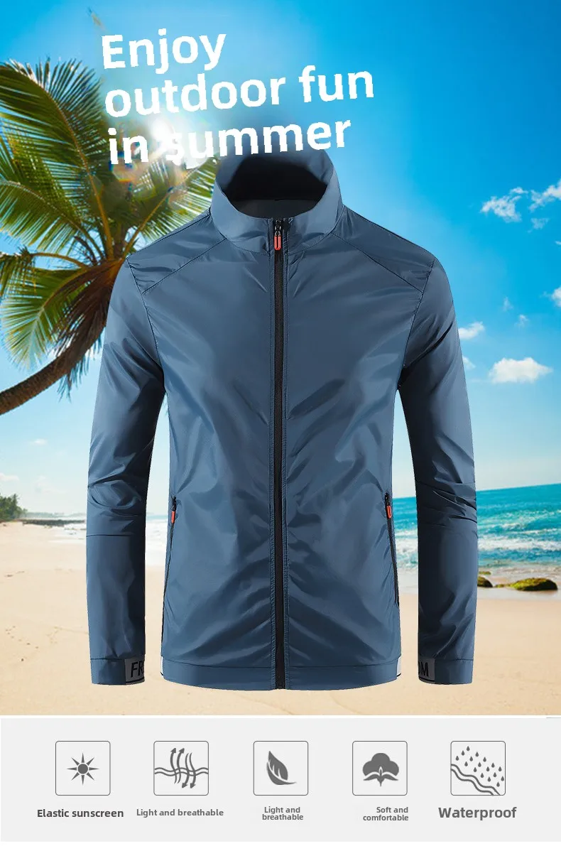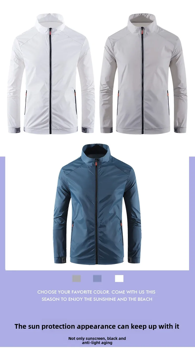 Men's Thin Jacket 2025 Summer New Ice Silk Breathable Quick Drying Sports Top Casual Outdoor Fishing Stand Up Collar Coat 4XL