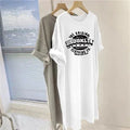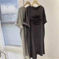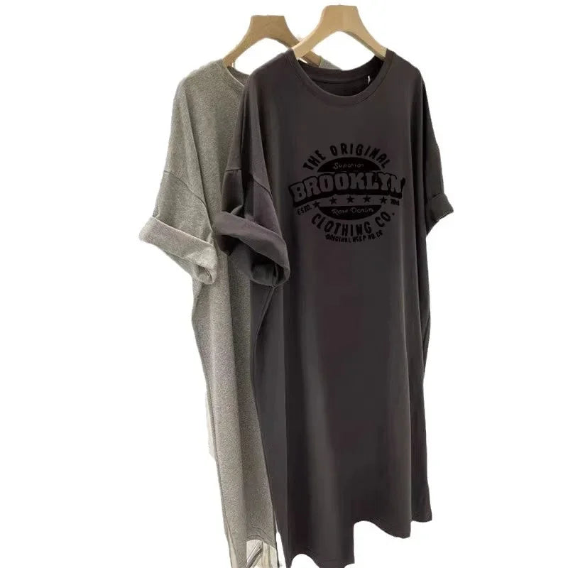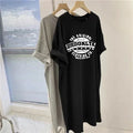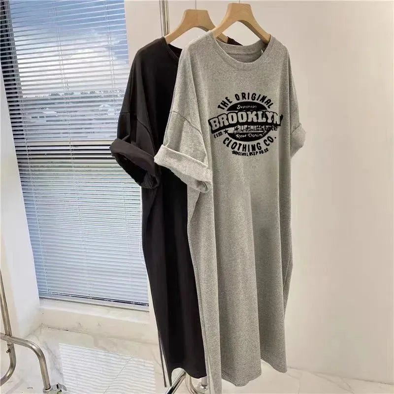 Plus Size Women's Summer Korean-Style Loose-Fit Short-Sleeve Printing T-Dress Casual Long Dress Medium-Length Side Slit Slimm...