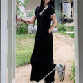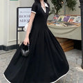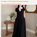Plus Size Office Lady's Elegant Black Dress Short Sleeve Loose Pleated Midi Dress Casual Matching Dress Vintage Hepburn Dress