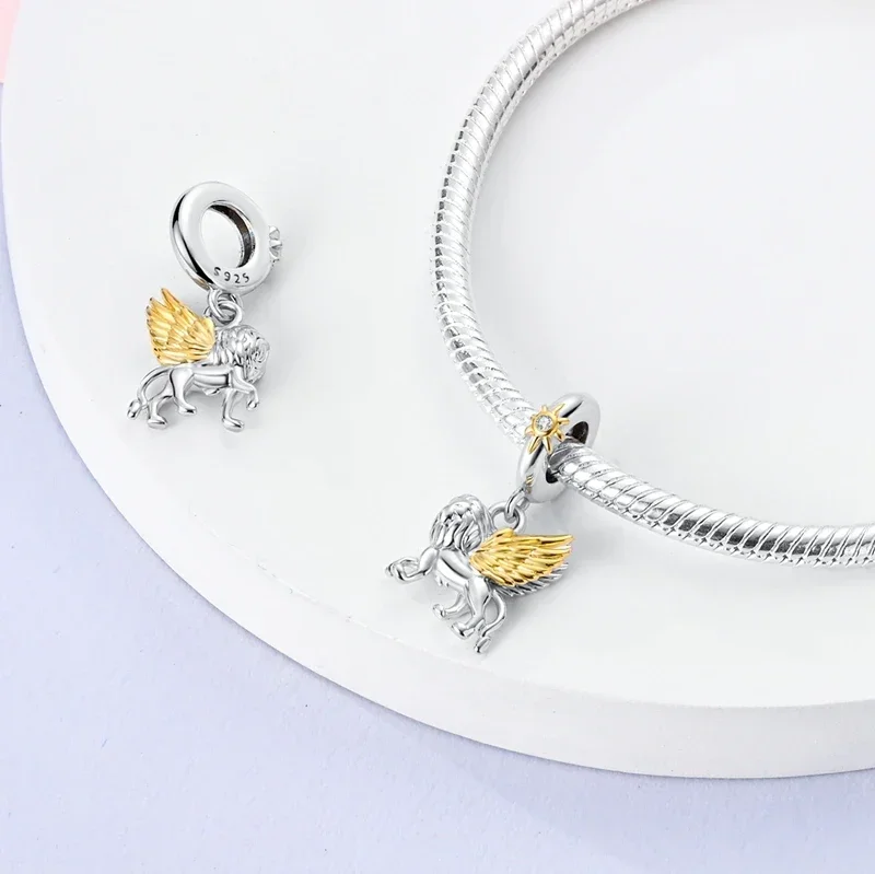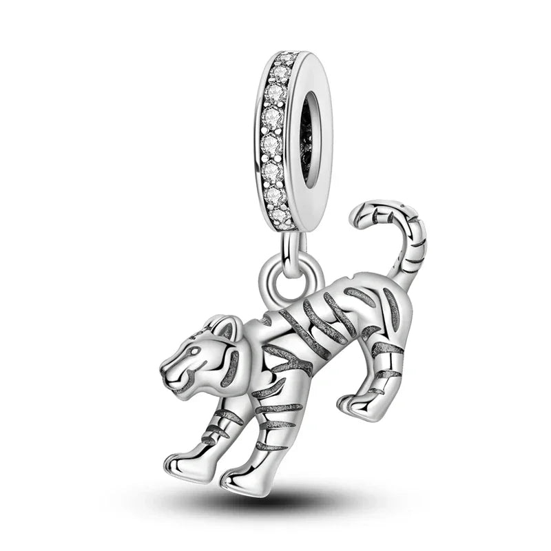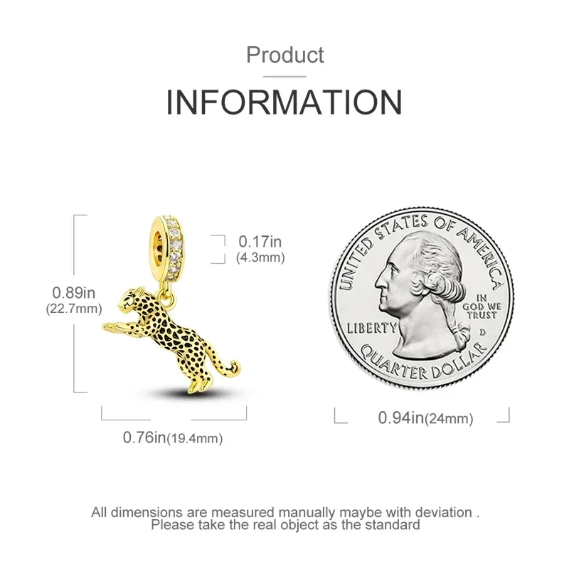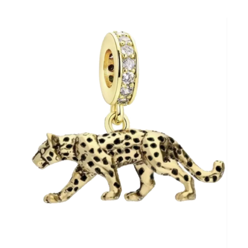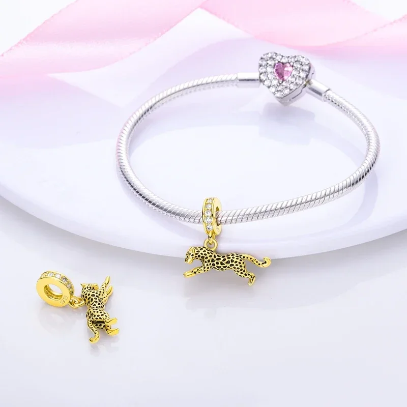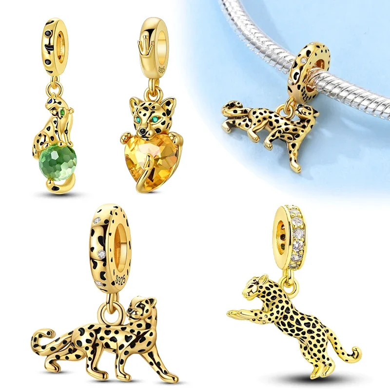 925 Sterling Silver Gold Color Guardian Leopard Cheetah Animal Dangle Charms Beads Pendant Fit Bracelet Necklace DIY Jewelry