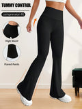 Spring and summer nude flared pants, high waisted slimming leggings, hip lifting slightly wide leg running and fitness pants