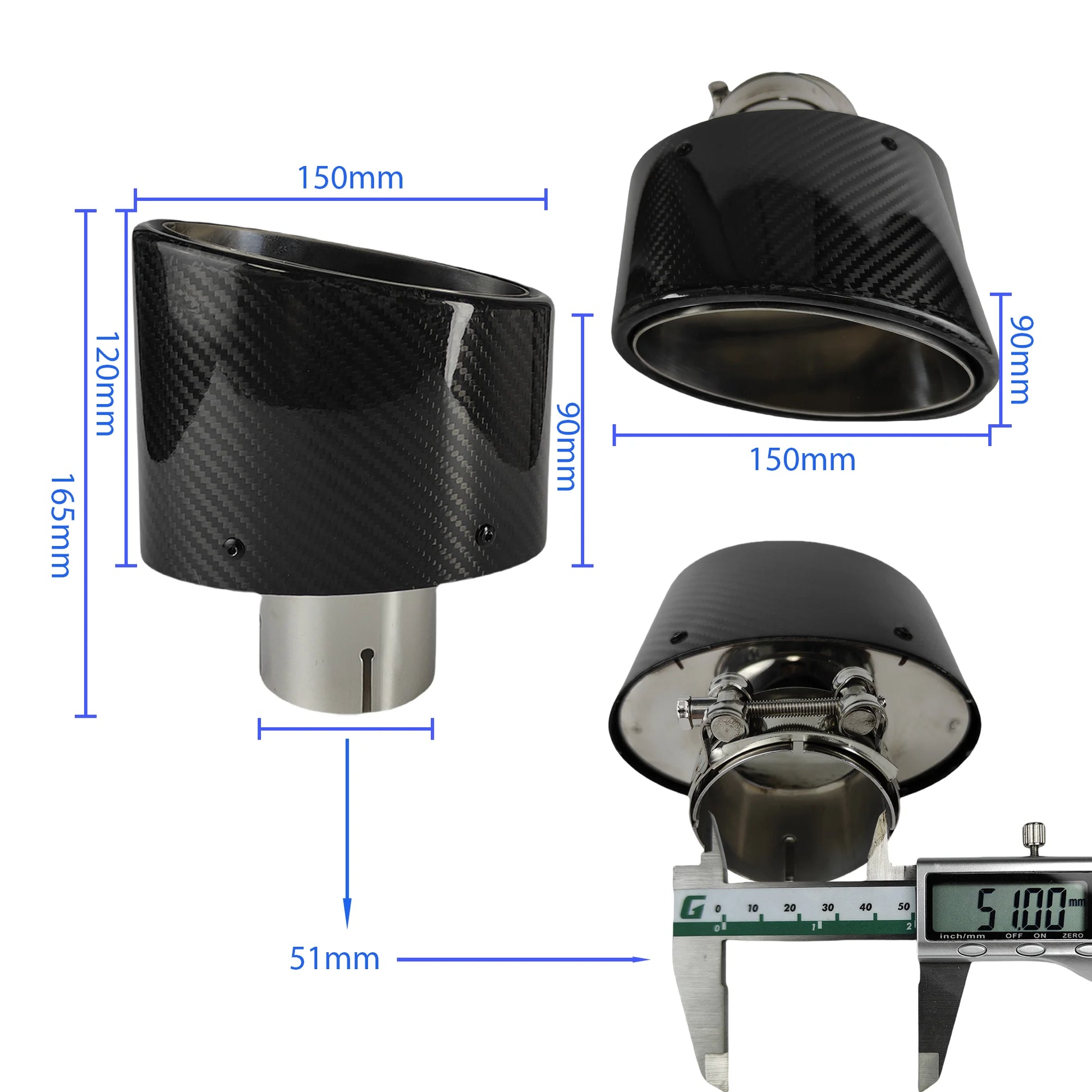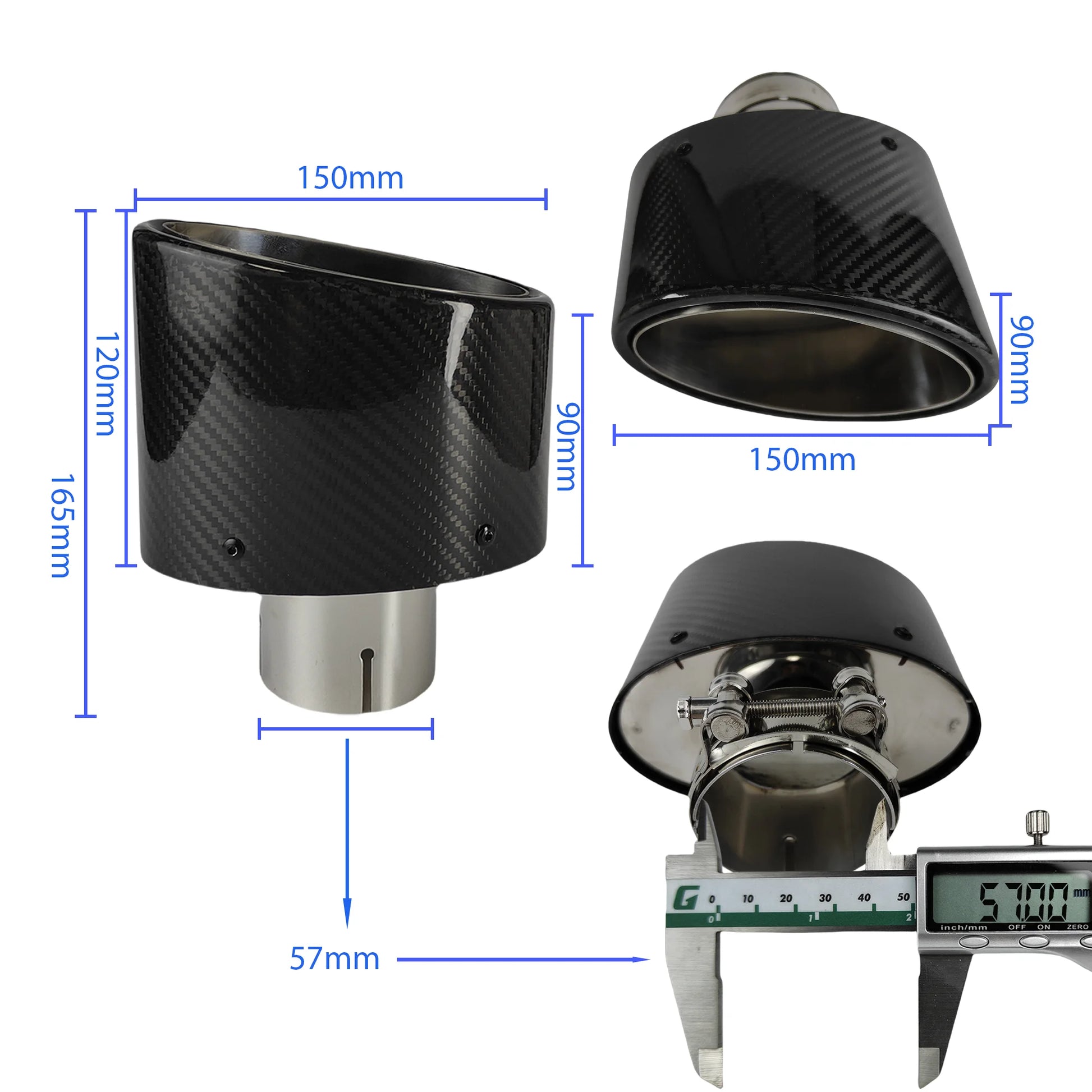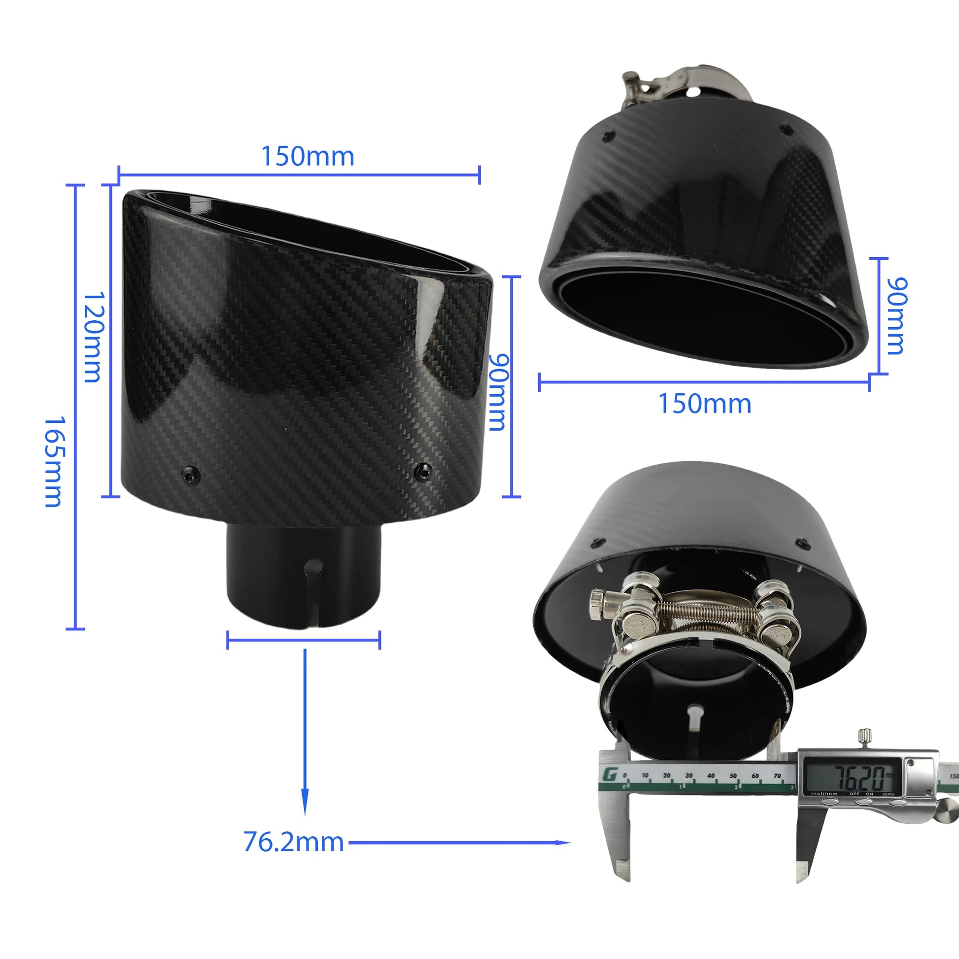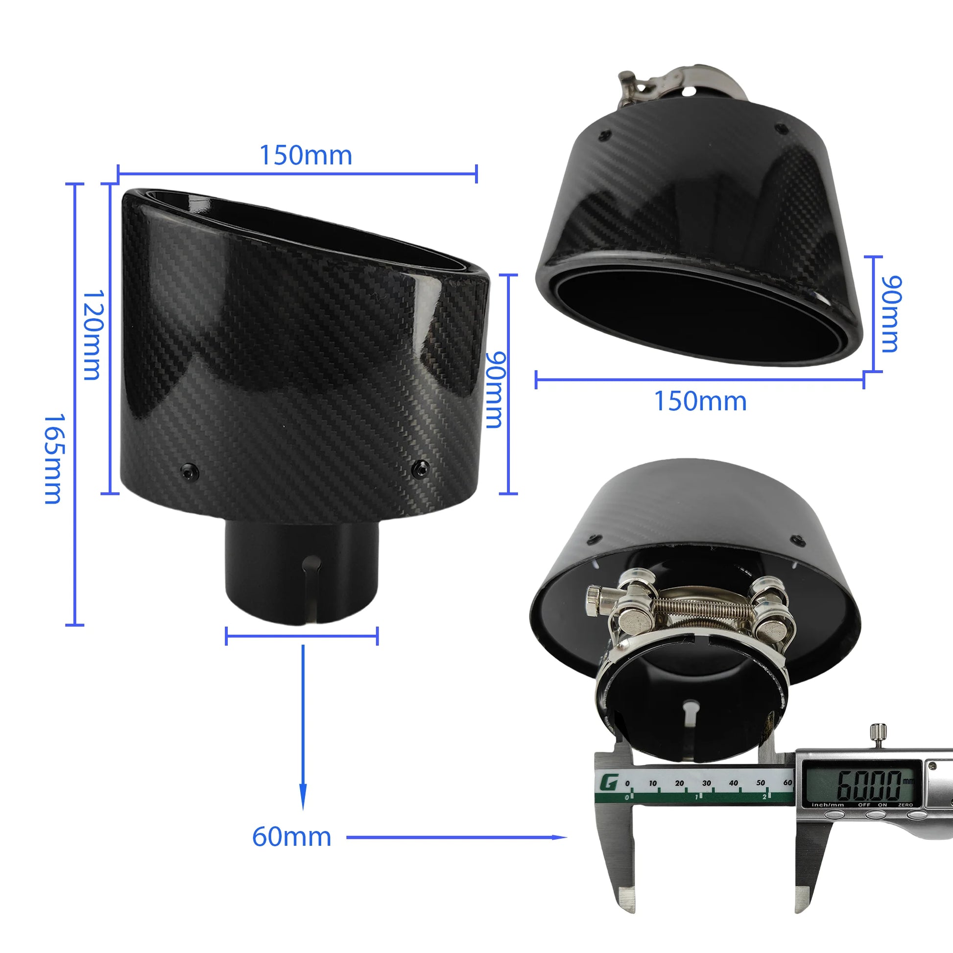 1Pcs Universal Car Glossy Carbon Fiber Muffler Tip Exhaust Pipe Nozzle Decoration Stainless Silver Oval 150mm Tilting Left Right