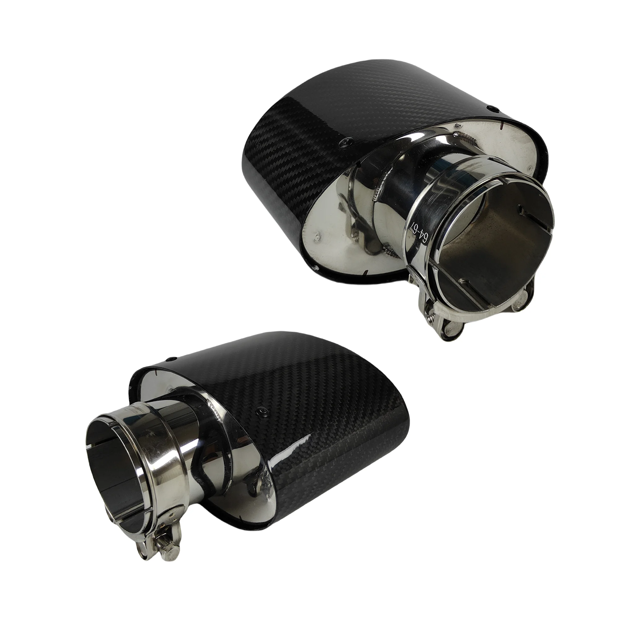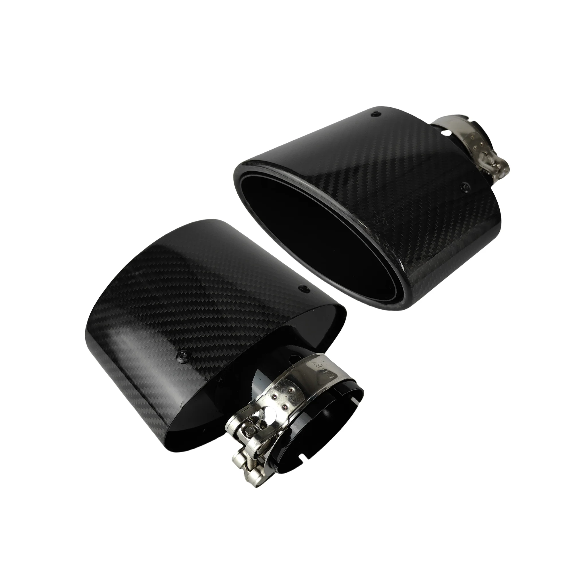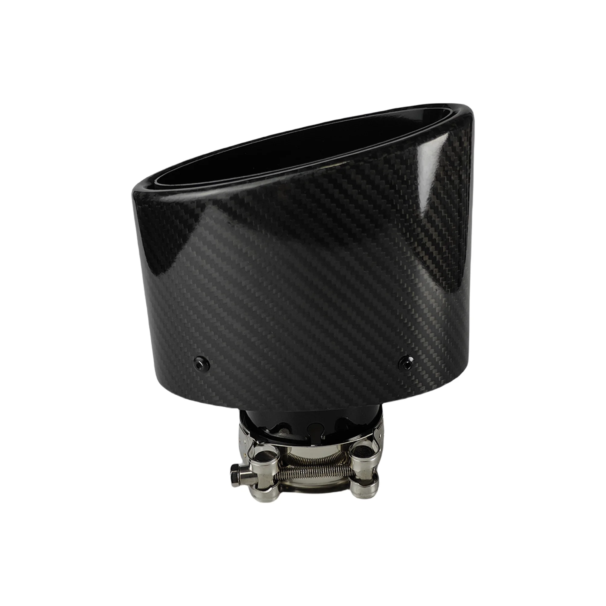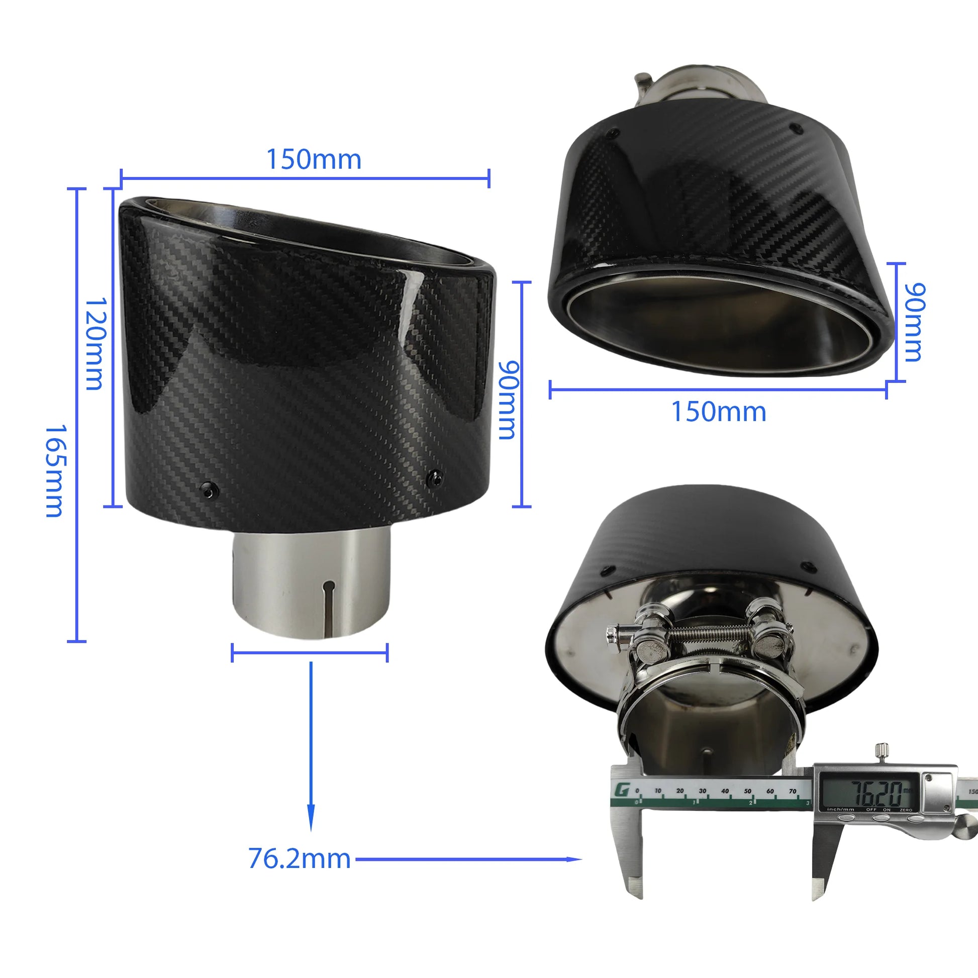 1Pcs Universal Car Glossy Carbon Fiber Muffler Tip Exhaust Pipe Nozzle Decoration Stainless Silver Oval 150mm Tilting Left Right