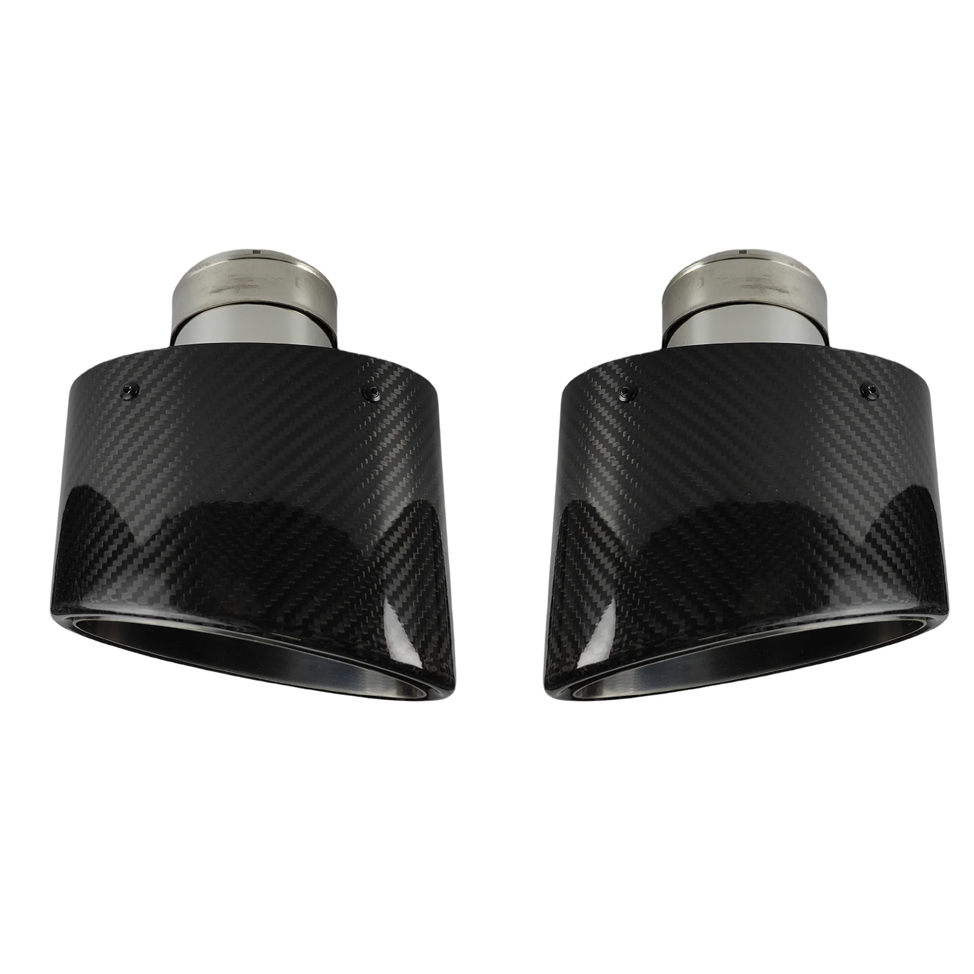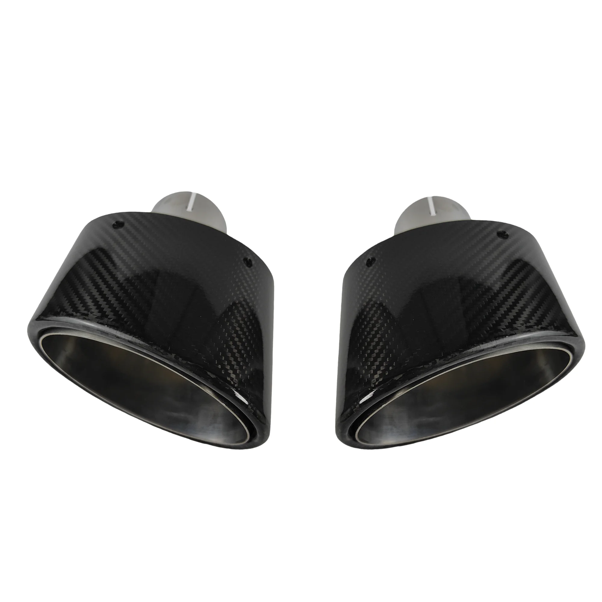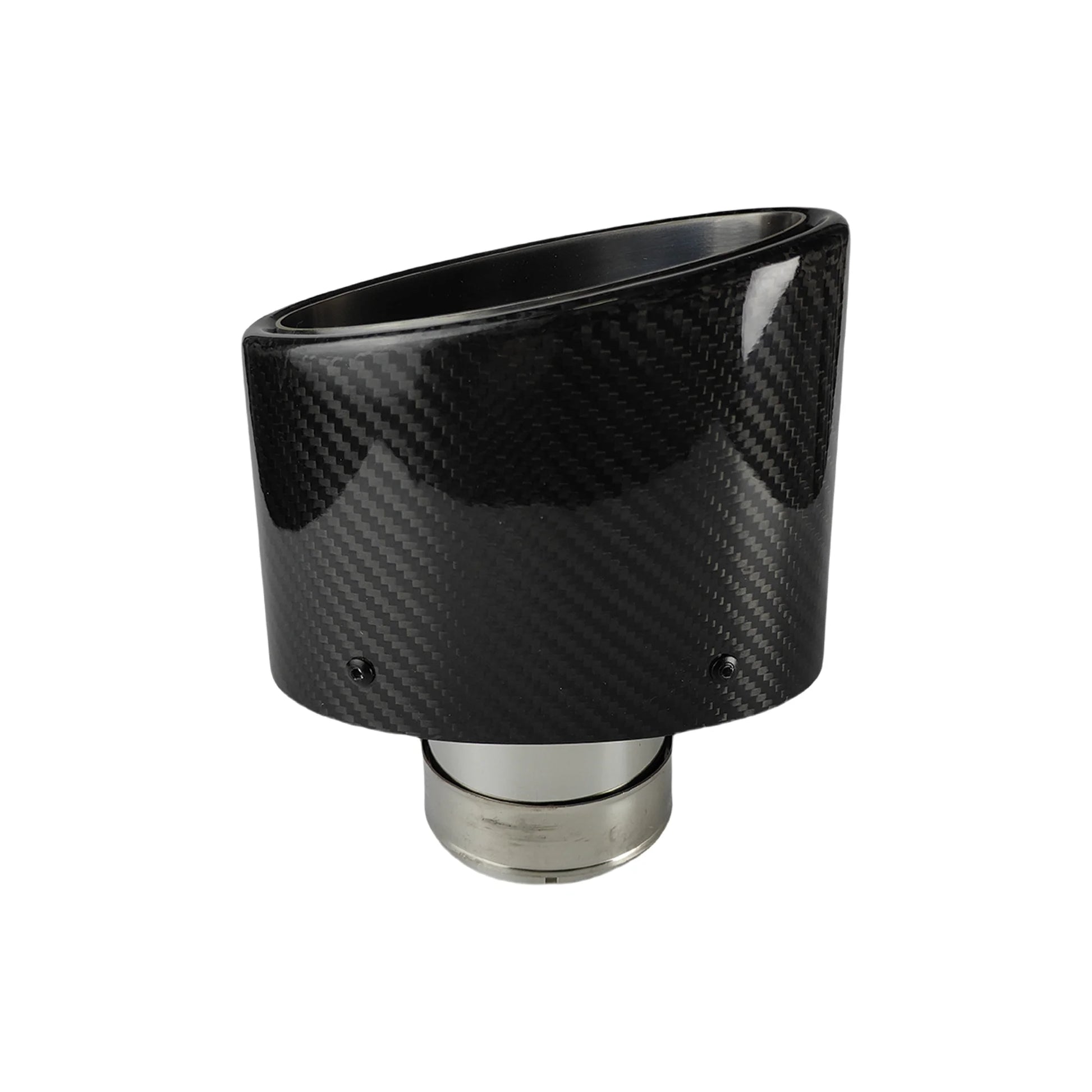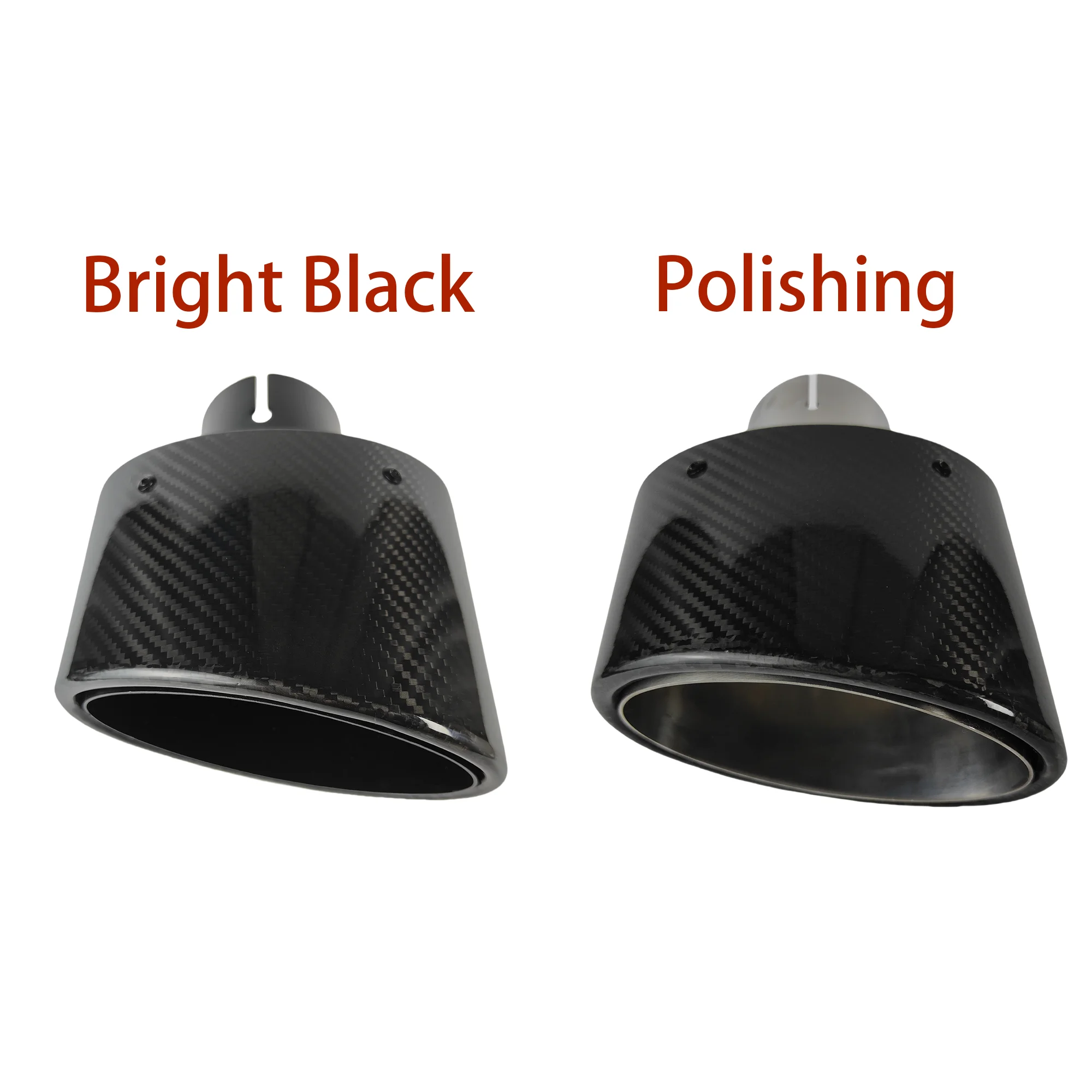 1Pcs Universal Car Glossy Carbon Fiber Muffler Tip Exhaust Pipe Nozzle Decoration Stainless Silver Oval 150mm Tilting Left Right