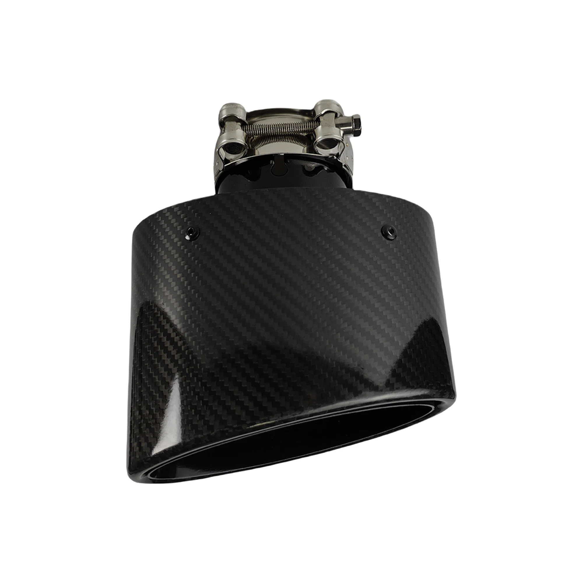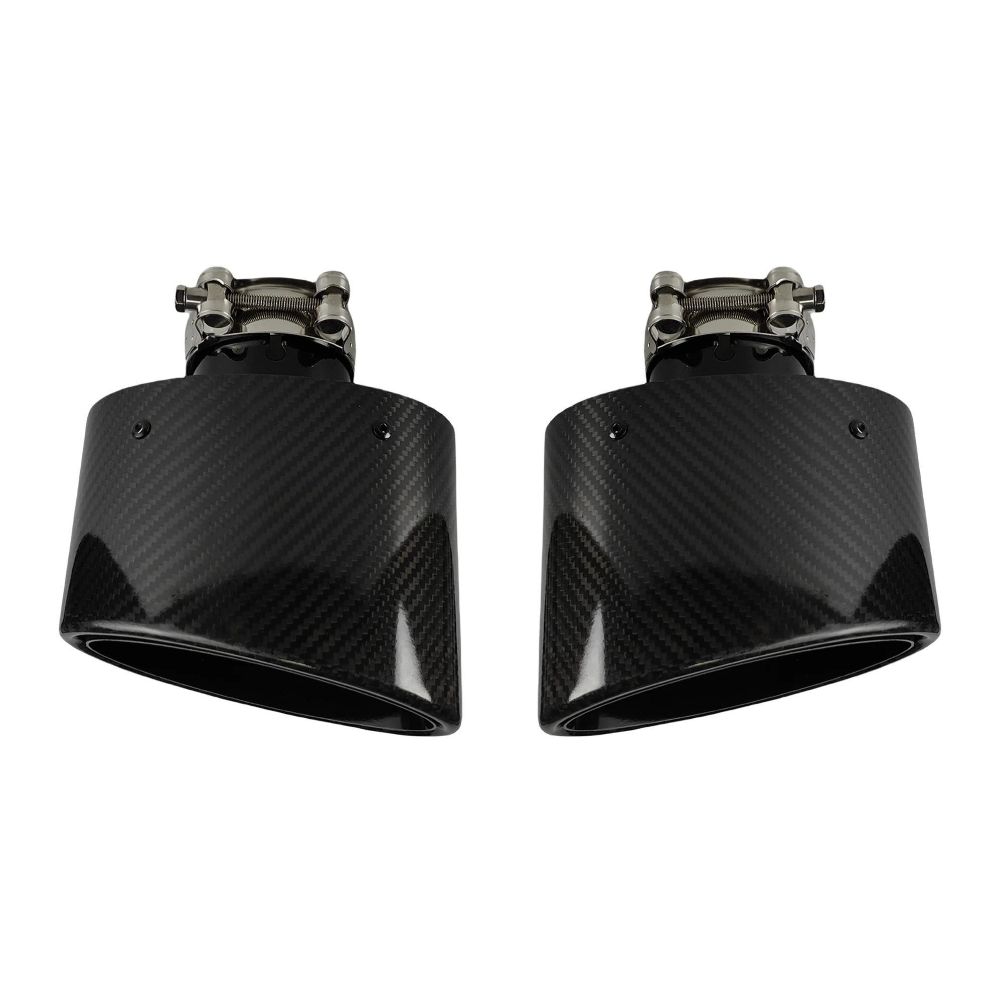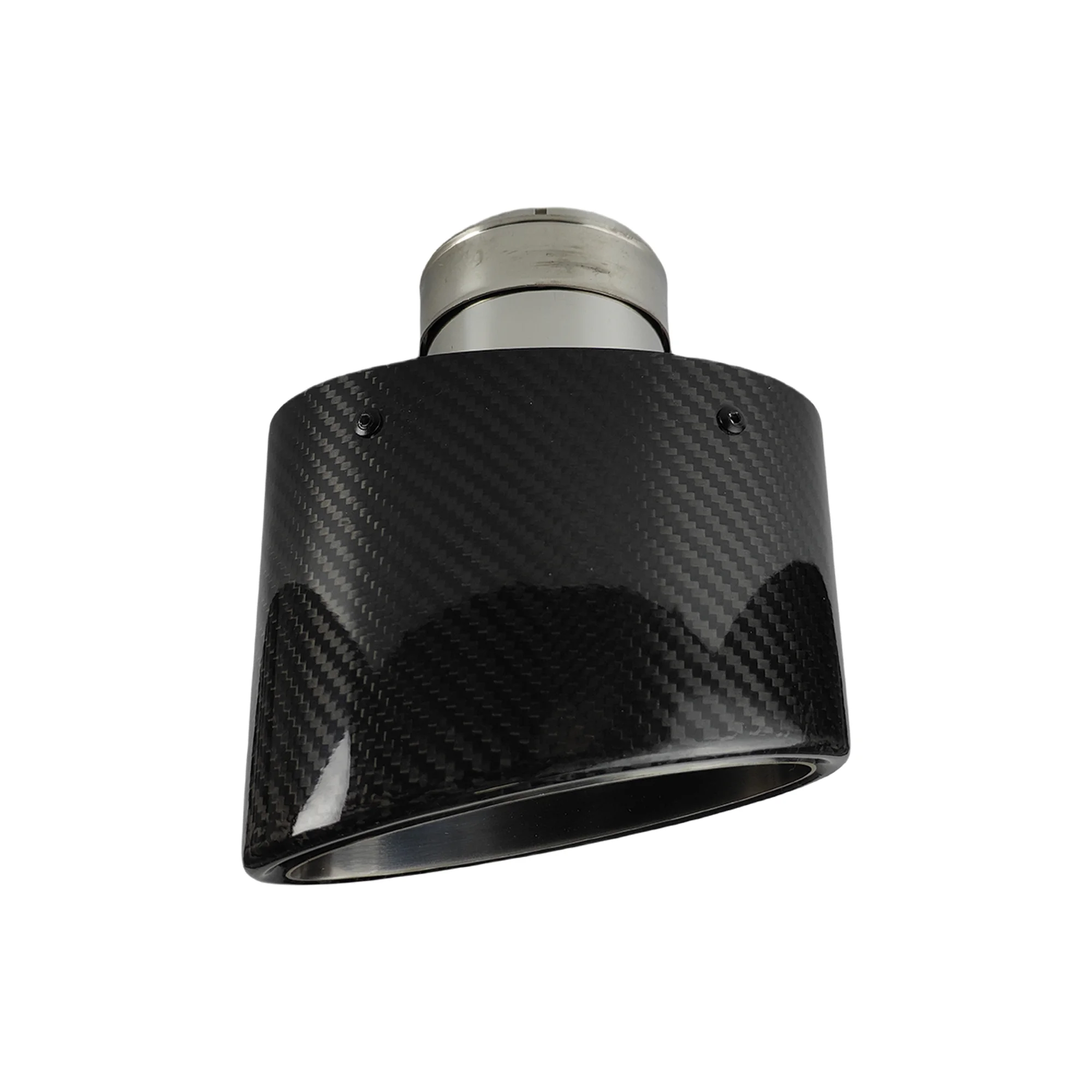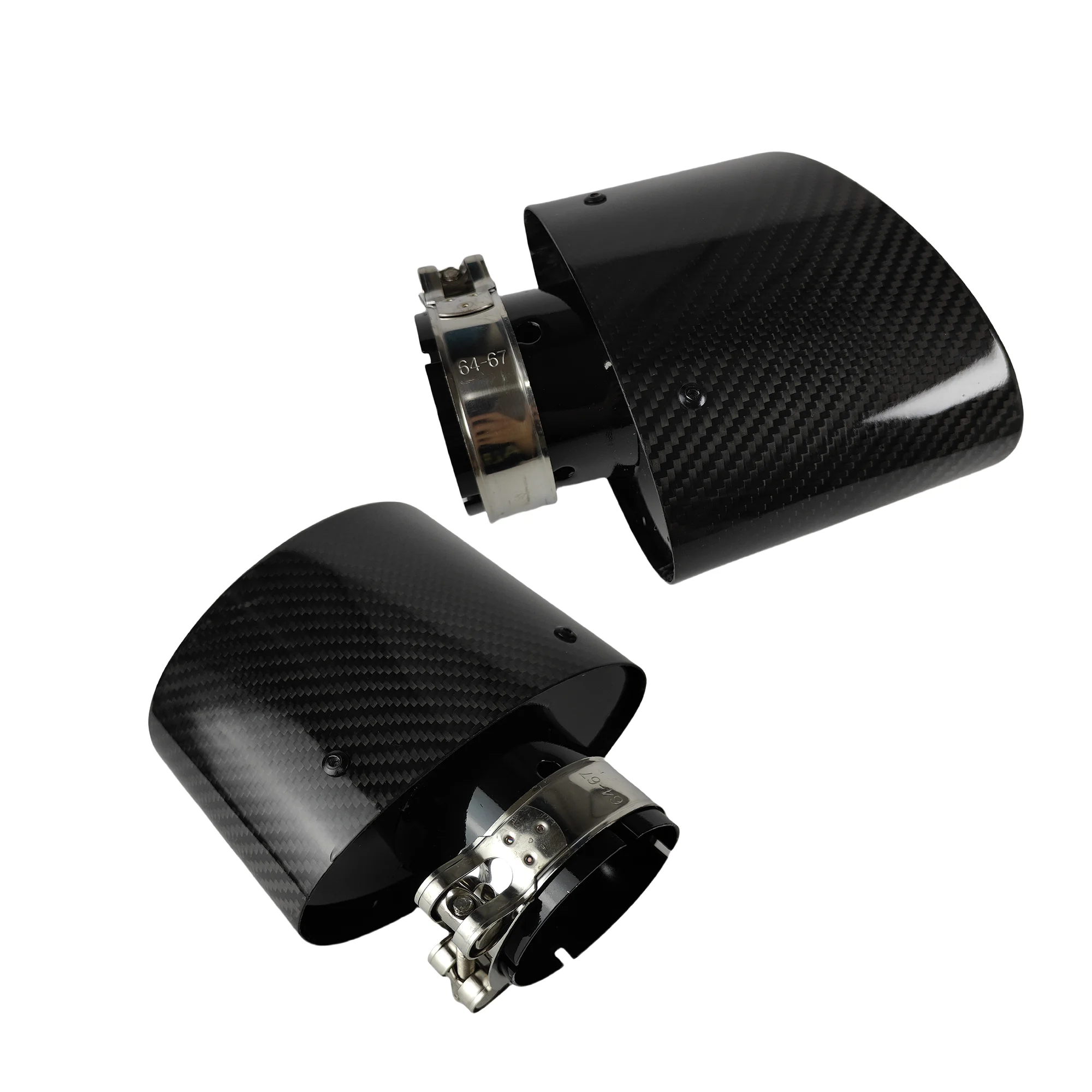 1Pcs Universal Car Glossy Carbon Fiber Muffler Tip Exhaust Pipe Nozzle Decoration Stainless Silver Oval 150mm Tilting Left Right