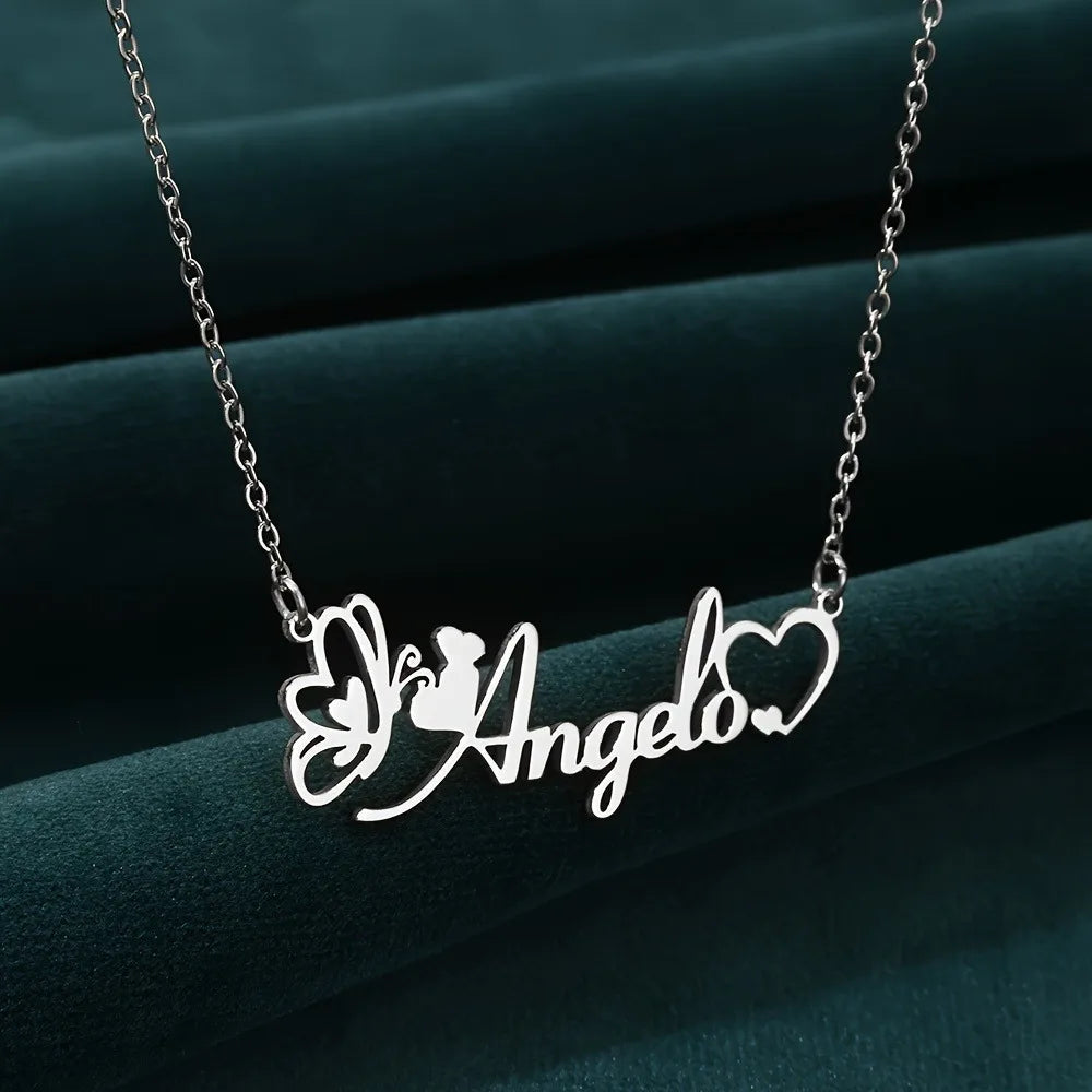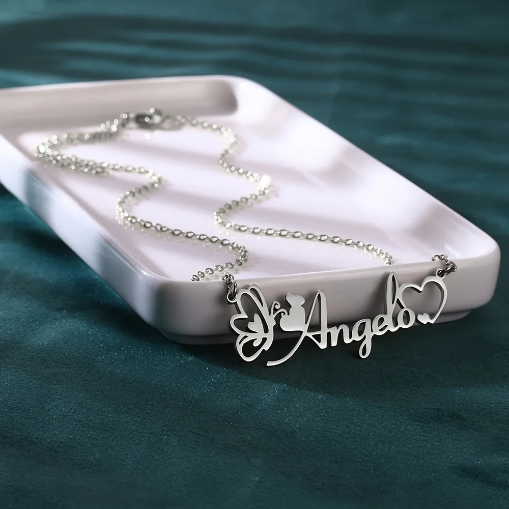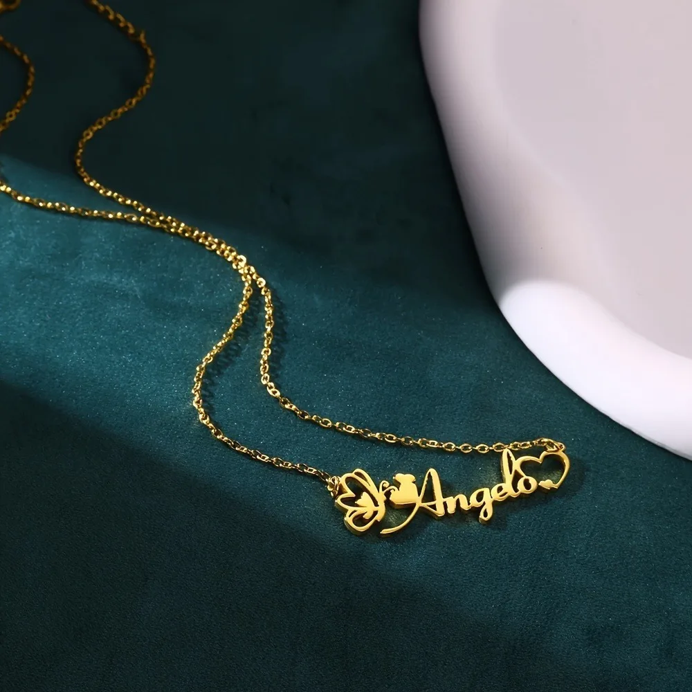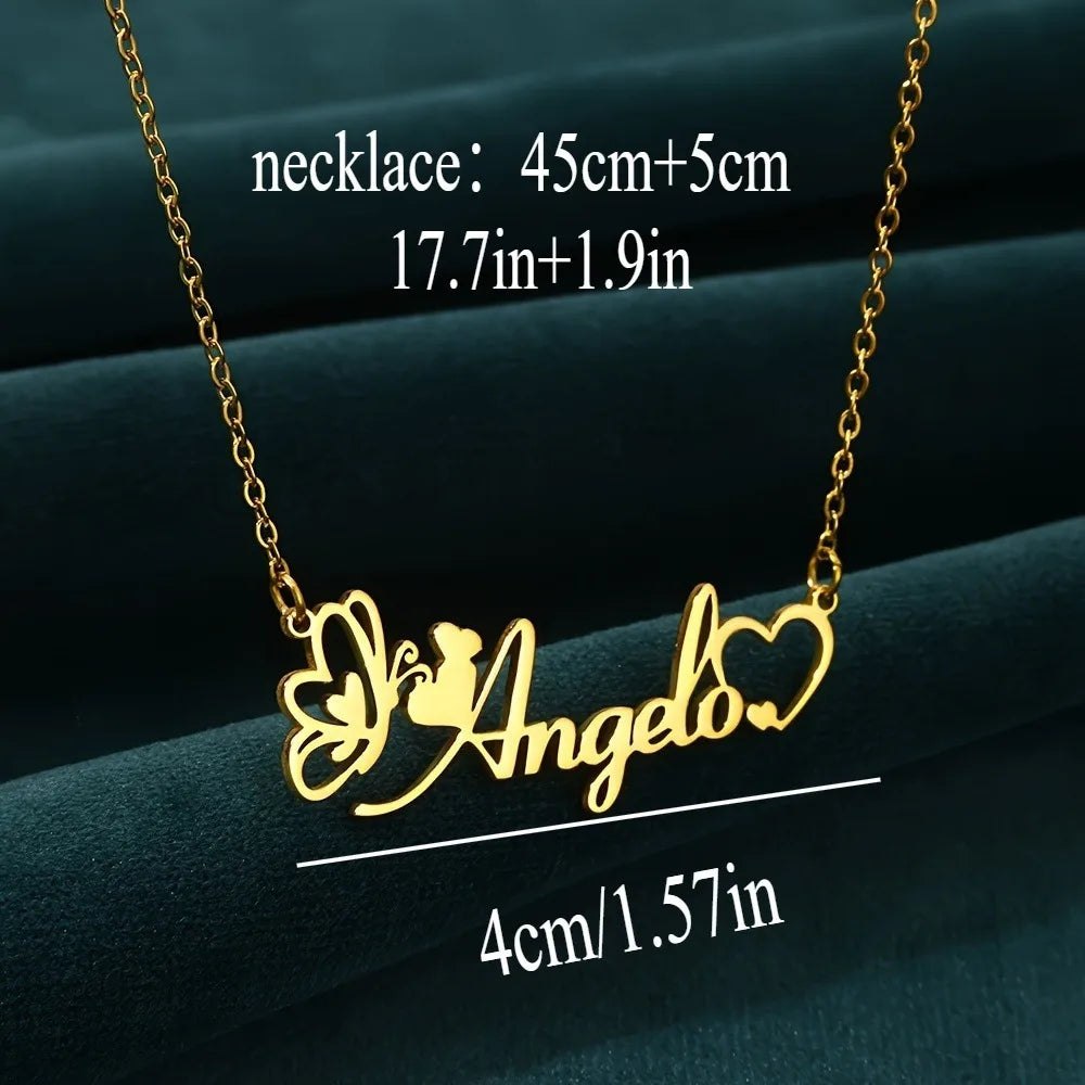 Customized Personalized Gold Butterfly Love the heartPendant Necklace Simple Charming Stainless Steel Jewelry Mother's Day Gift