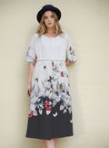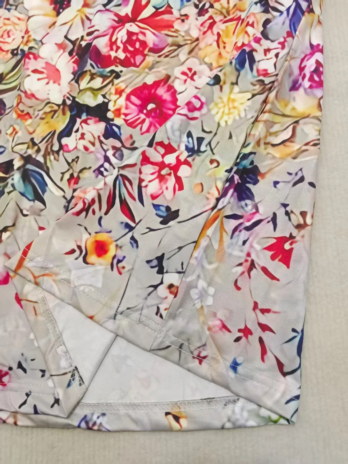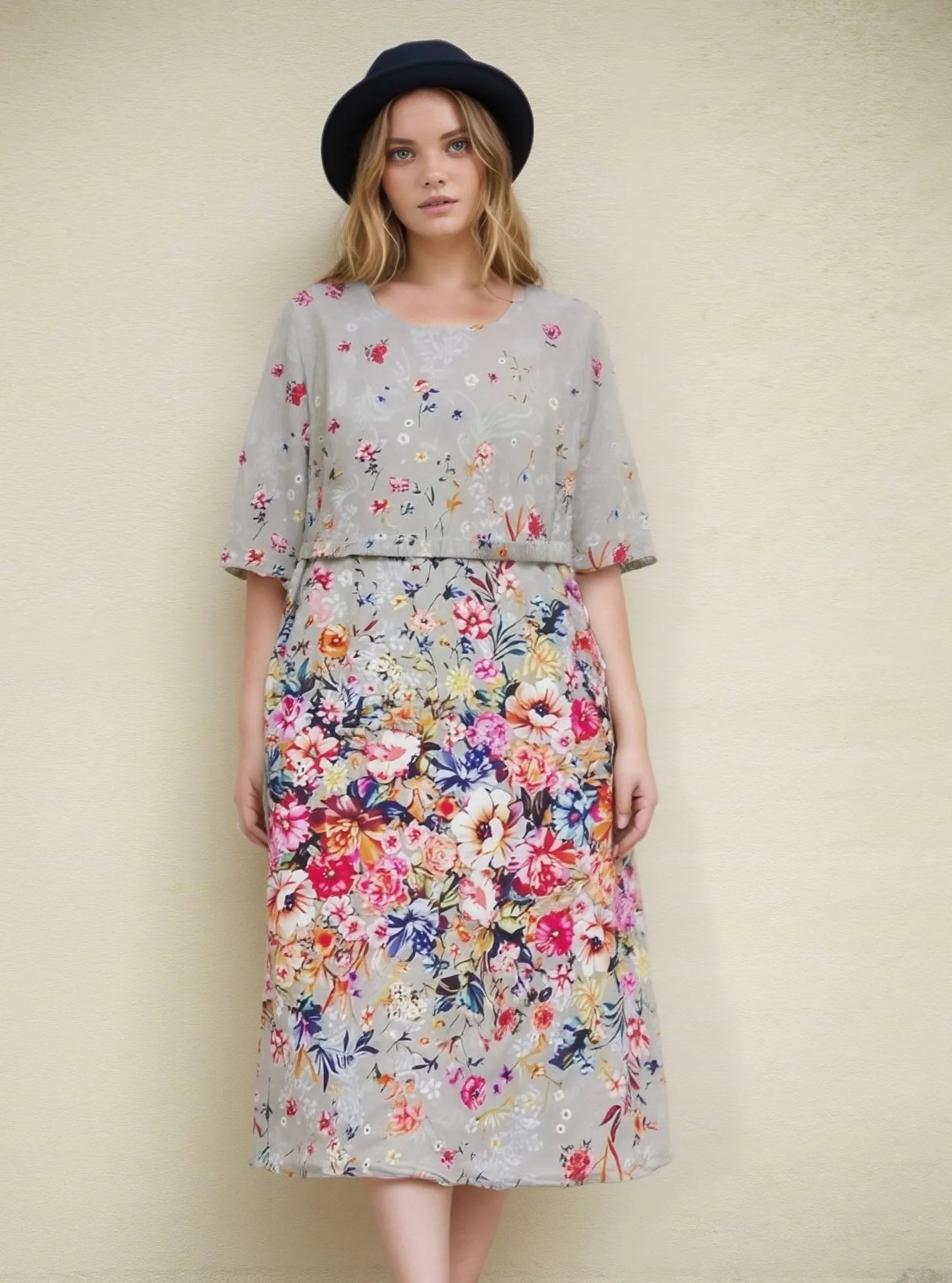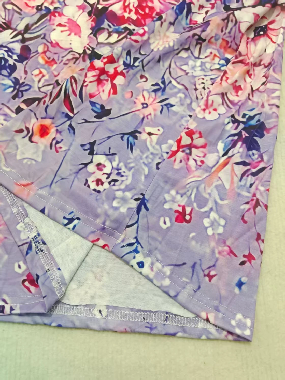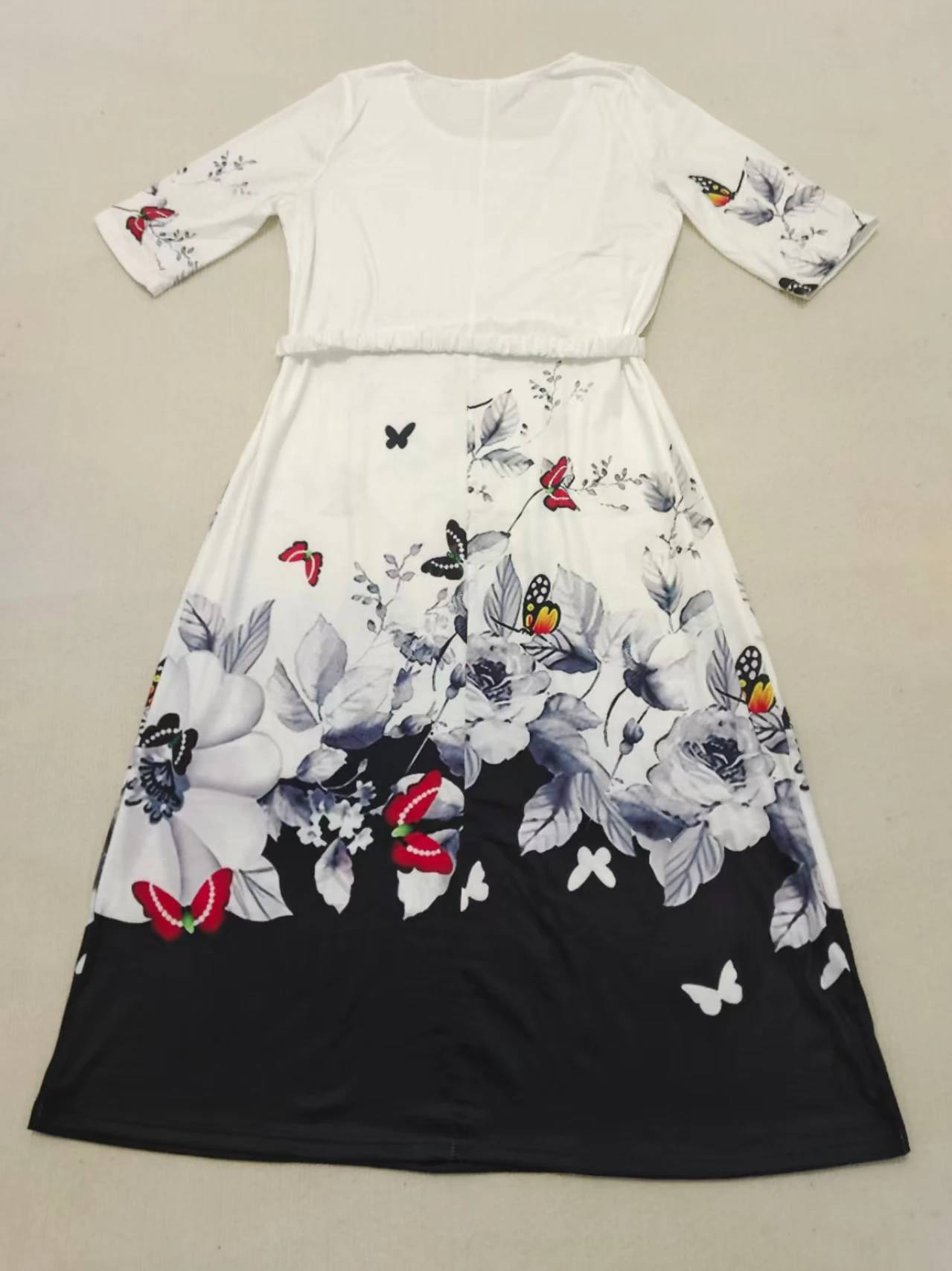 2025 European and American Summer Women's New Casual Floral Round Neck Mid-Length Straight Dress
