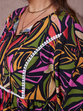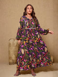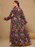 Plus Size 2025 Summer New Women Digital Printing Fashion Casual Dress Long Women Polyester Material Front Buttons