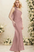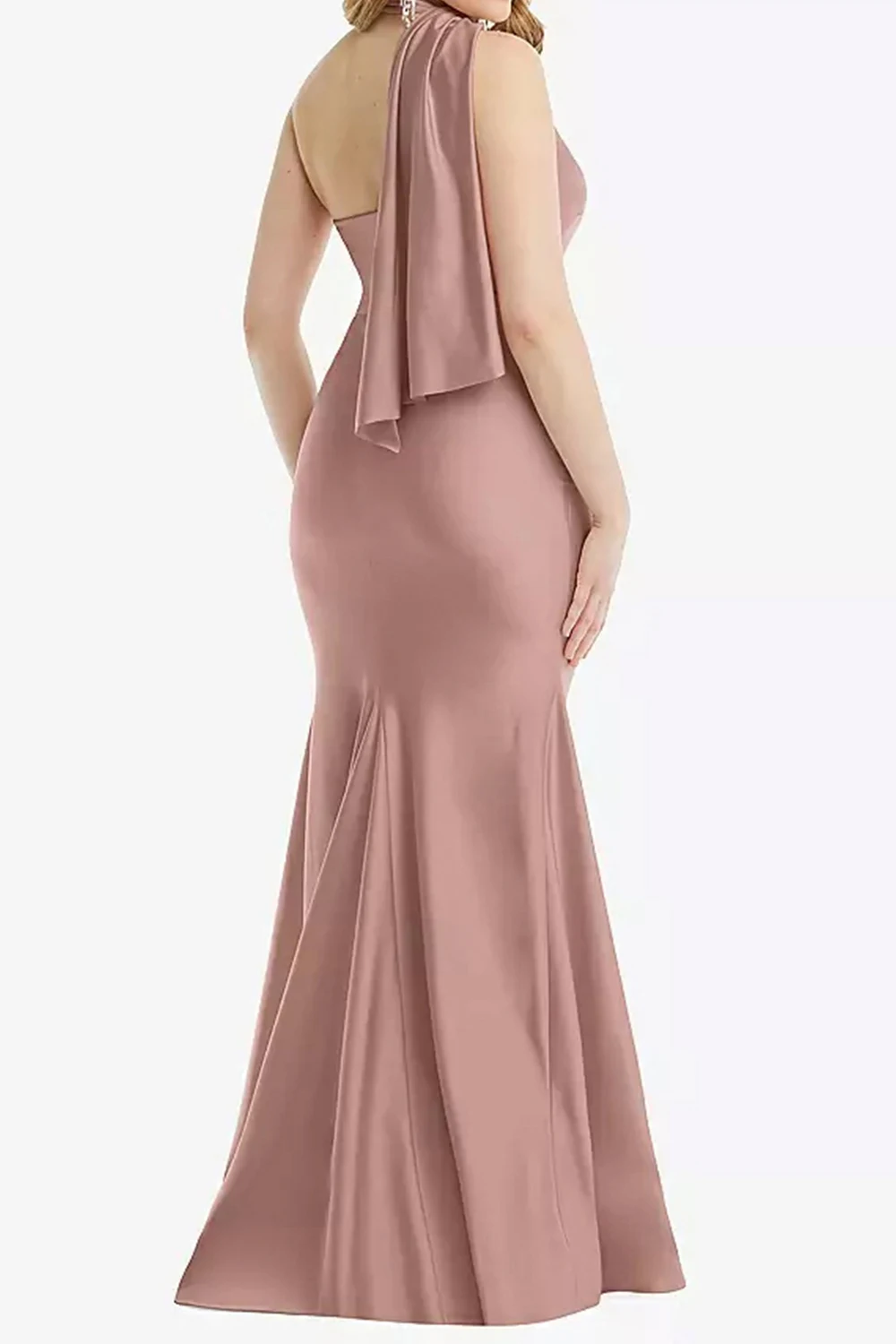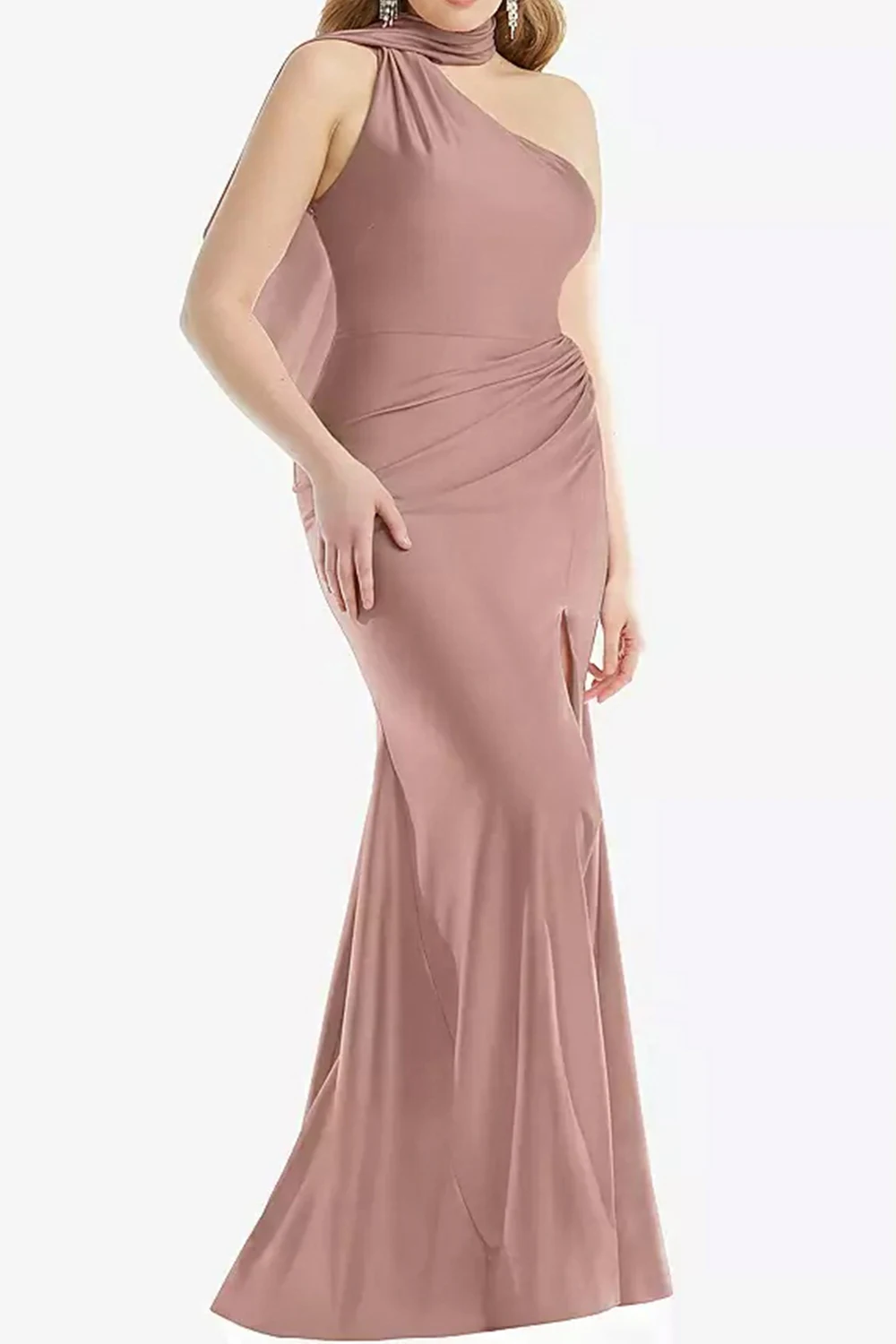 Women's Plus Size Evening Dress One Shoulder Scarf Collar Elegant Party Wedding Cocktail Maxi Dress Backless Mermaid Silk Dress
