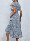 Plus Size 1XL-5XL Women V-Neck Floral Print Dress Breathable Summer Casual Elegant Dress Sophisticated Style Long Beach Dress