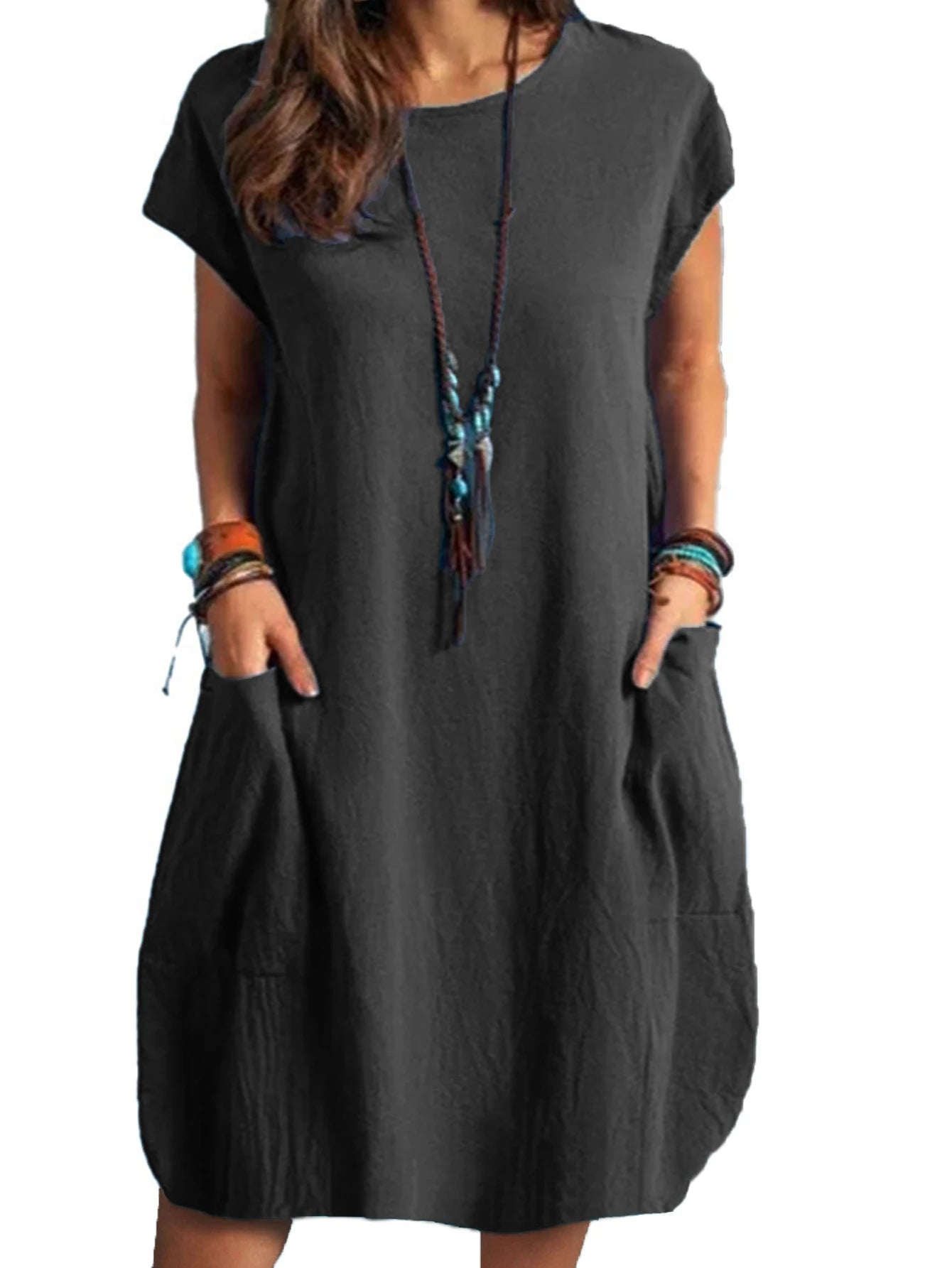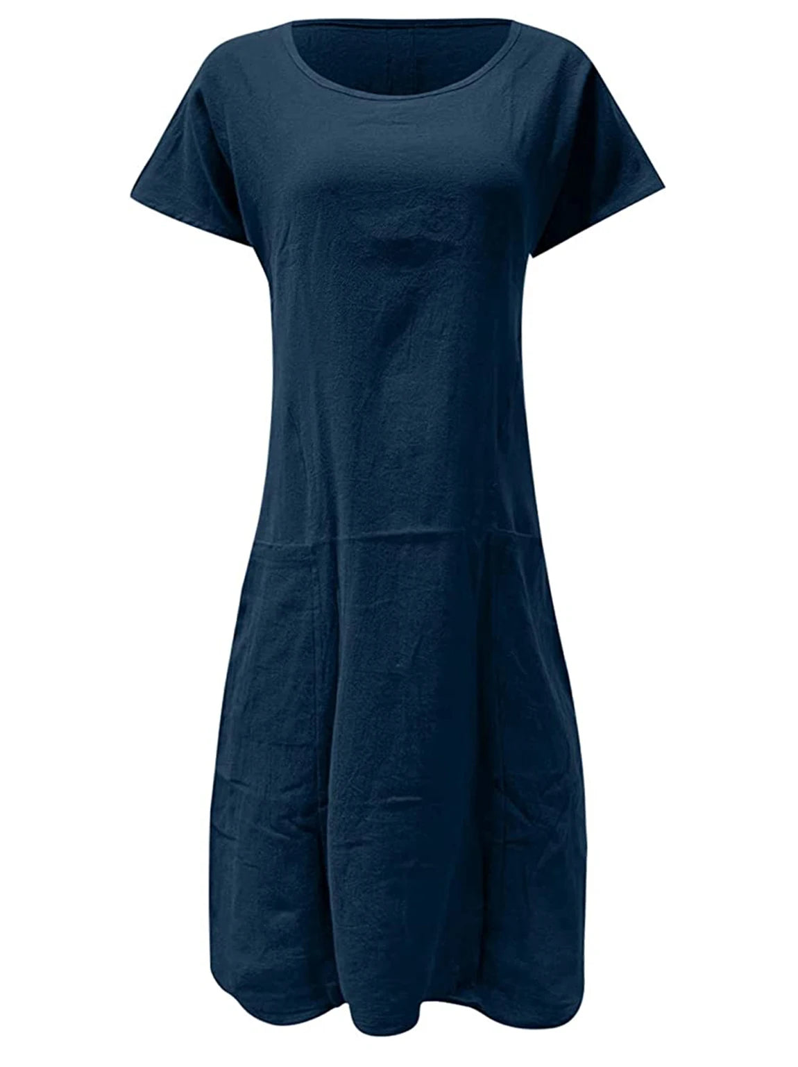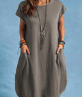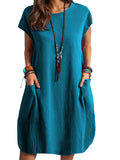 2025 Europe and America Cross border Foreign Trade New Casual Round Neck Loose Solid Pocket Dress