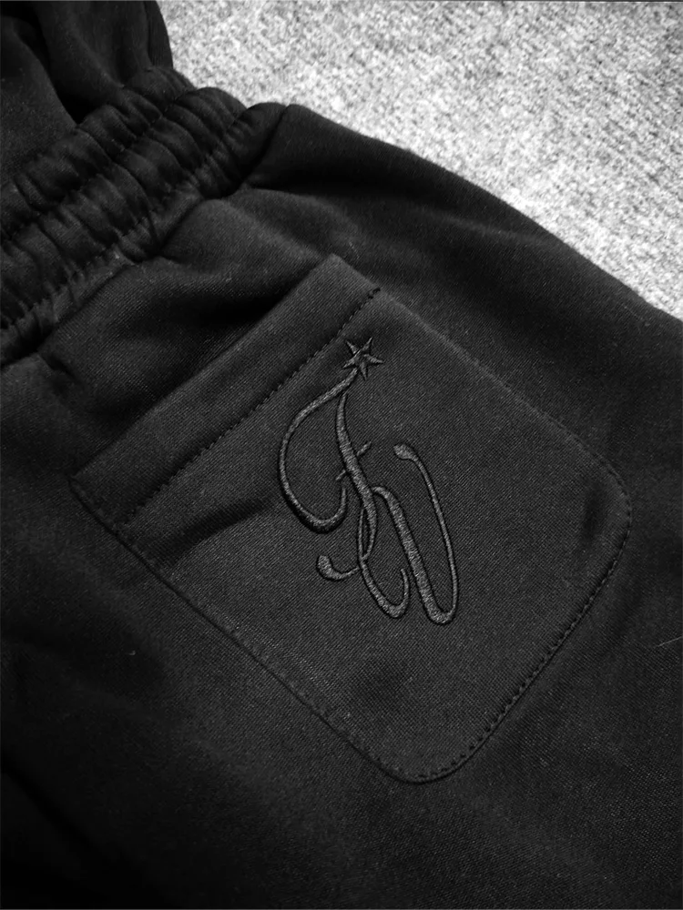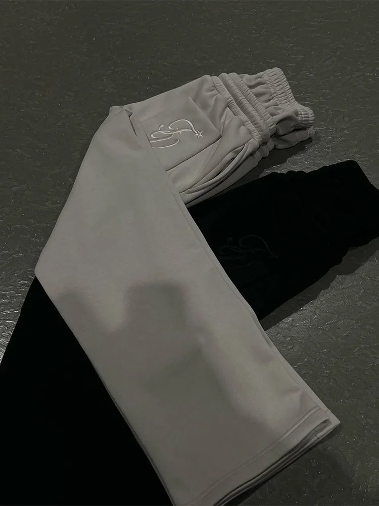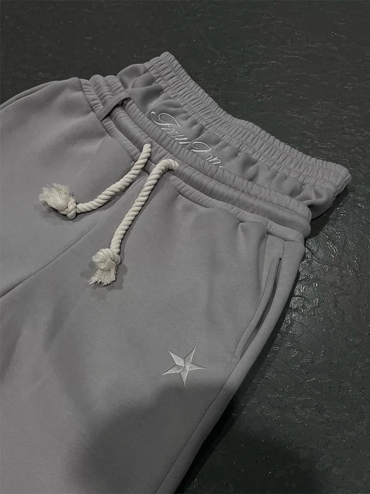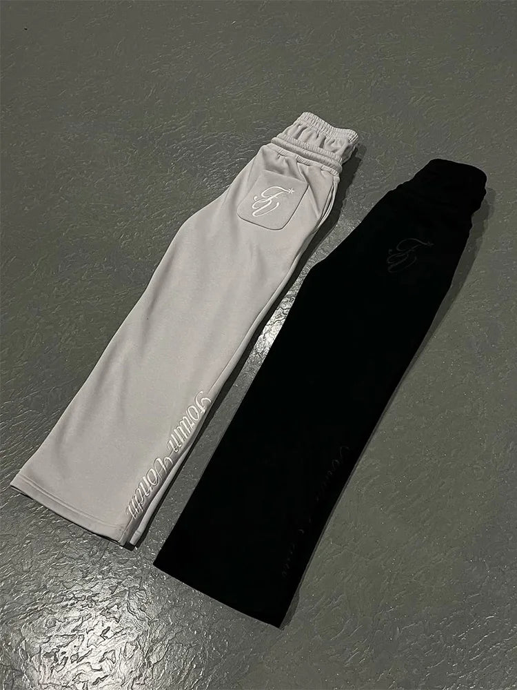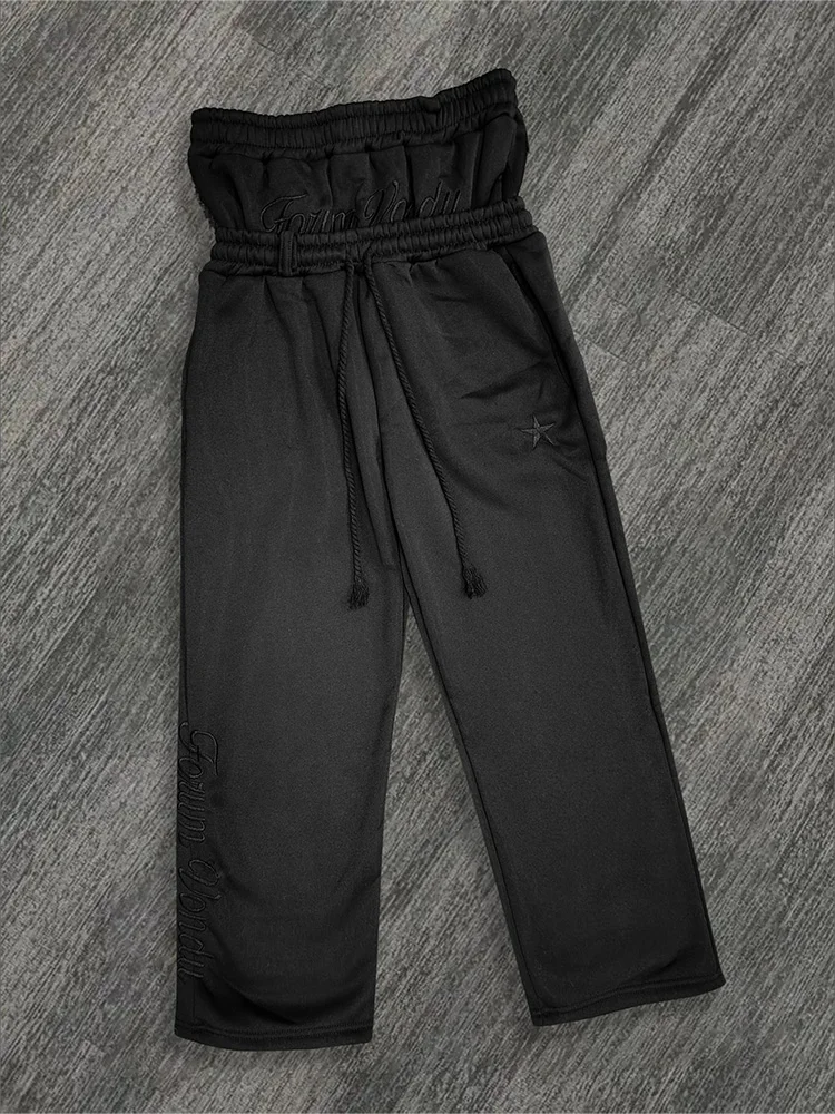 Harajuku Loose Double Waisted Sweatpants Y2K American Solid Color Letter Embroidery Casual Pants Hip Hop Drawstring sweat pants