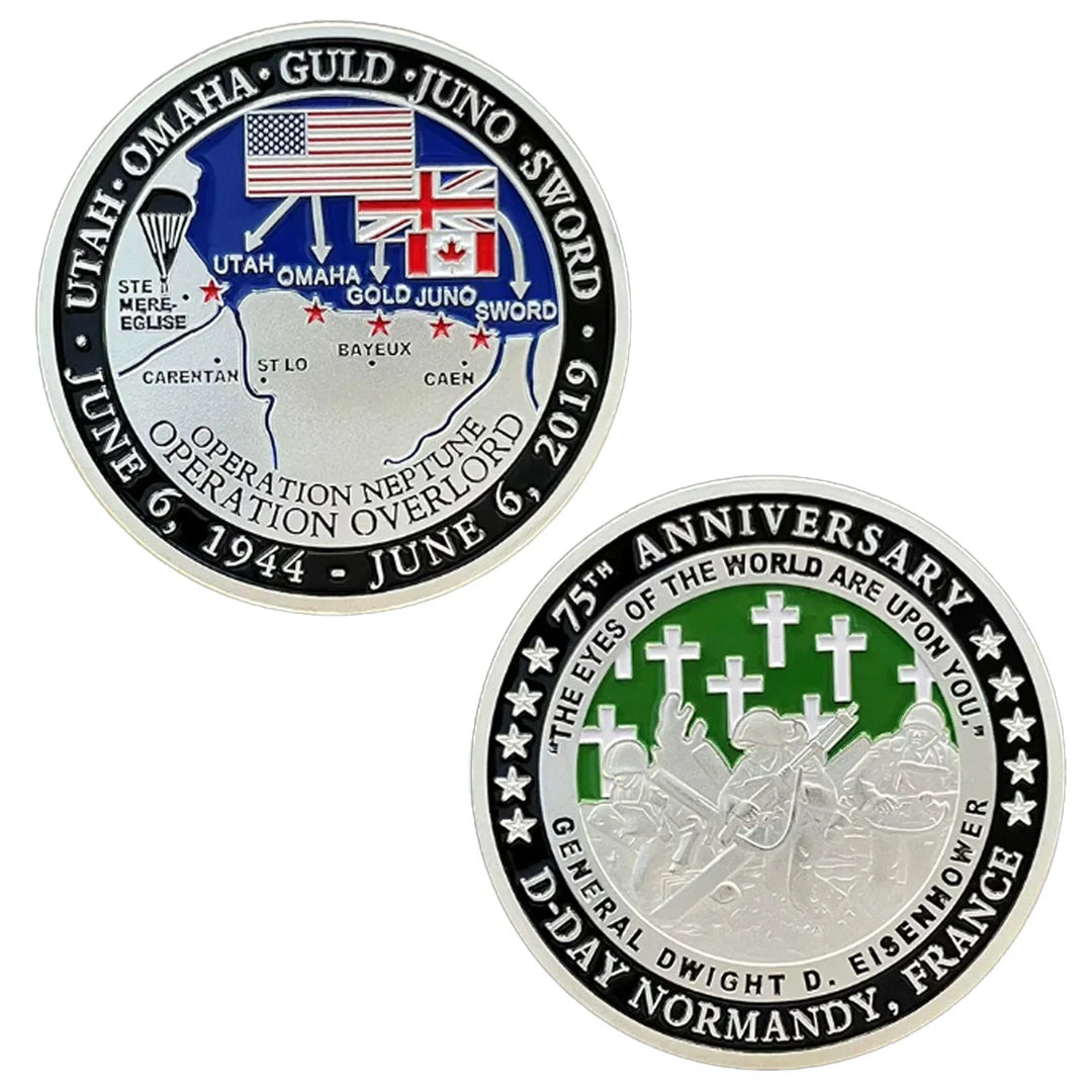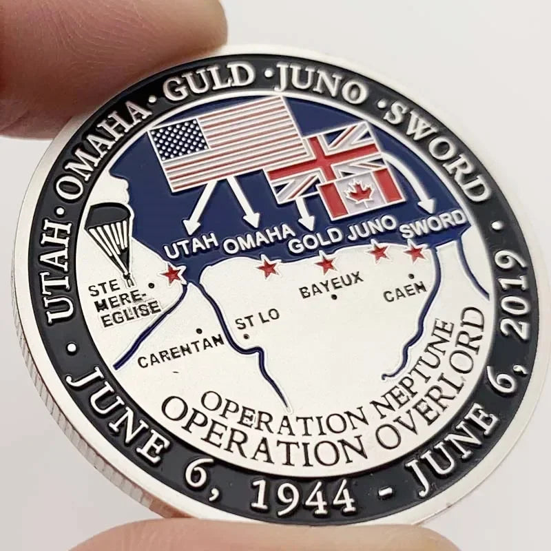 Normandy Landing 75th Anniversary Commemorative Coin Silvery Plated Metal Badge Craft Medal Collectible Coins