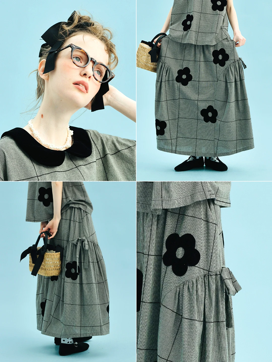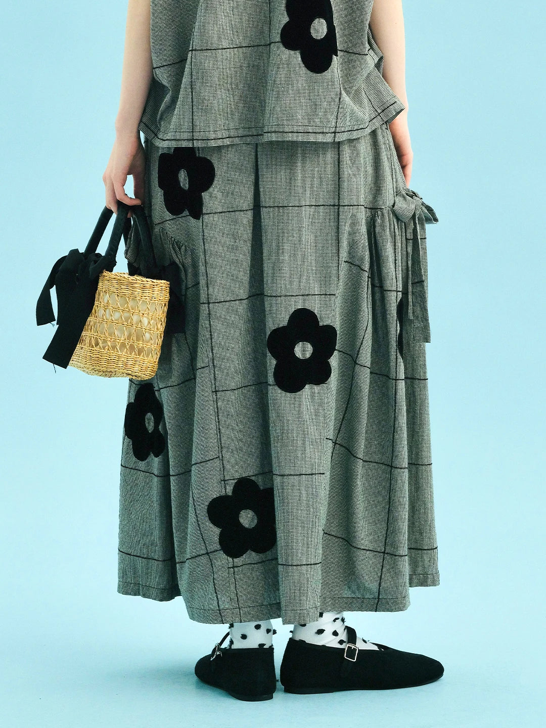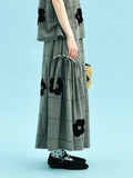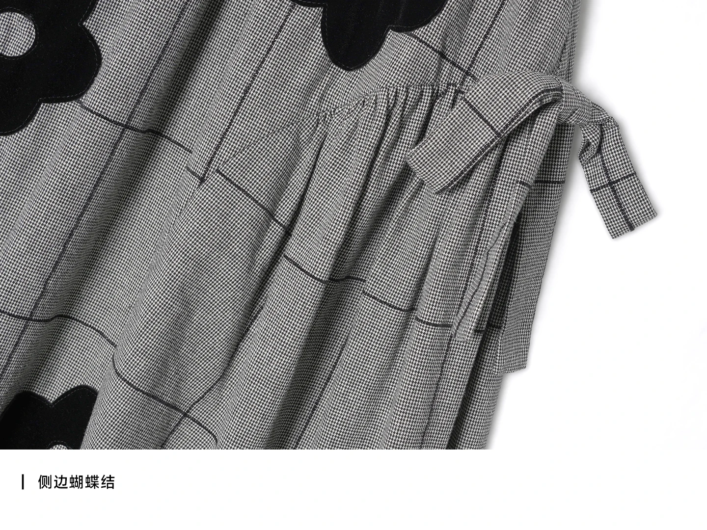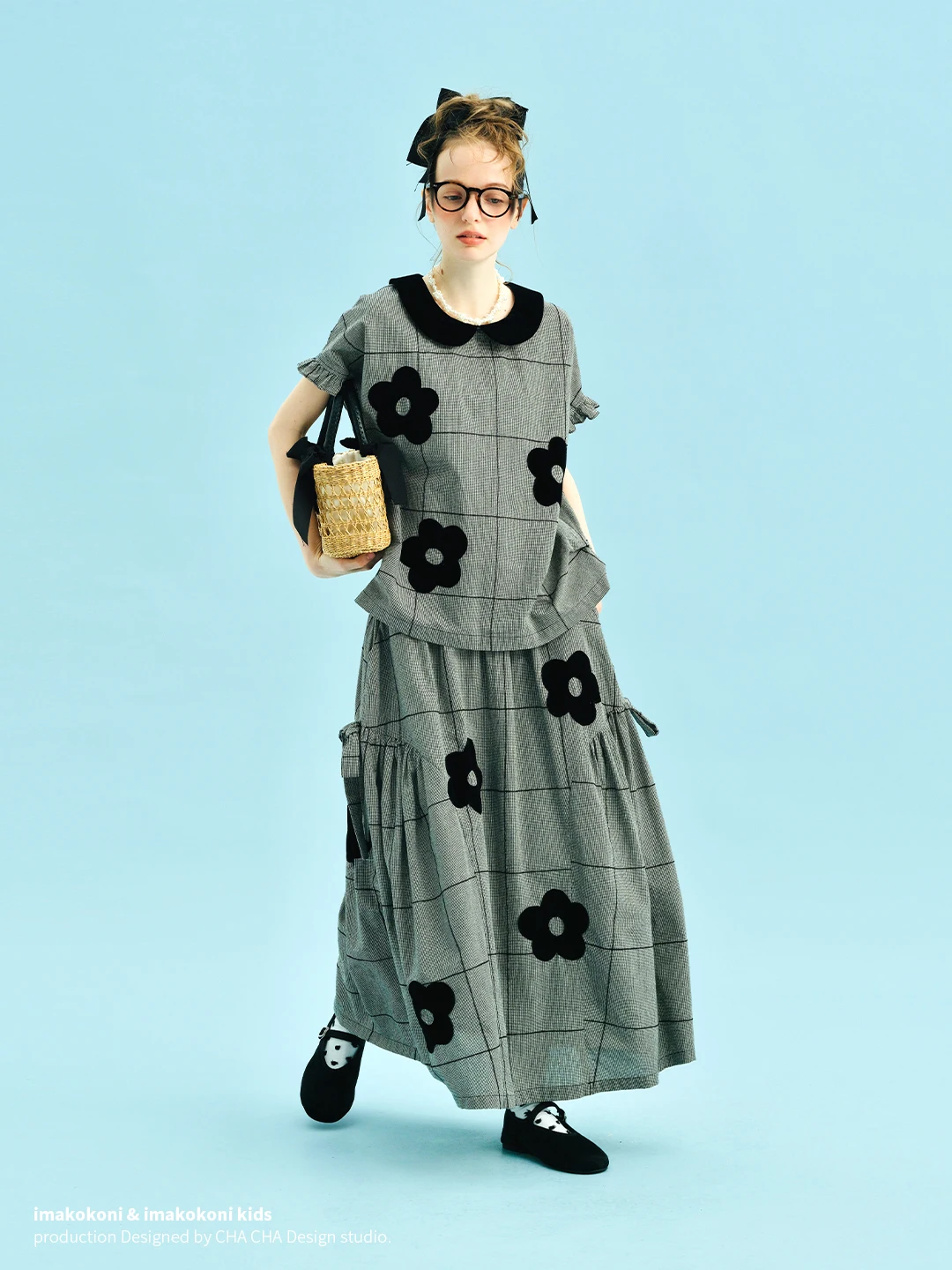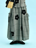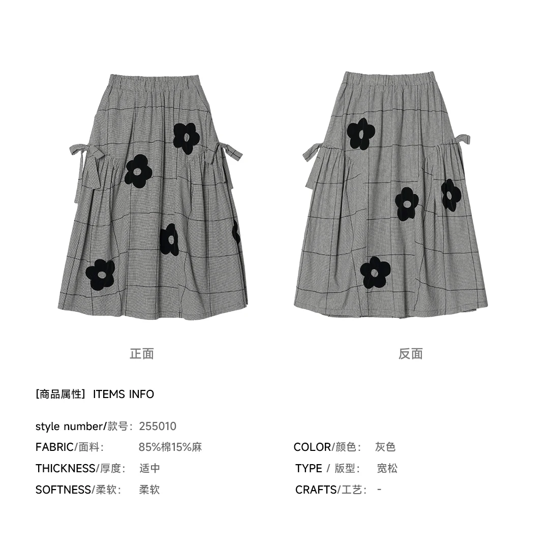 Half length skirt 2025 imakokoni summer Japanese style loose cotton linen plaid plush applique skirt 255010