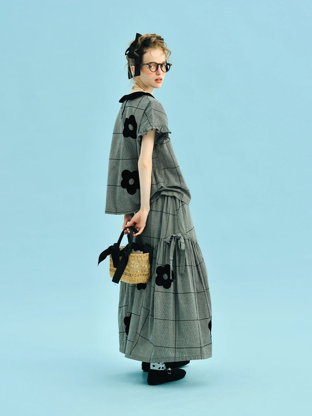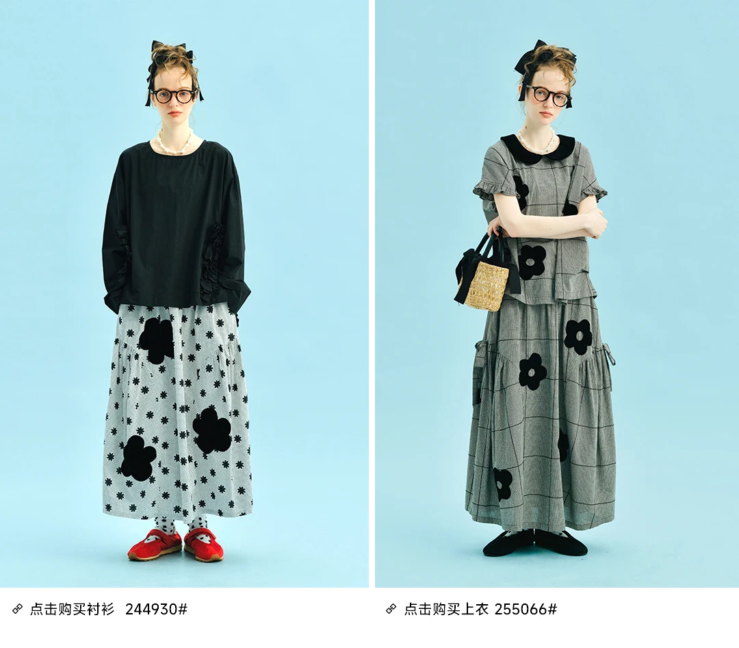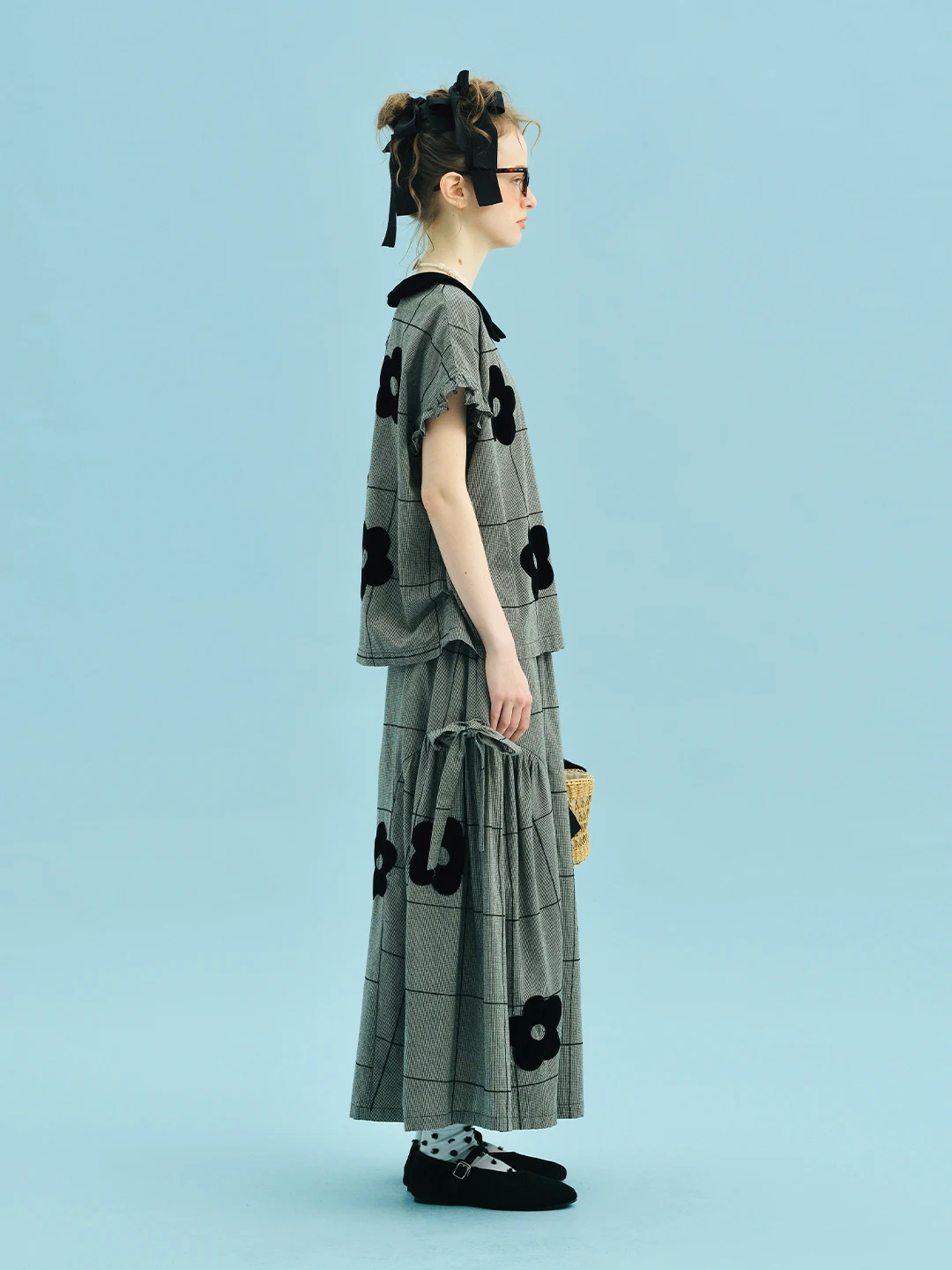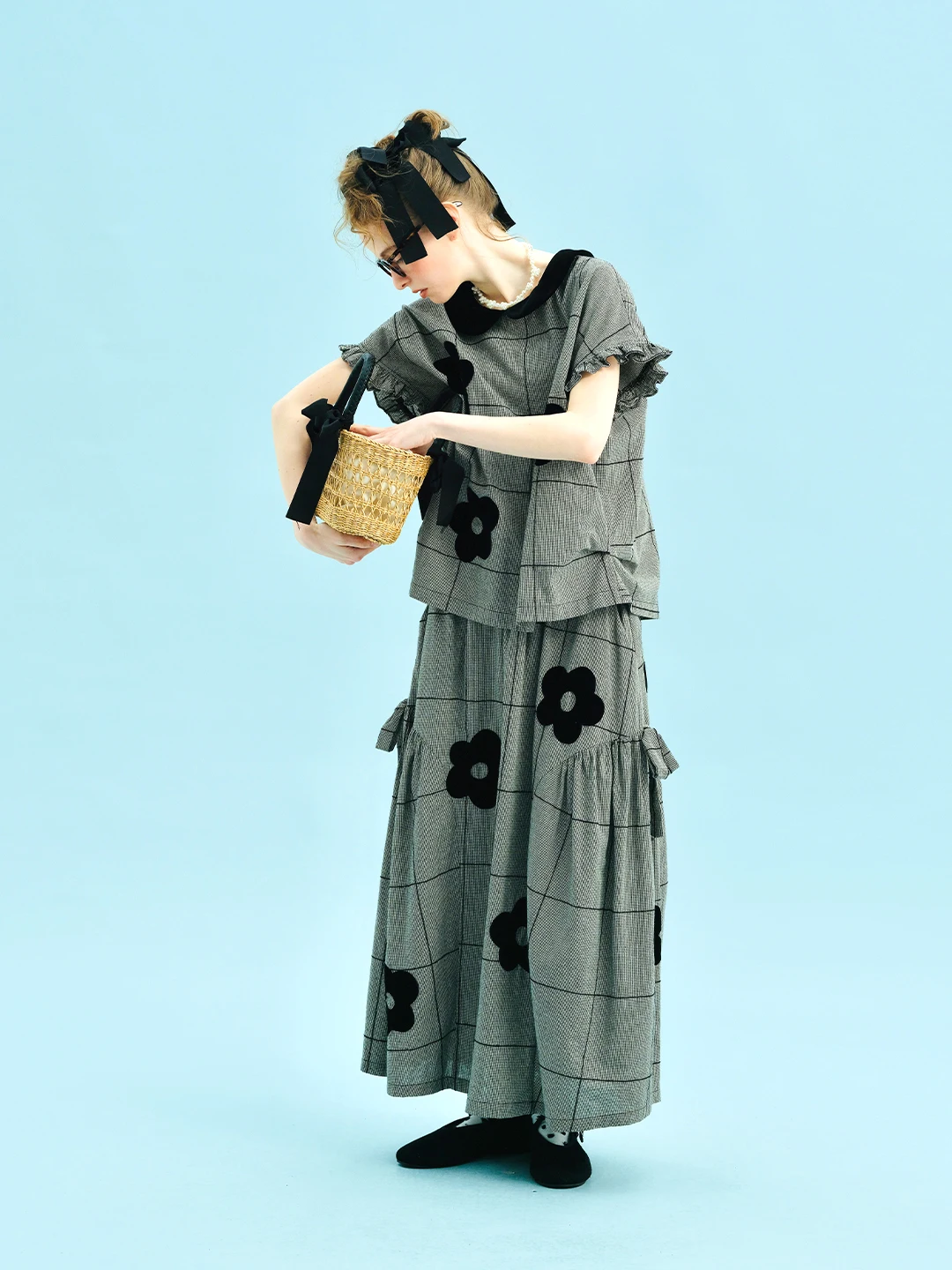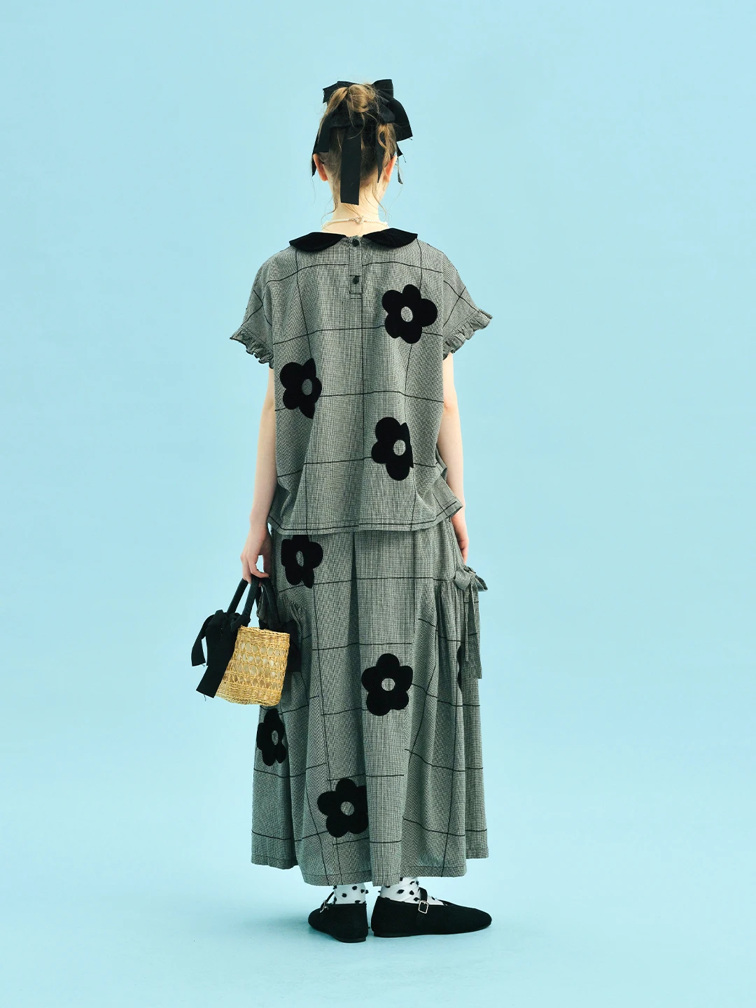 Half length skirt 2025 imakokoni summer Japanese style loose cotton linen plaid plush applique skirt 255010